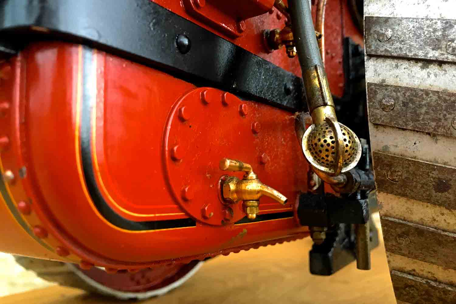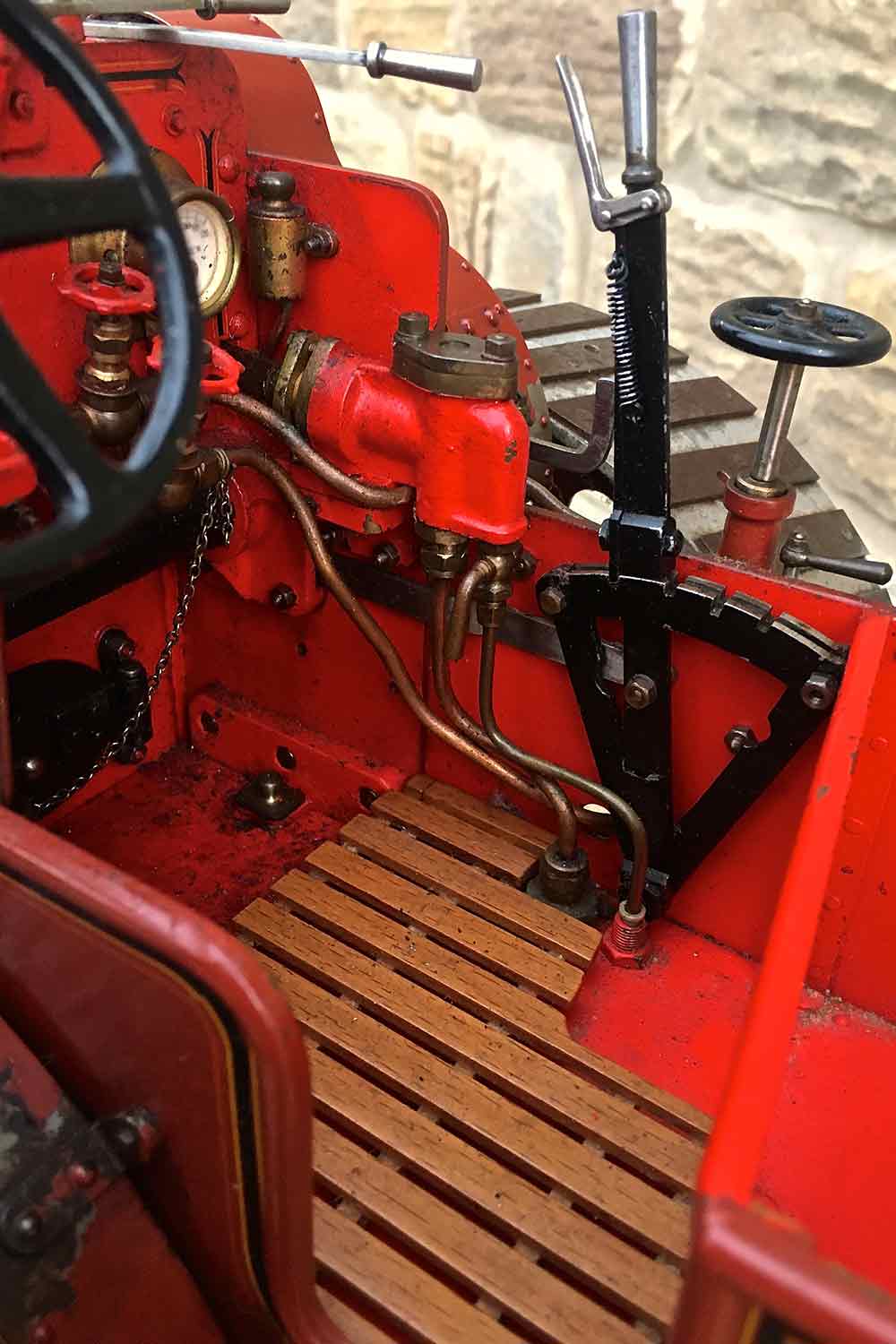 All the details are there, water lifter, injector, crank shaft pump. mechanical lubricator, and this is also a very nicely painted and lined model. Hopefully the photos ought to do the model justice so that you can see what you are buying. As with all our completed and ready to go models, she can be given a full 4 year hydraulic boiler test on the copper silver soldered boiler, and a fresh annual steam test as well should you wish to run her.