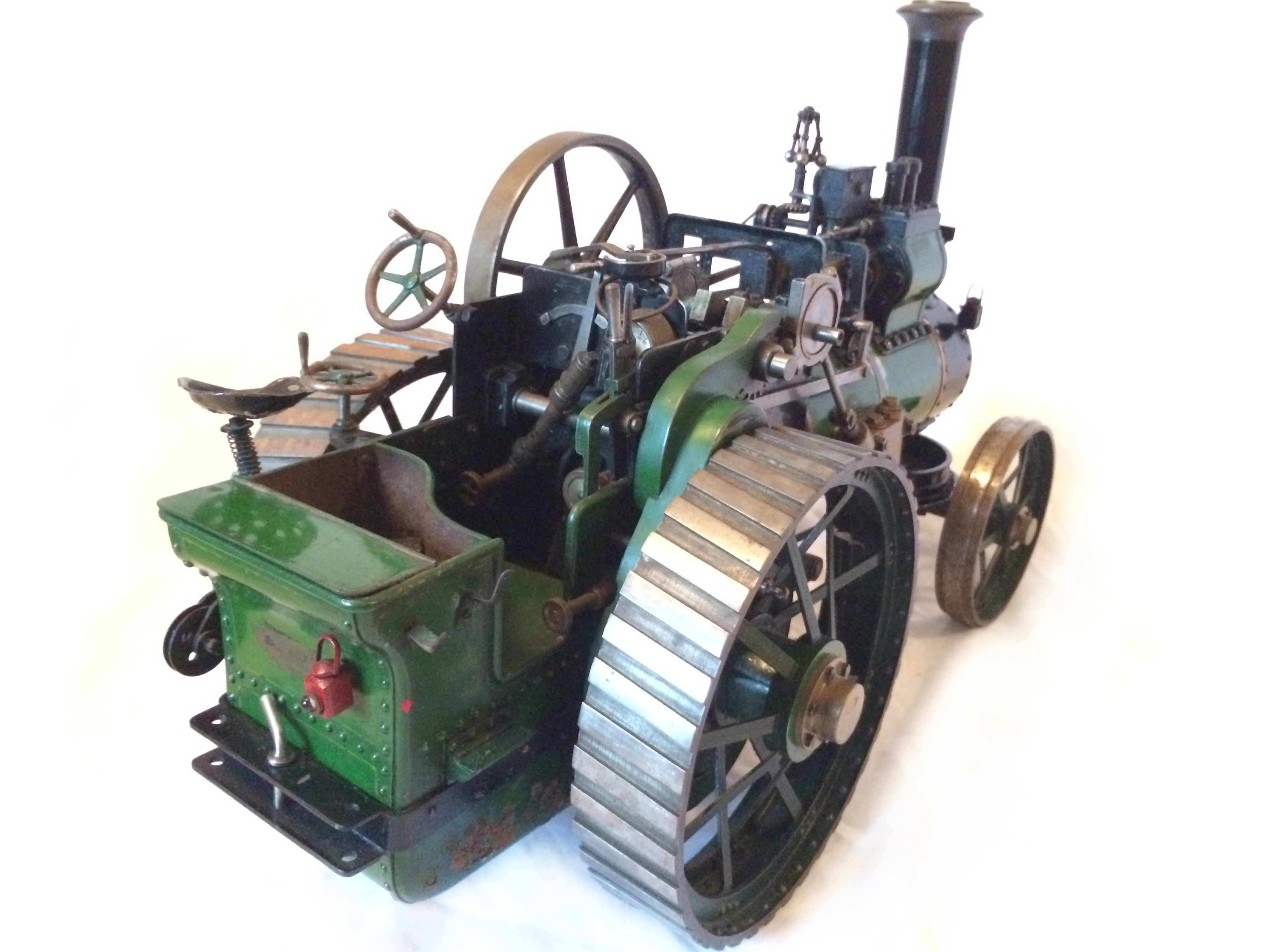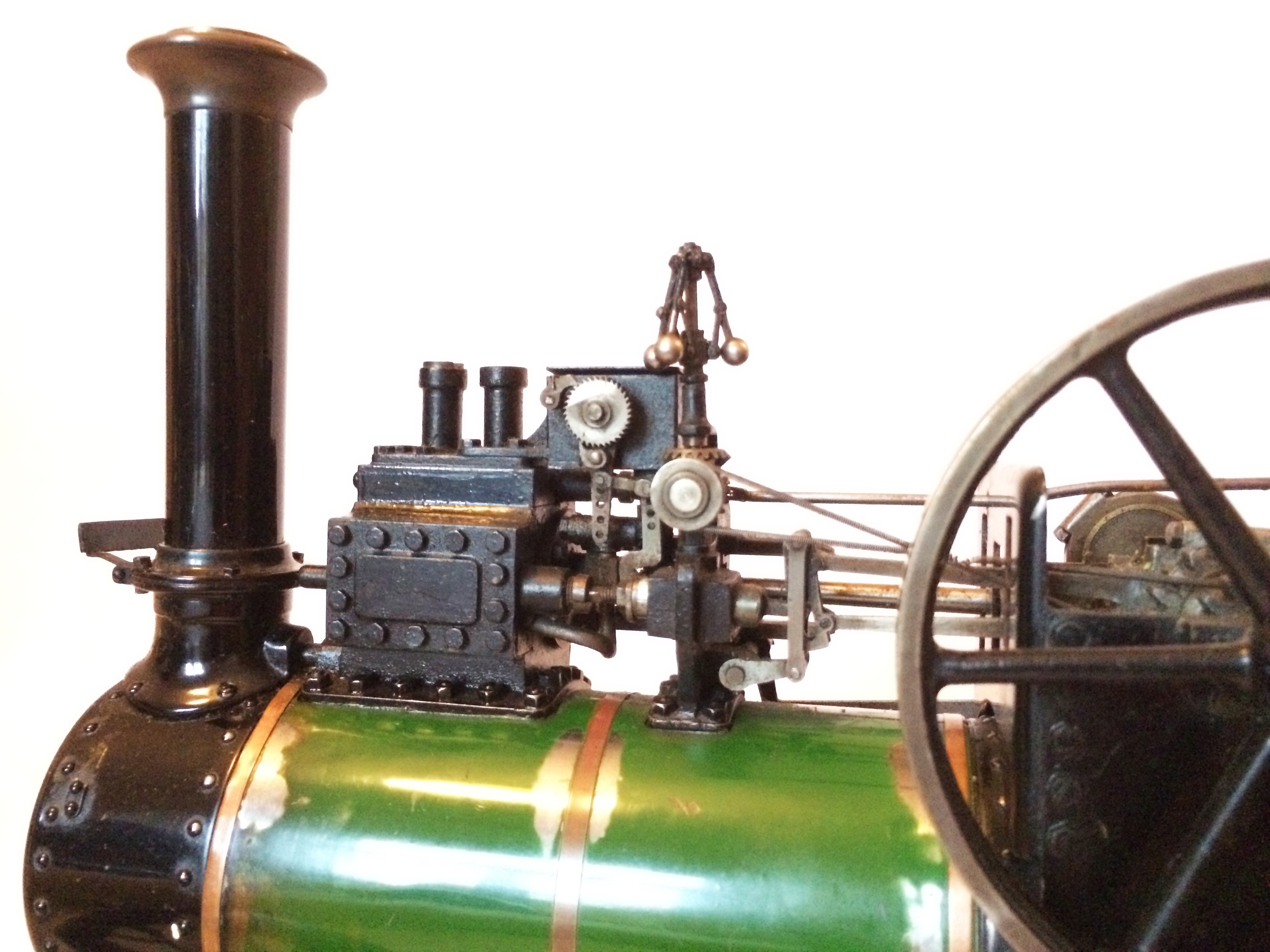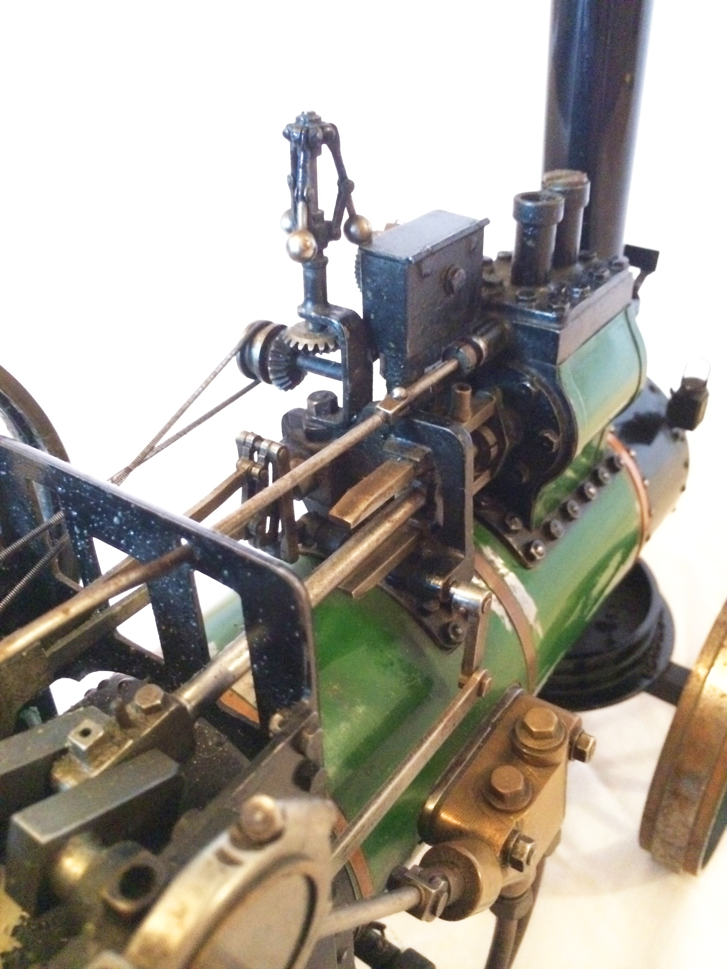 Quite a rare model this one. It's a 1" scale model of a 7nhp Davey Paxman agricultural traction engine to the 1958 design published in the Model Engineer by Earnest Steel. It's a really nicely proportioned Traction Engine, and this example, although an older build is particularly well made by a skilled model engineer.