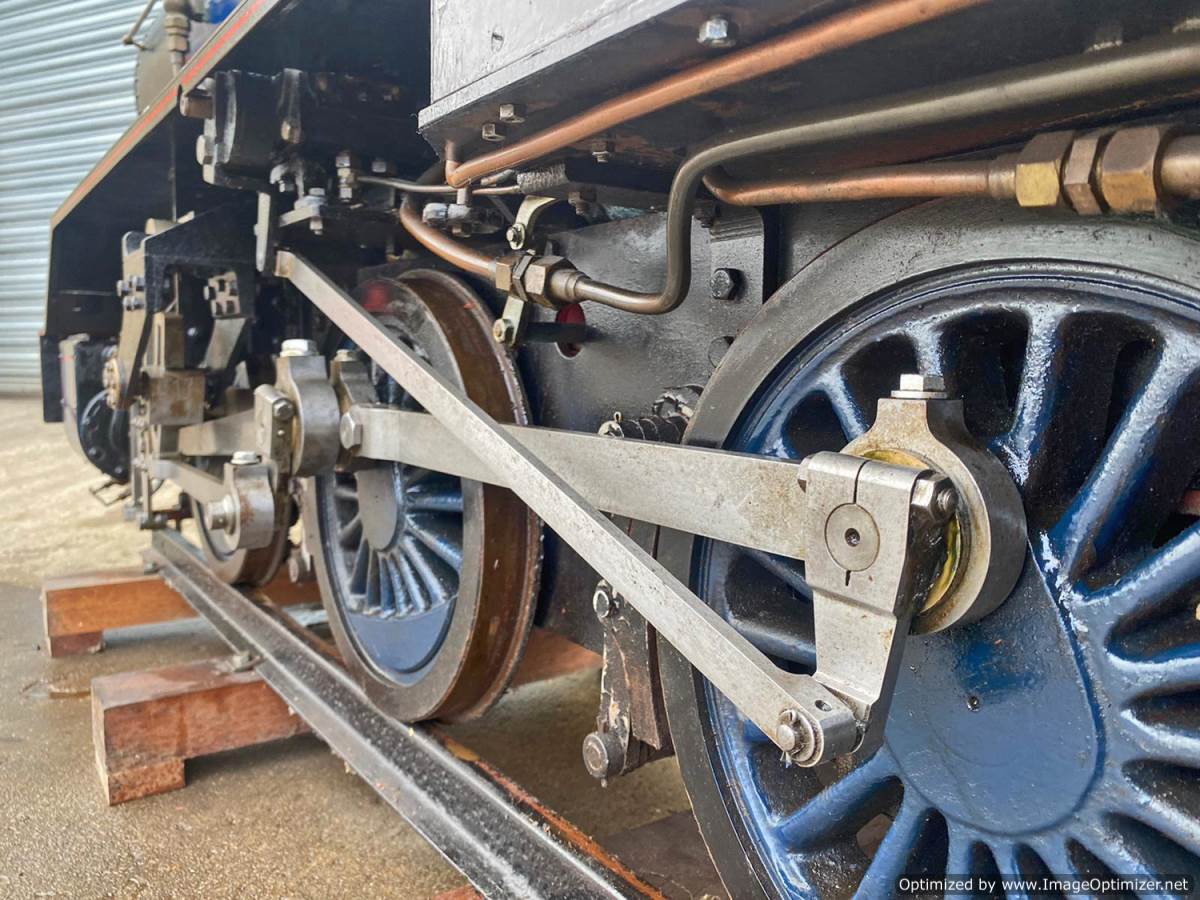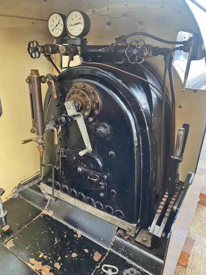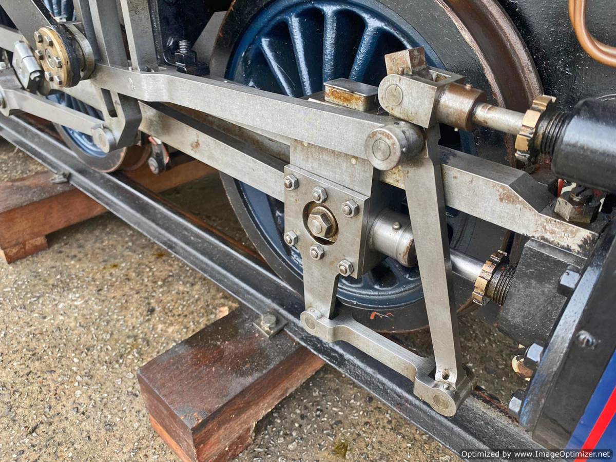 Here we have an extremely interesting beast! A 15" gauge freelance 0-6-0 built by Jack Lemmon-Burton for his estate railway near Hickstead in Sussex. She's a superbly engineered machine, the valve gear being particularly nicely machined and still in very tight condition with no appreciable wear and tear. Certainly the loco has been dry stored and on a plinth in a museum for some considerable time so it's not seen a great deal of use. It's visited the Romney Hythe and Dymchurch Railway in the past for a play, and certainly ran a little at Jack's original railway, but beyond that we think it's not had much use at all. Certainly the boiler, which is of traditional riveted steel construction with expanded tubes appears to back this up and is in very good condition with solid and consistent plate thicknesses showing under our initial ultrasonic tests.