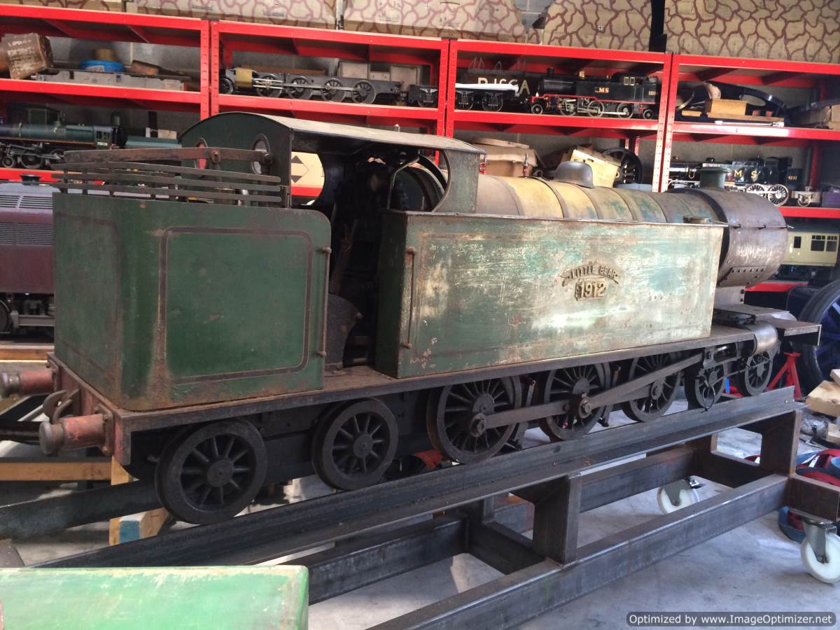 Well this is a very interesting, historic and above all,.... big loco! 'Little Bear' came to us as a genuine 'barn find' model, with nobody having any idea of her history or previous existence. All the usual authorities on historic models drew a blank, and we resolved to searching through historic magazines to see if any light could be shed. The 1912 plates had a ring of authenticity to them, as the loco certainly has all the hallmarks of a model from that period. So whilst searching through contemporary Model Engineers, a friend emailed us the jackpot article. The model is indeed a 1912 build by a Mr G Essex, and a very thorough article turned up several very interesting details, not least of which was a full description of the model's paint scheme which we think proves that she is still in her original, if extremely tired paint. This article, together with a few photos from 1912 have given us a superb reference point from which to ensure the historical accuracy of our restoration.