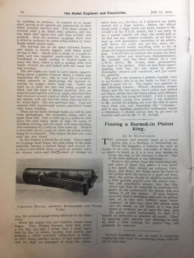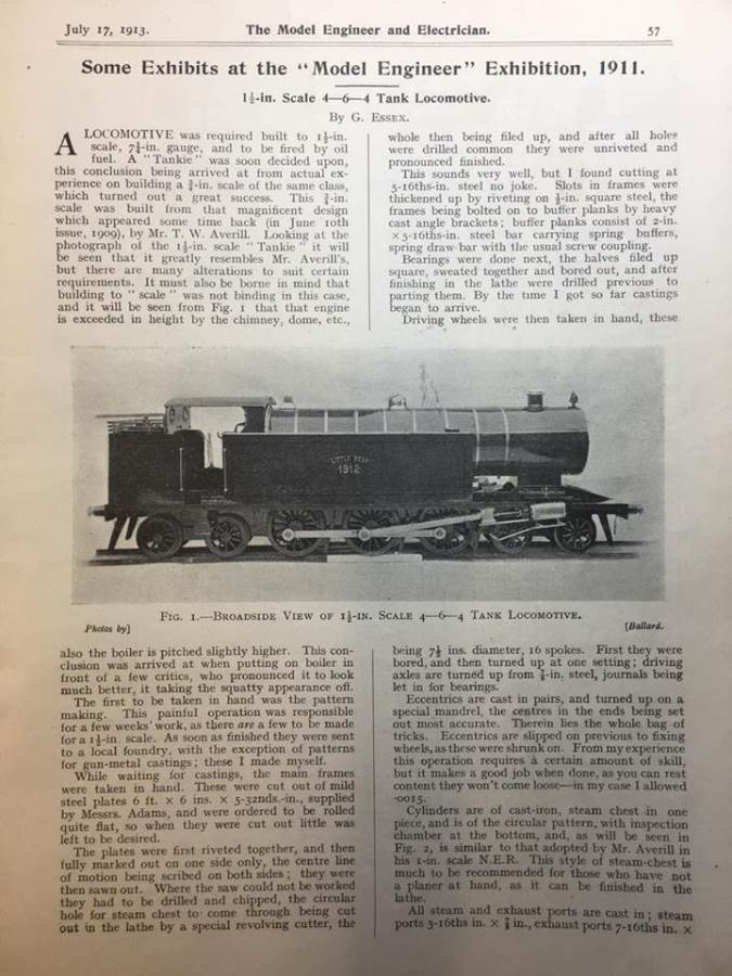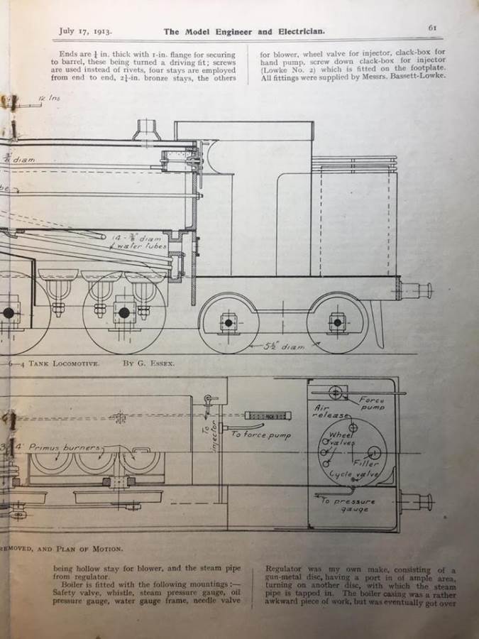 Little Bear, writes Mr Essex, was inspired by his previously building a 3/4" scale loco to the 1909 design of T W Averill, and then effectively scaling up the design with various alterations along the way. The full 1913 Model Engineer article is reproduced below for you to read through if you fancy.