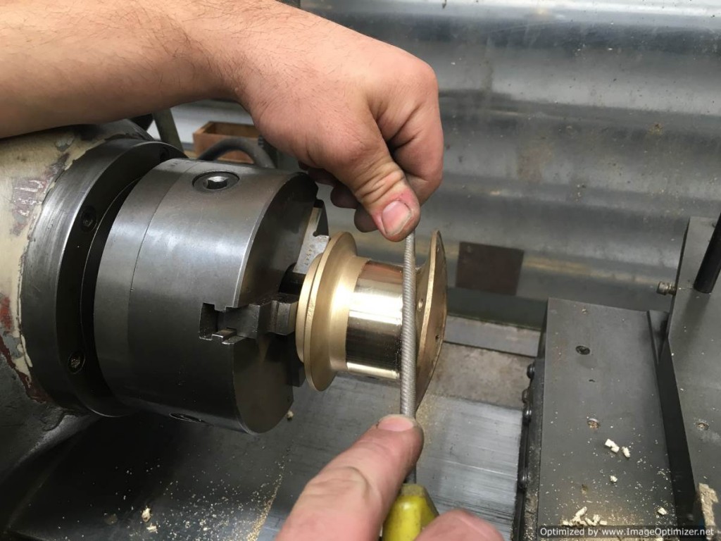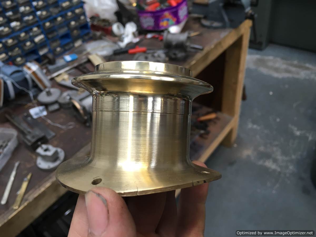 A few little jobs were ongoing at this stage too. The chimney was a little crudely finished, and we felt that a nicer shape was achievable without straying too much from the original locomotive. A little skim up on the lathe and a subtly defined cap shape defined, and we think the general Basset Lowke 'Little Giant' feel to it now will work particularly well. The cap will be left Brass and polished up.