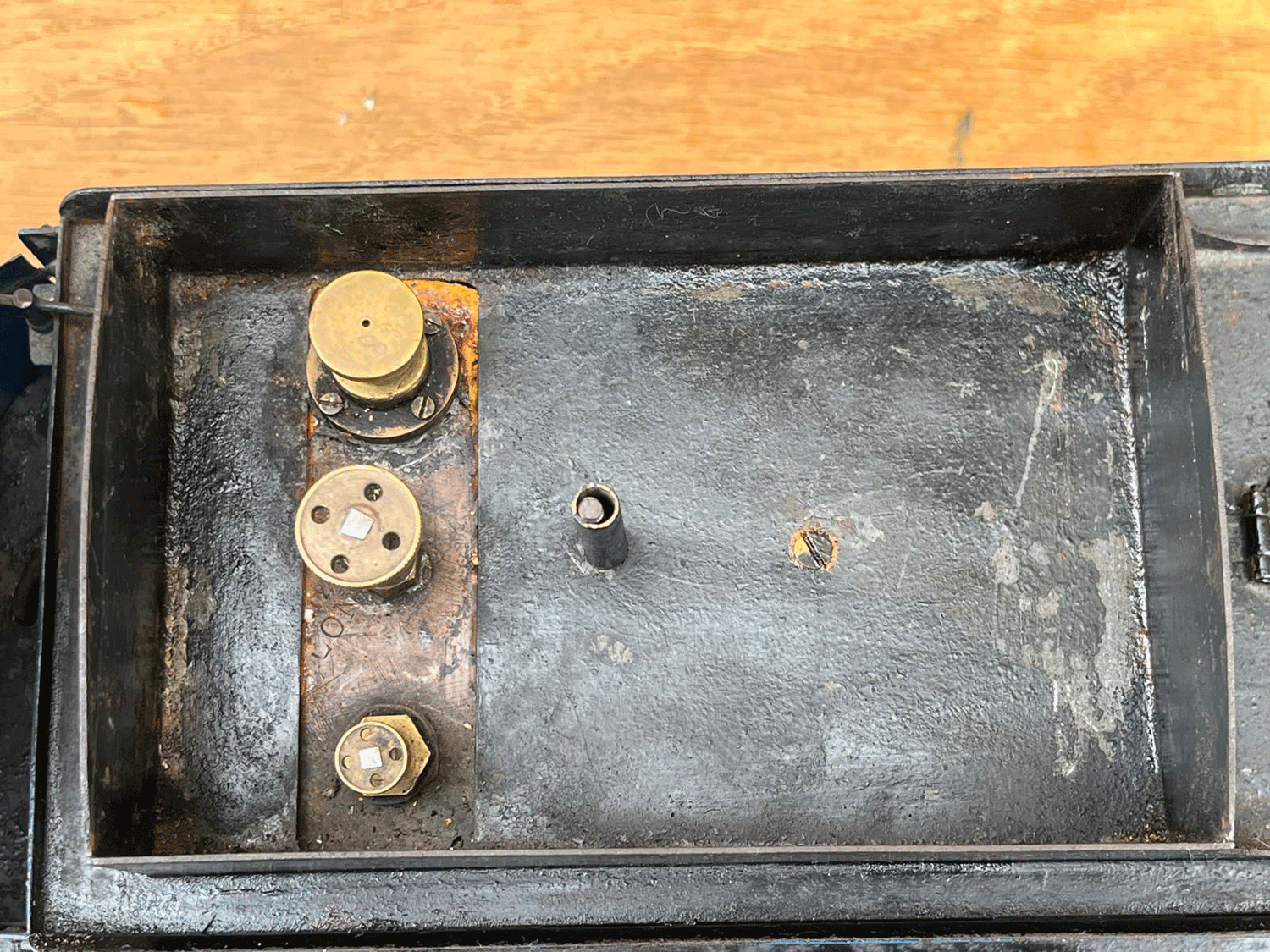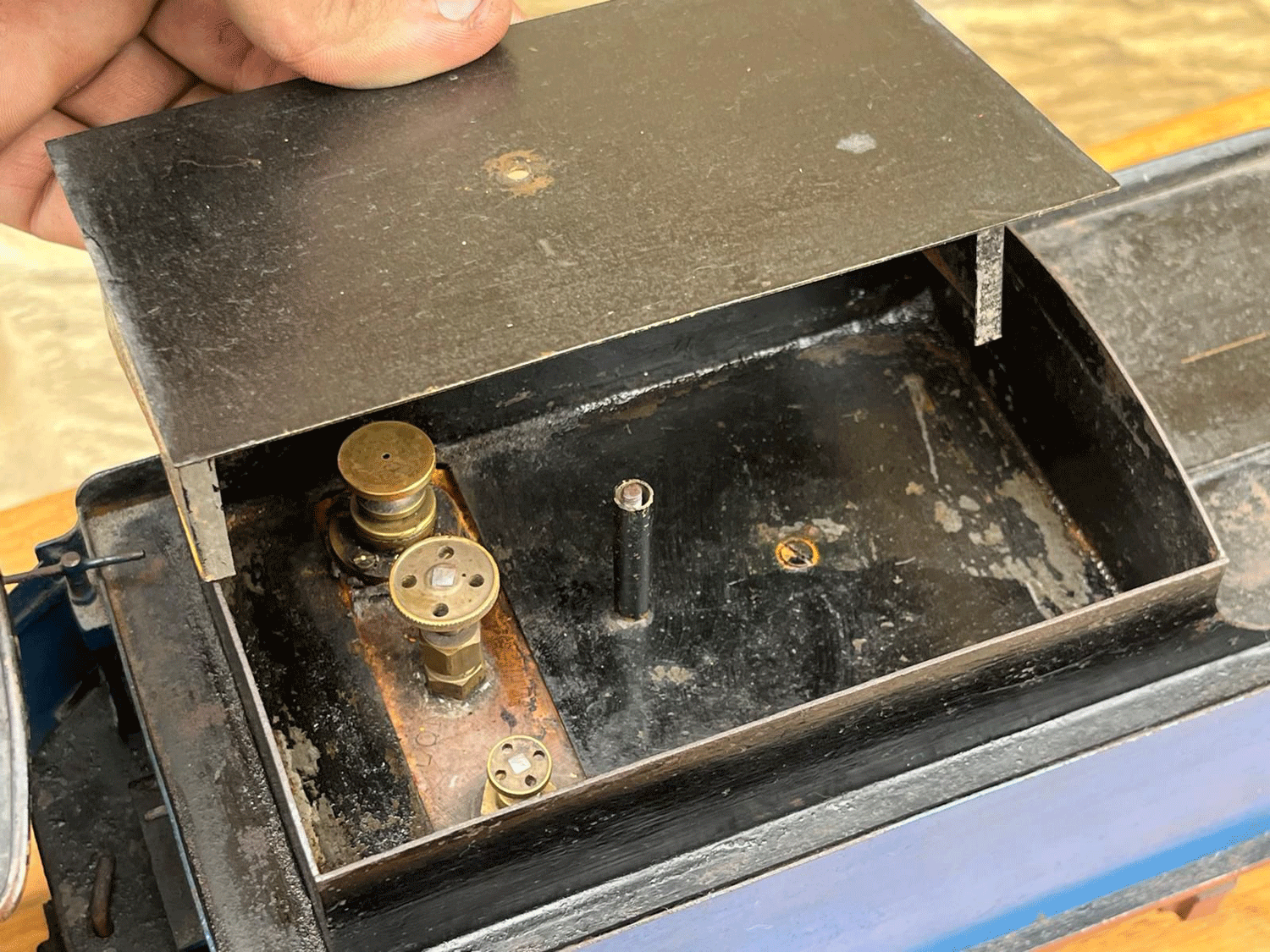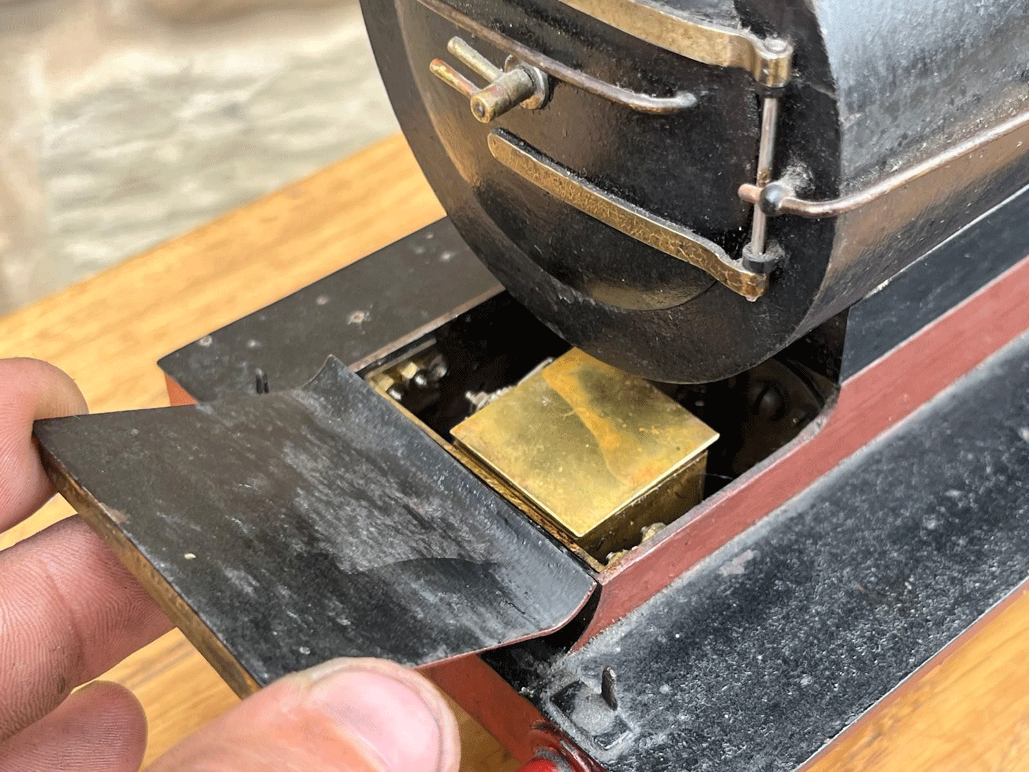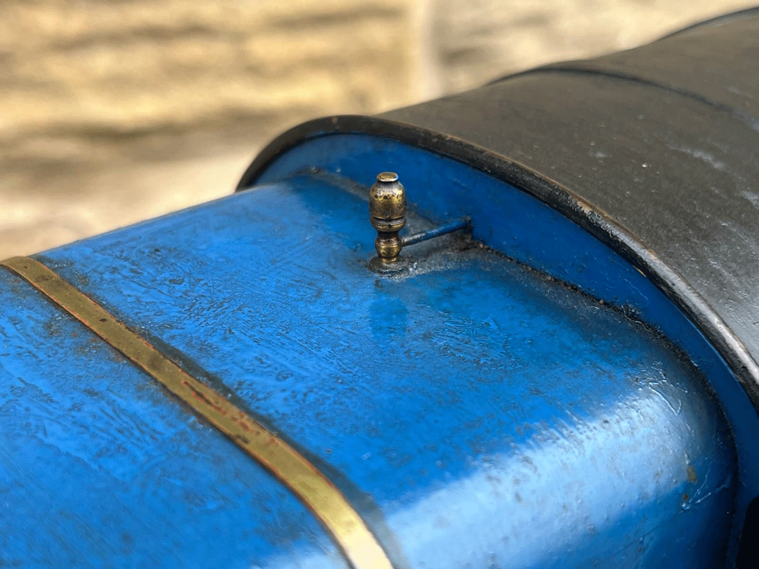 This is a well documented and historic spirit fired model and she is recorded as being the first 2.5" gauge locomotive to pull an adult passenger in 1922 (although our research suggests this to be apocryphal). Its an unusual loco, the tender has two fixed rear wheels, and is then articulated through a bogie that forms the leading tender wheelset and the rear wheel of the locomotive. The works plate reads ‘Radford Works 1922’.