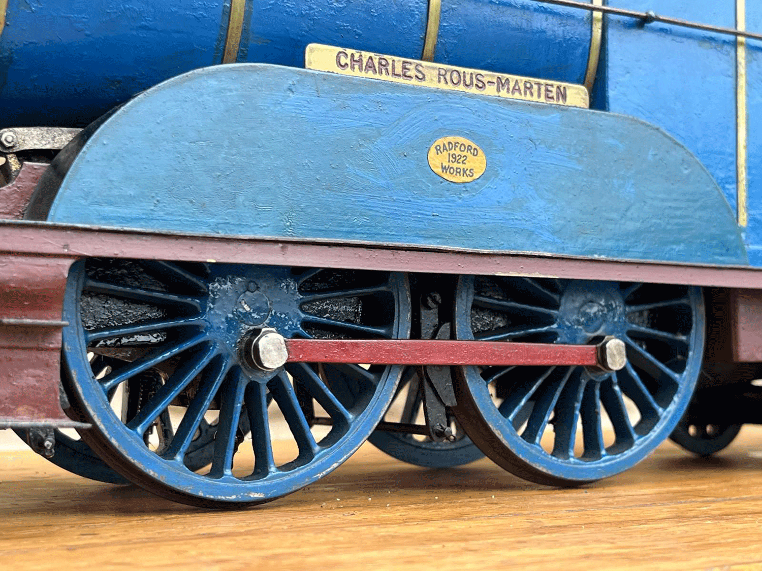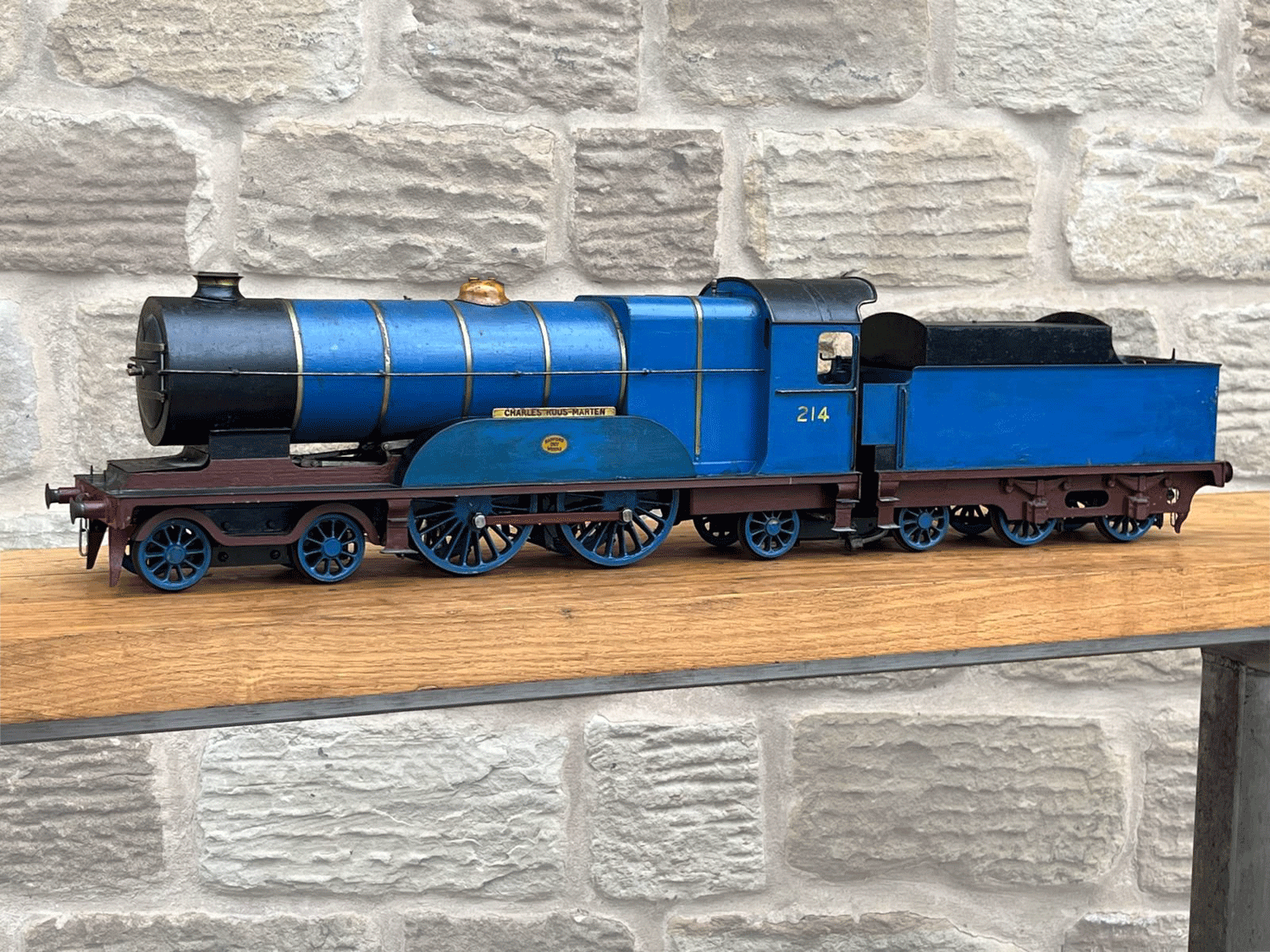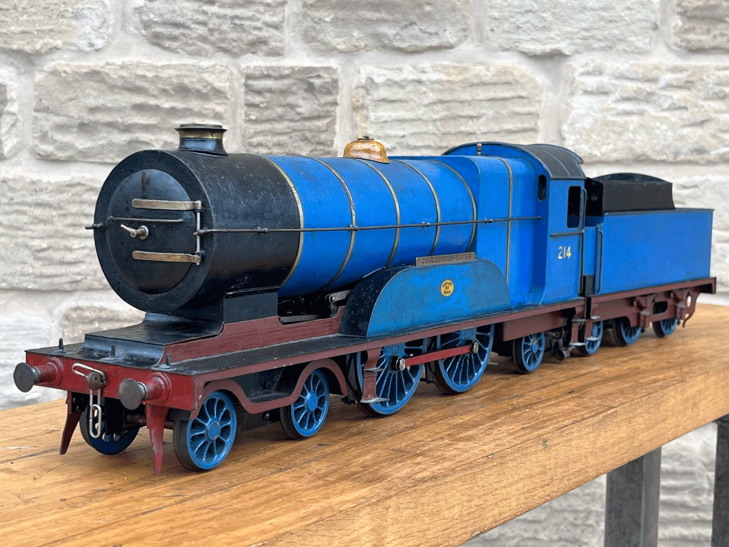 An historic scratch built gauge 3 (2.5" gauge) live steam Atlantic type 4-4-2 tender locomotive ‘Charles Rous-Marten’, 214. Designed and built by William Briggs, with valve gear designed and built by LBSC (Lillian ‘Curly’ Lawrence). William Briggs was an engineer apprenticed at Brighton Works (L,B&SCR), before moving to the Daimler works in Radford, Coventry (which is where the reference to Radford Works originates from on the works plate) and then to the Napier factory in Manchester.