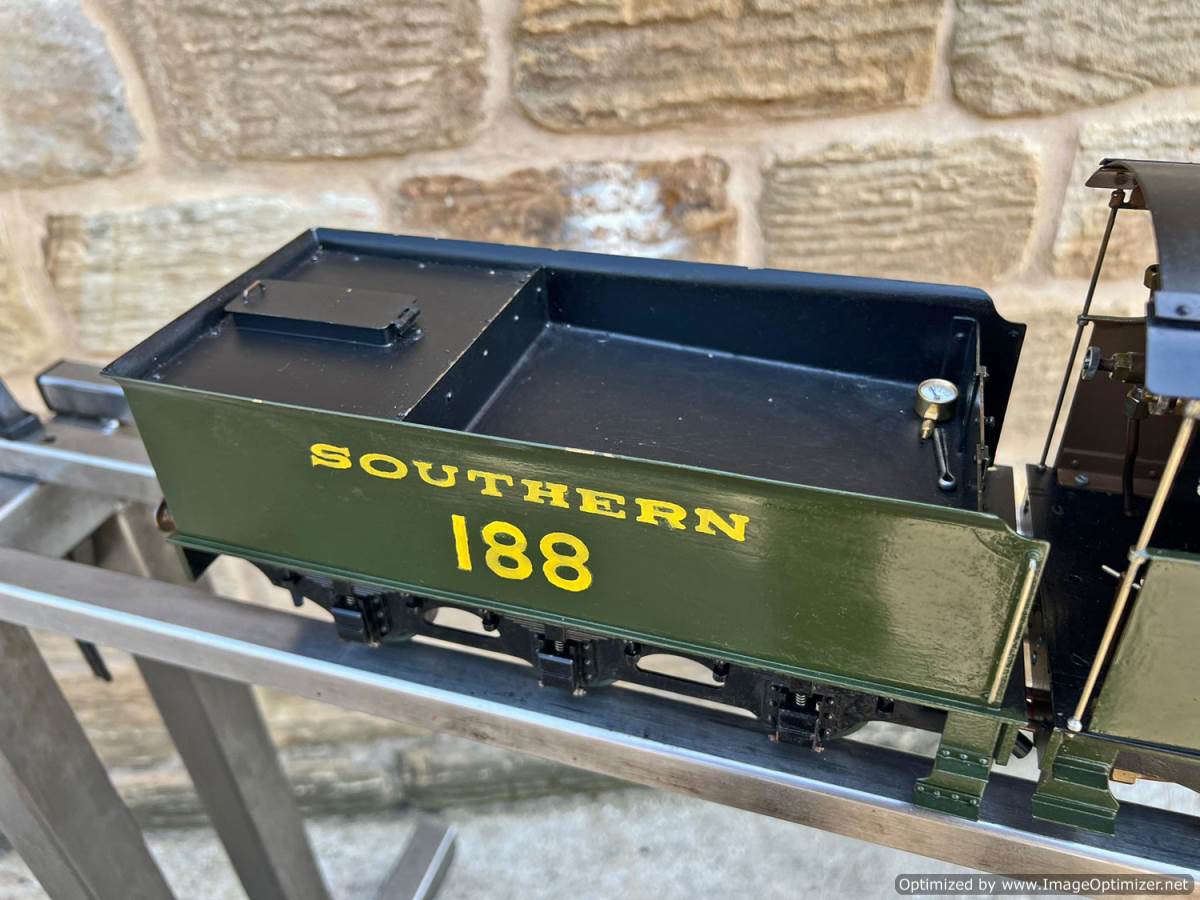 Here we have a 2 1/2" gauge Brighton H2 Atlantic to the iconic 'Ayesha' design by LBSC. This is a brand new model and built to a nice, crisp standard. There's an axle pump with footplate mounted bypass valve as well as a hand pump in the tender. Lubrication is mechanical and tucked away under the front running boards. The boiler is silver soldered copper and comes with a full twice working pressure hydraulic as well as a fresh steam test. More details to follow as time allows, but for now have a good look at the photos.