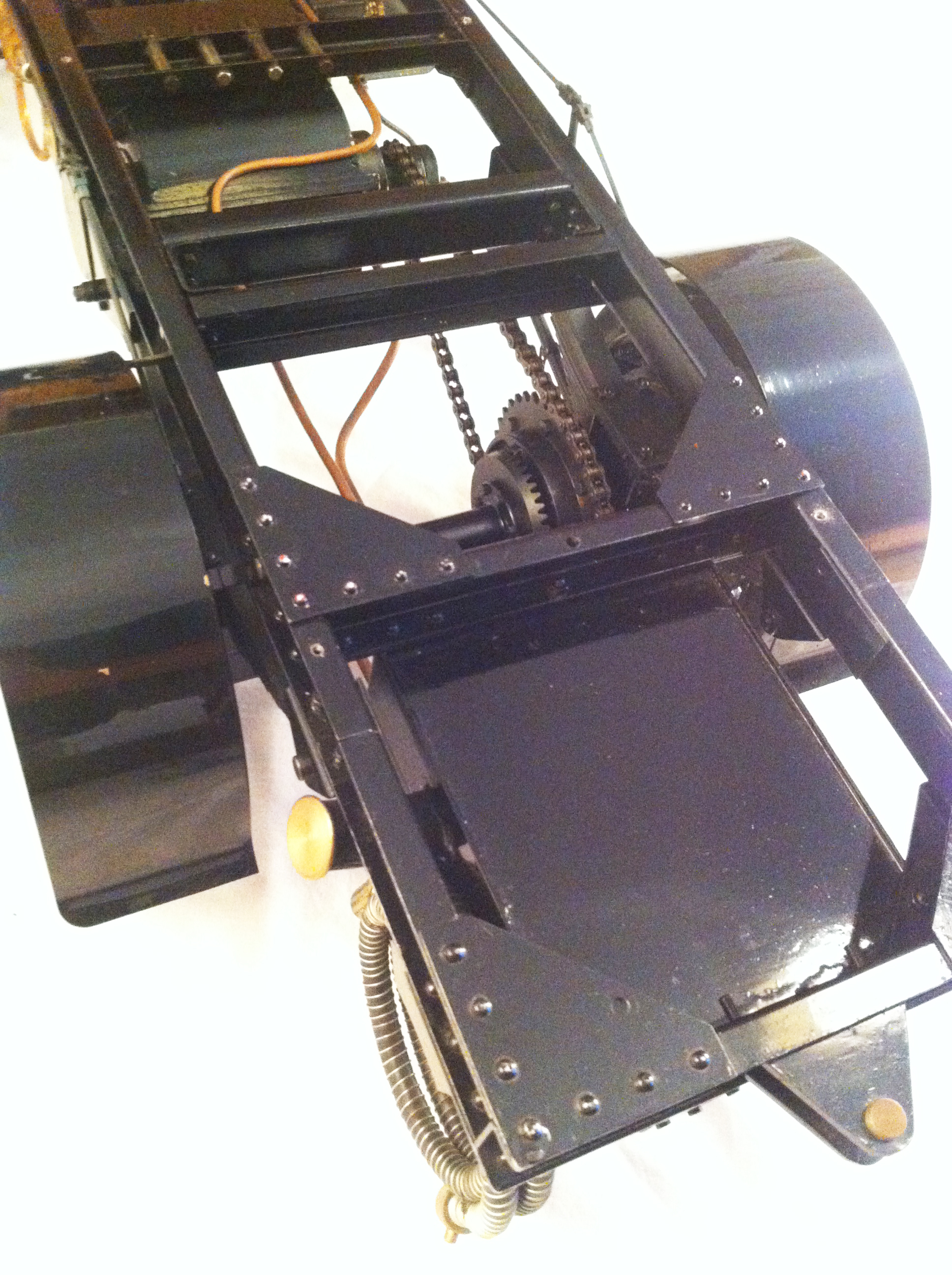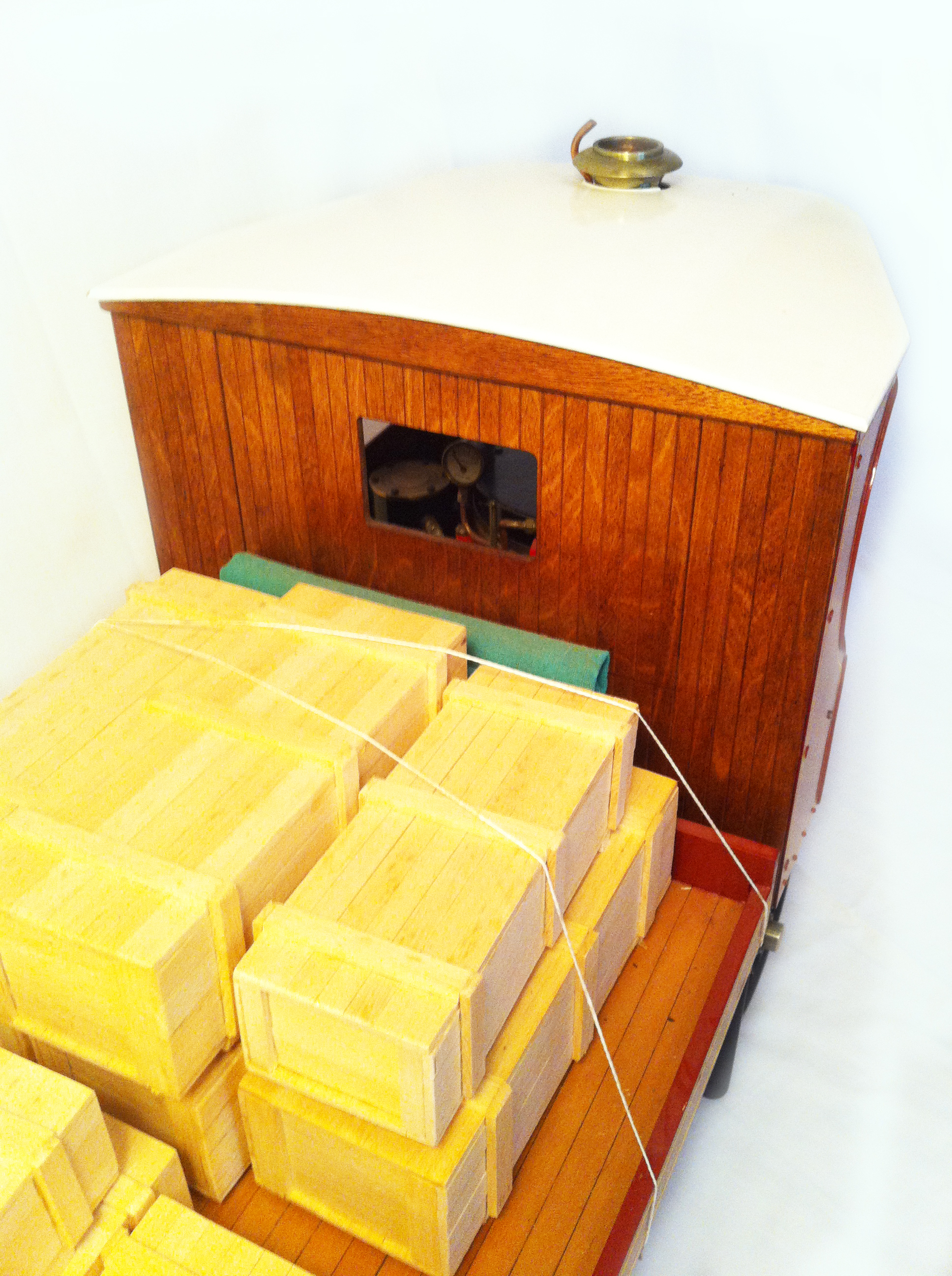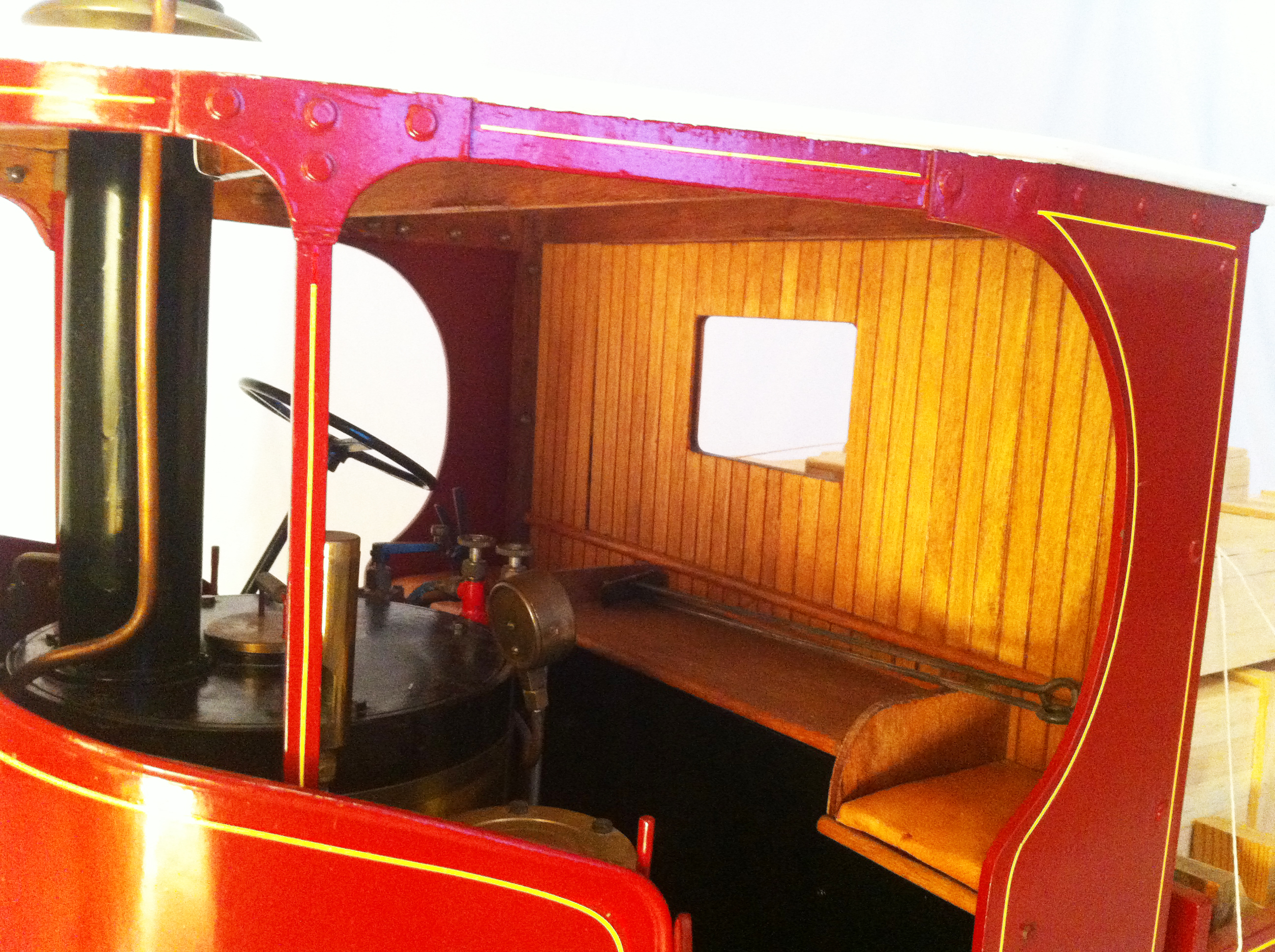 Ned Prentice, a Westland Helicopters engineer, constructed the majority of this lovely model between 1978 & 2007 but sadly died before its ultimate completion.  Constructed from the Robin Dyer drawings, but altered as you can see to represent the flat bed lorry prototype rather than the vastly more common articulated set, and finished by experienced model engineer Ron Page and Master Furniture Maker Bill Lush.