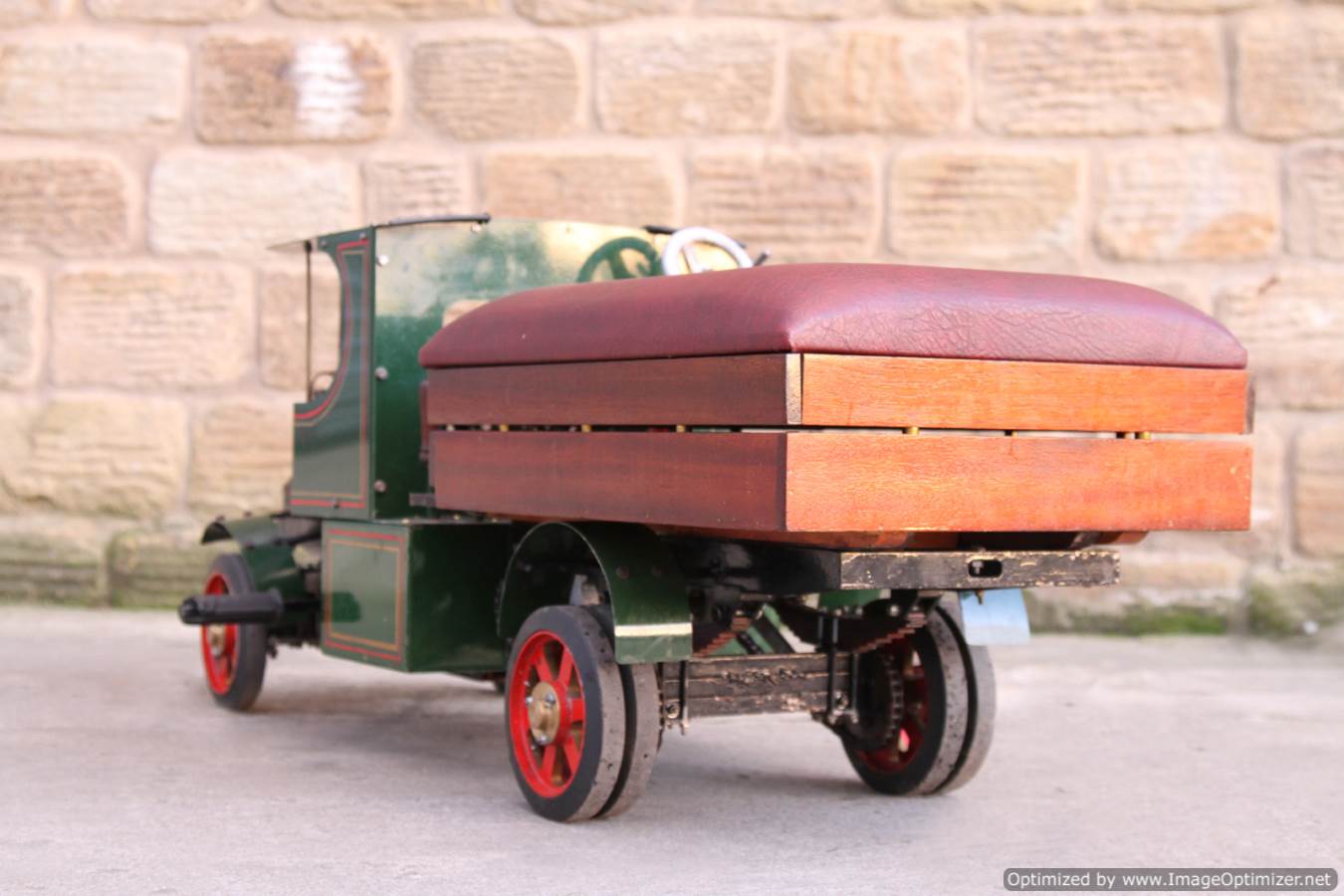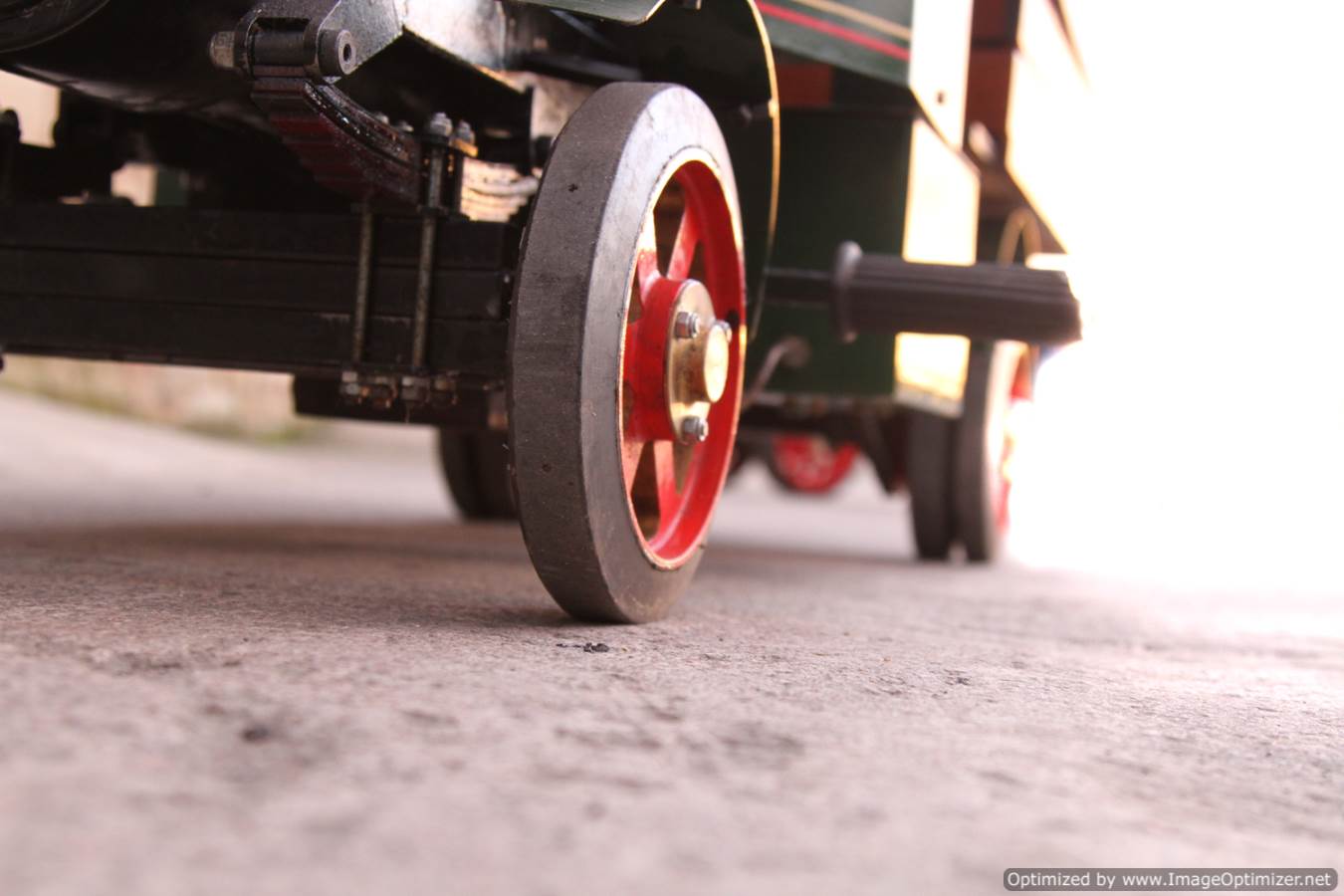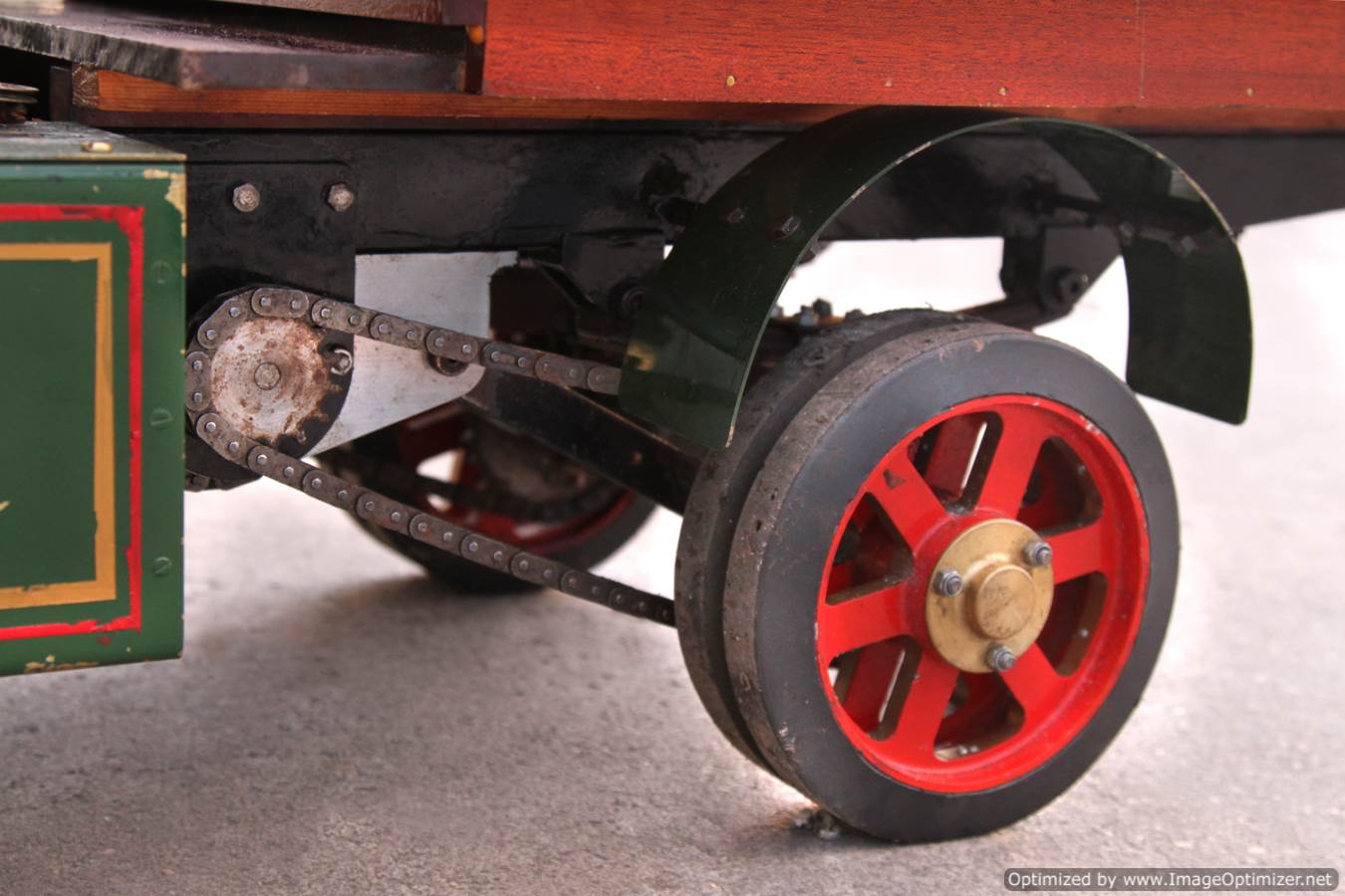 Here we have a 2" scale Foden overtype steam lorry. Assembled from a Modelworks kit, this has been rallied lightly until it recently came into us in part exchange for the 3" Clayton that we had. It's never going to win any 'style awards', but it all works and has a good boiler on it. Although built from a modelworks kit, it's been tweaked here n there to make it work, and the basic kit for the road vehicles tended to be a much more resolved model than the kits for the railway locos. In fact the 4" Modelworks Burrell traction engine that we had in was actually really pretty good!
