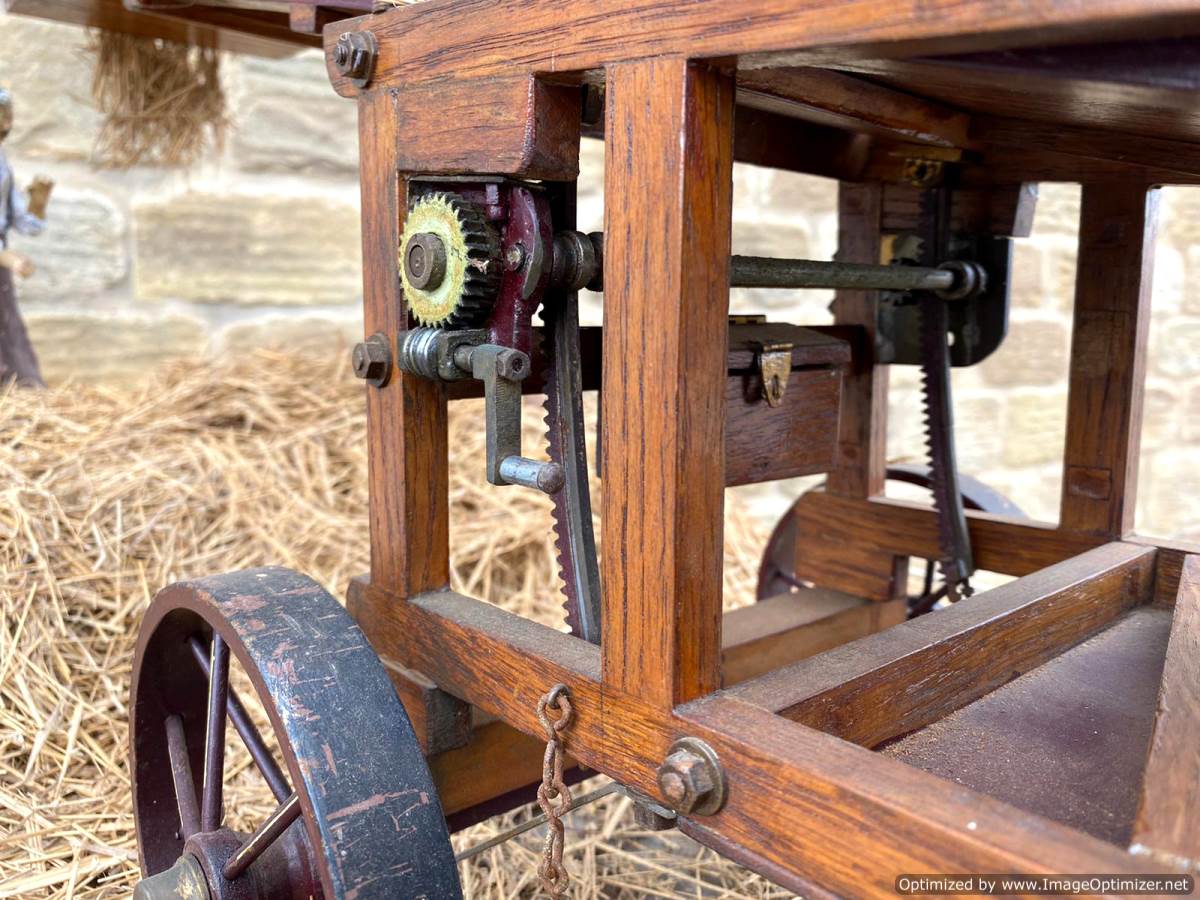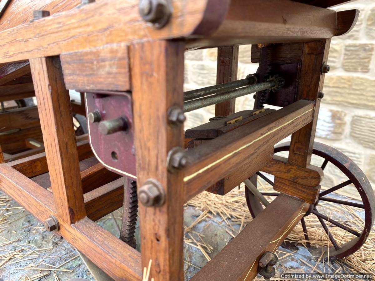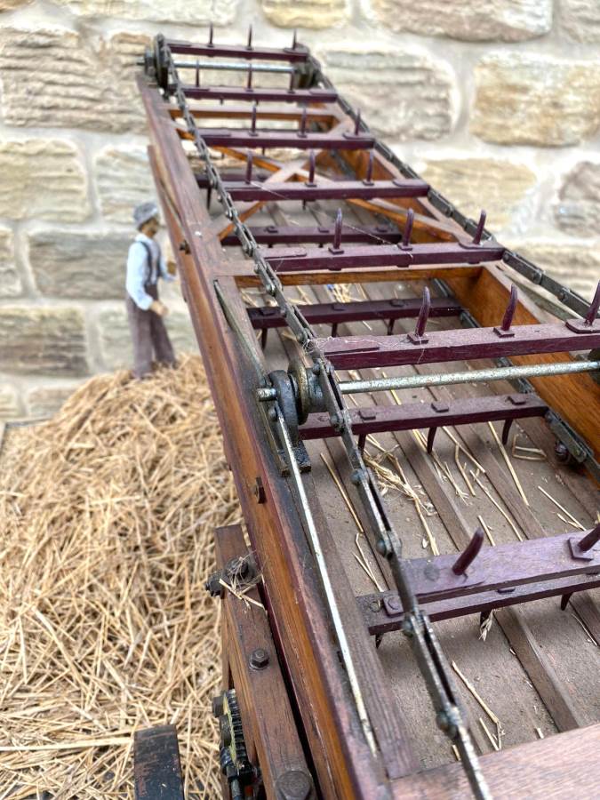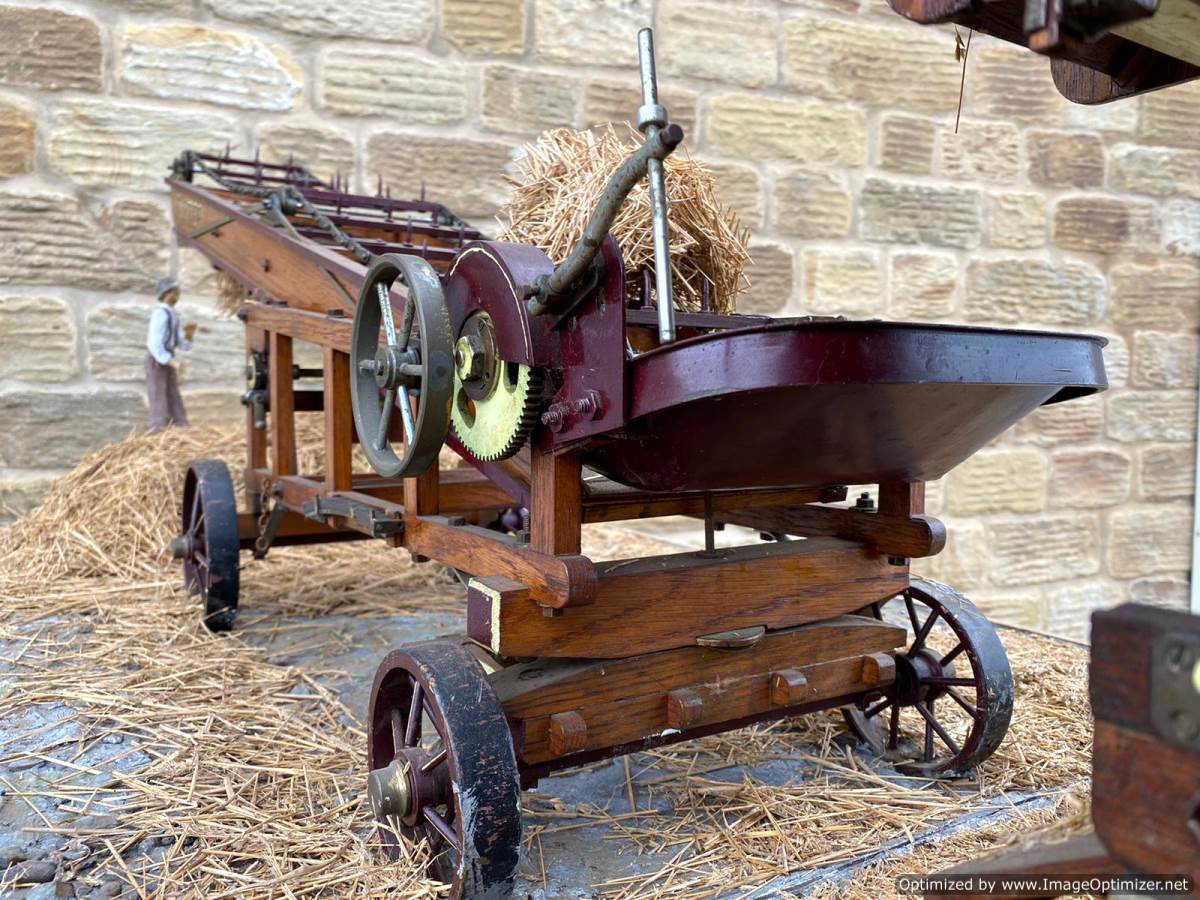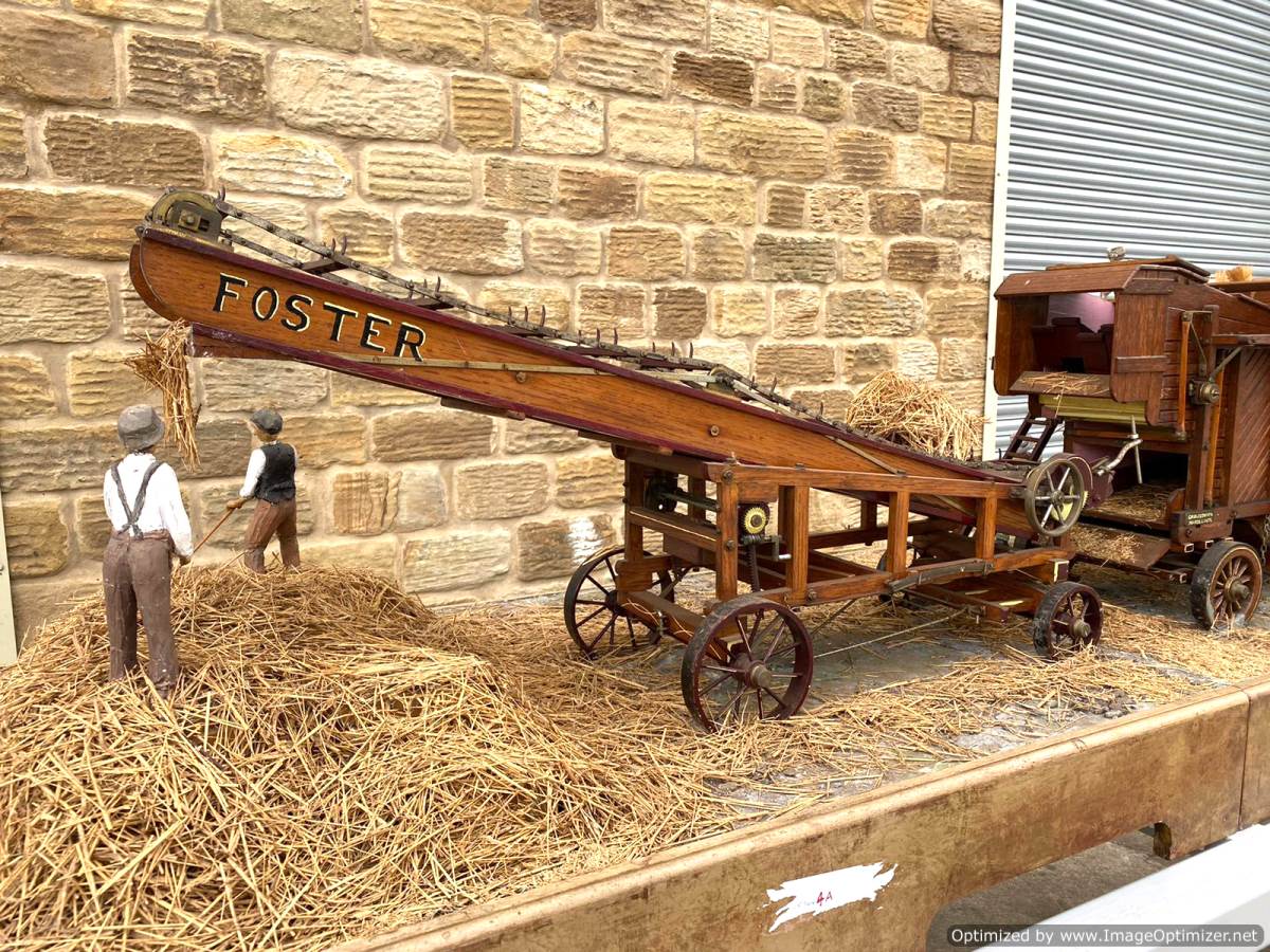 Here we have a 2" Foster hay lifter. I'm afraid this is where our knowledge runs out. It's certainly a lovely model and built with the same skill and attention to detail as the thresher. It all works as it should and is finished in the same way as the thresher, which is much more 'scale model' than 'model engineer' in terms of it's ultimate realism. It's a lovely thing in it's own right, but together with the other two it completes a superb display that would be an impressive addition to any museum or collection.