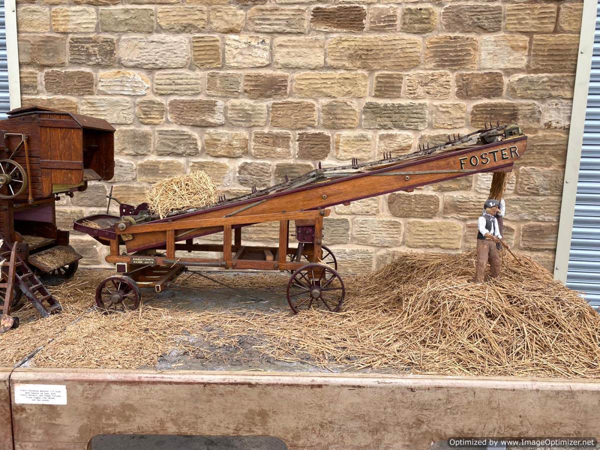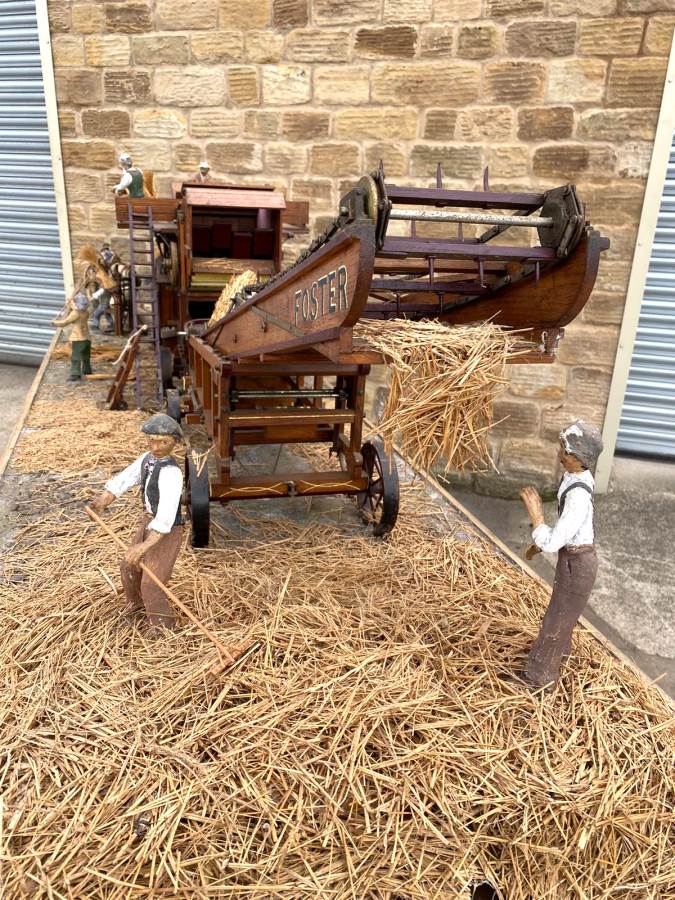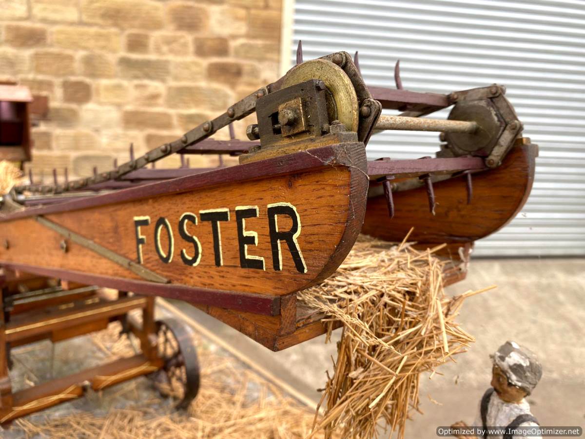 The whole display includes the Robey portable engine and the Foster hay lifter and is listed here separately. It comes on a large aluminium table that bolts together, and the three individual diorama sections bolt together in place so that it all becomes secure. There is also a large cover box that fits both on top of the models as protection and underneath them as a neater display table.