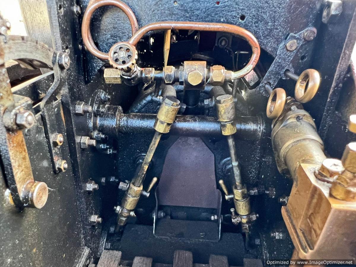 The boiler is a professionally made copper silver soldered one from Western Steam, and she can of course come fully hydraulically tested as well as with fresh steam tests so everything is up and running and ready to play. There's an injector fitted, as well as the usual crank shaft water pump with footplate mounted bypass valve. In this instance there is also a hand pump mounted in the back of the bunker.