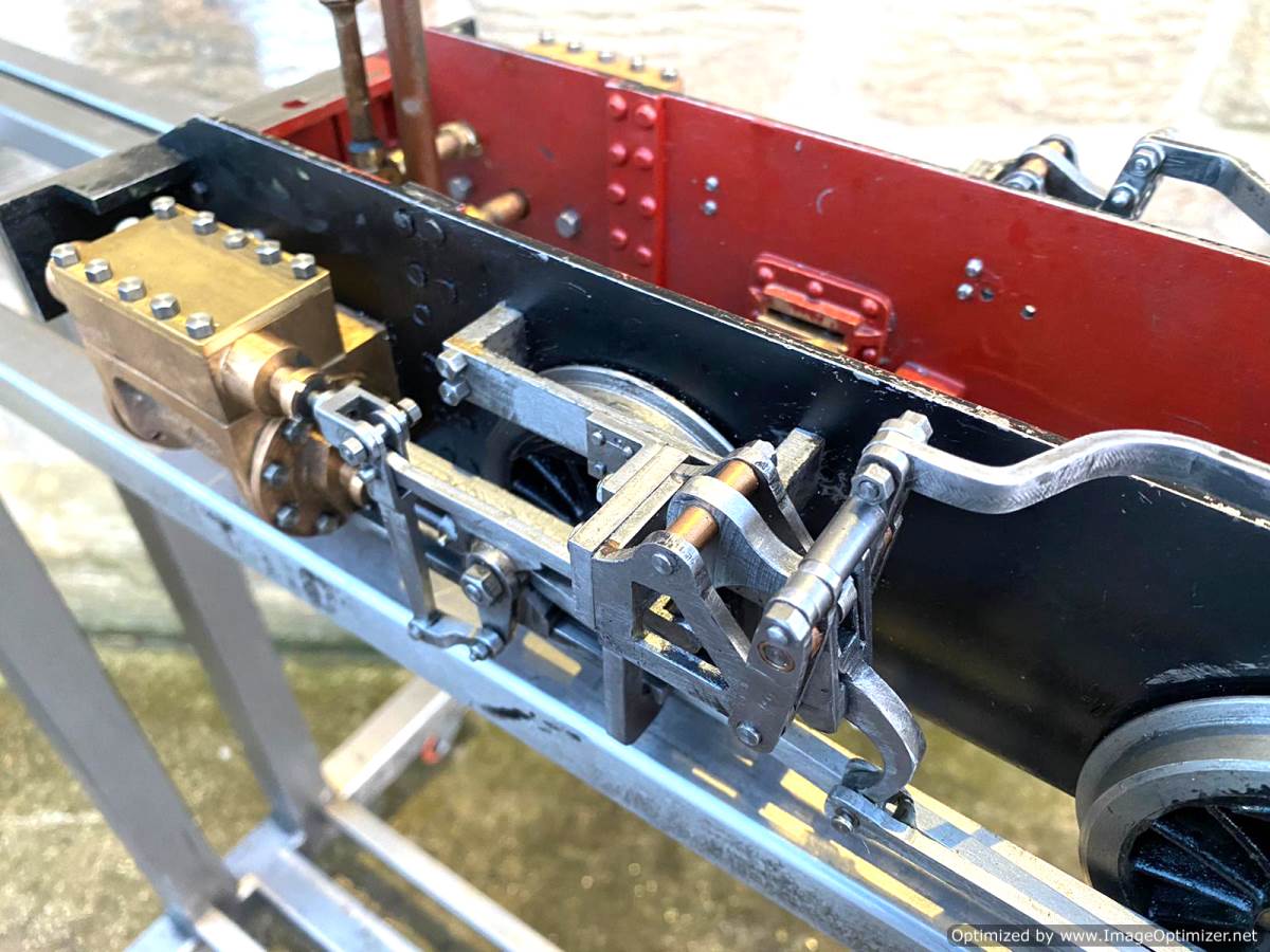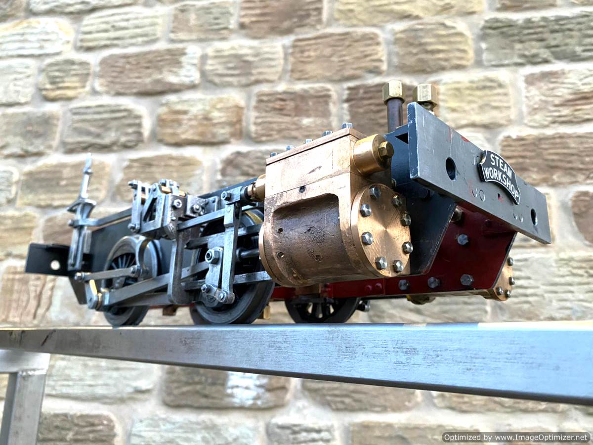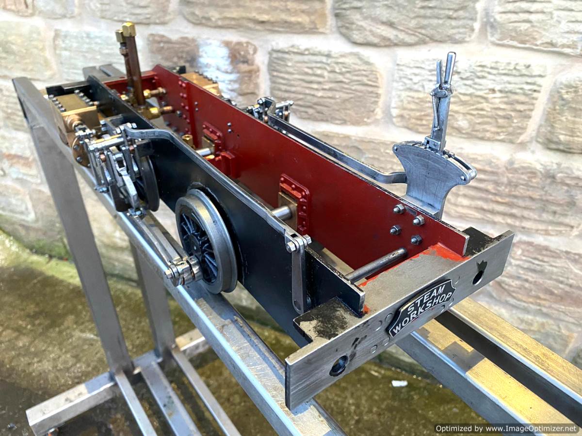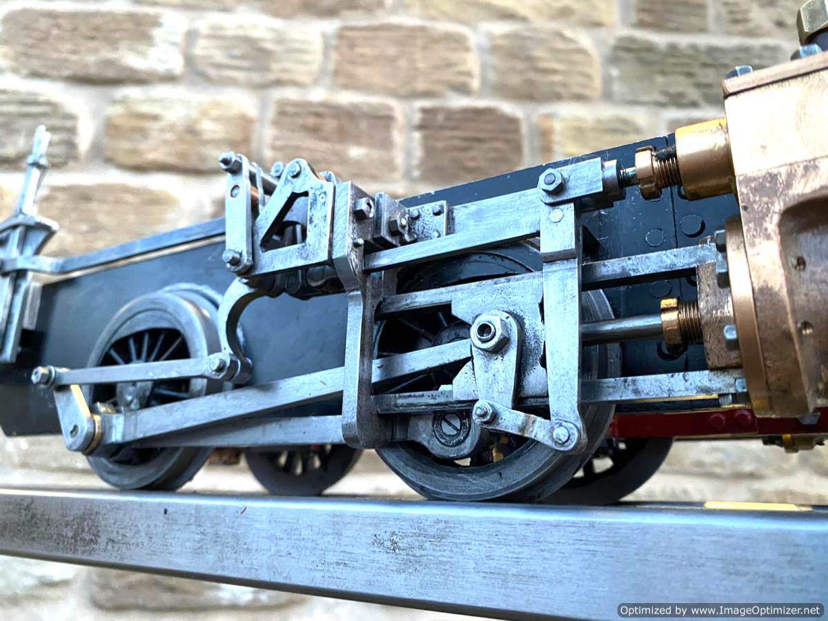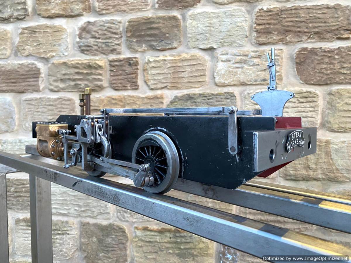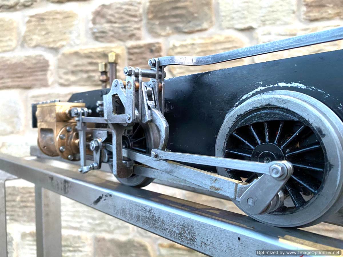 Here we have a nicely executed 3 1/2" gauge LBSC Juliet chassis, built with the Baker valve gear variation and finished to the air running stage.  A really nicely made example clearly machined by a capable machinist.