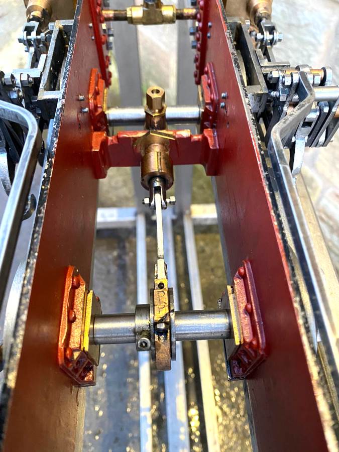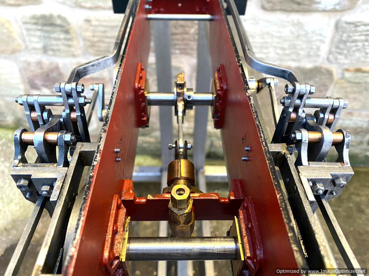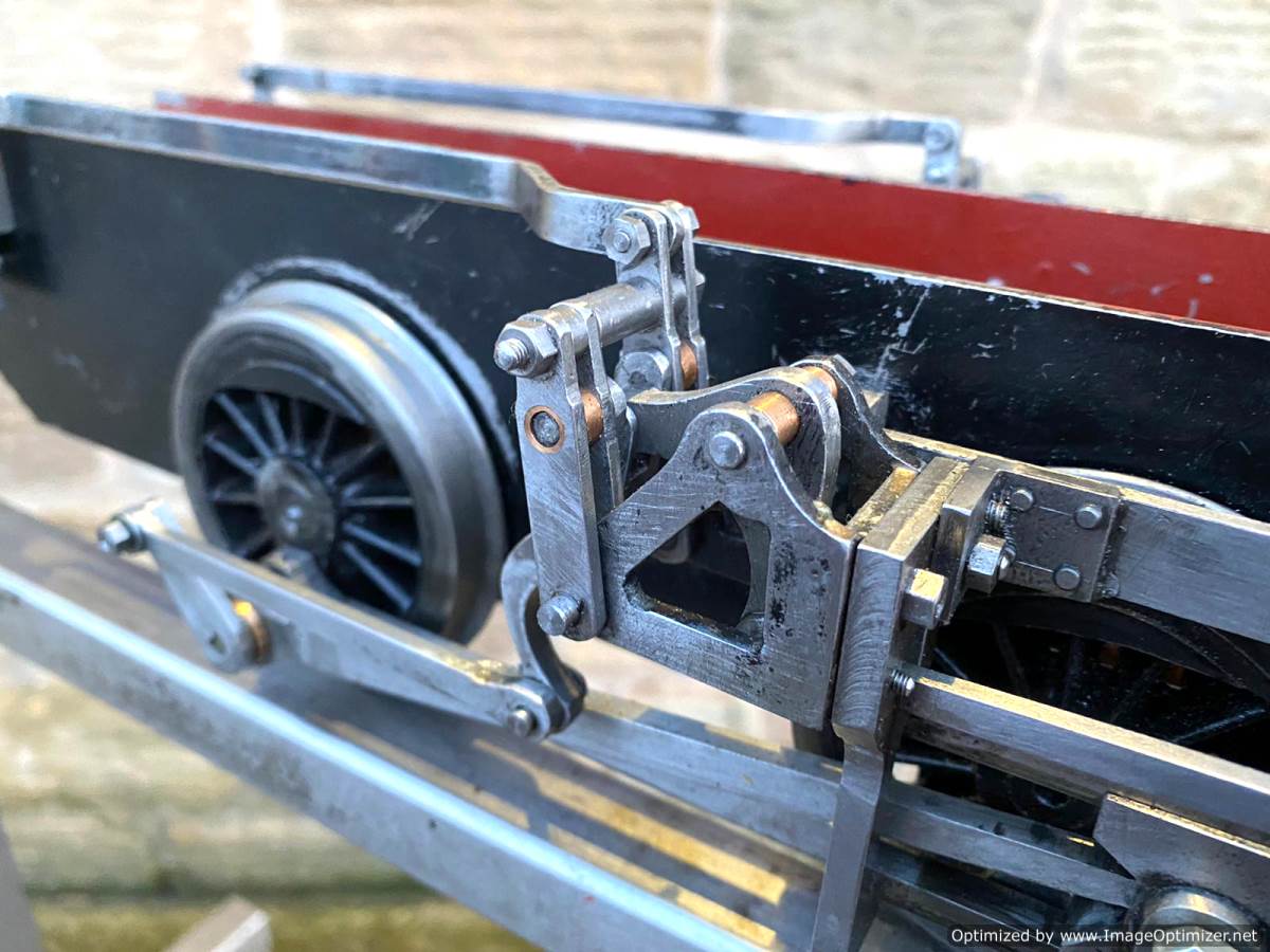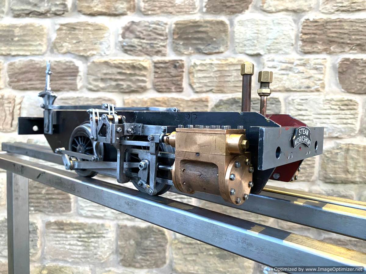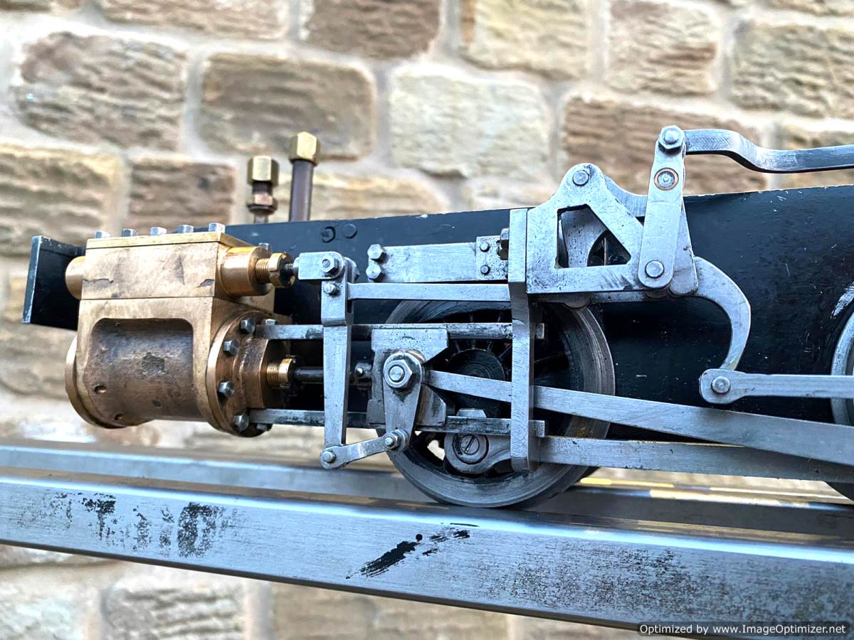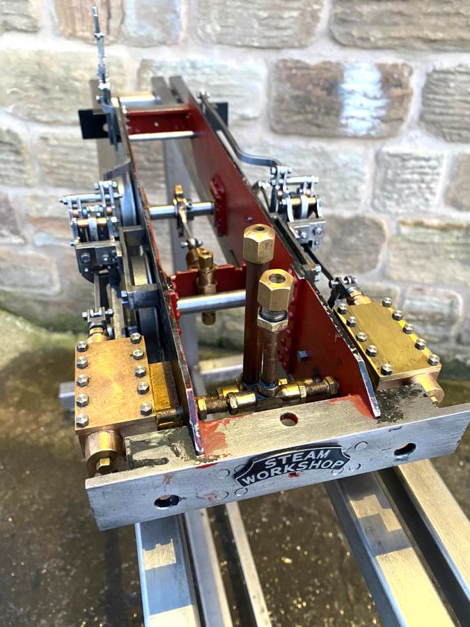Here we have a nicely executed 3 1/2" gauge LBSC Juliet chassis, built with the Baker valve gear variation and finished to the air running stage.  A really nicely made example clearly machined by a capable machinist.