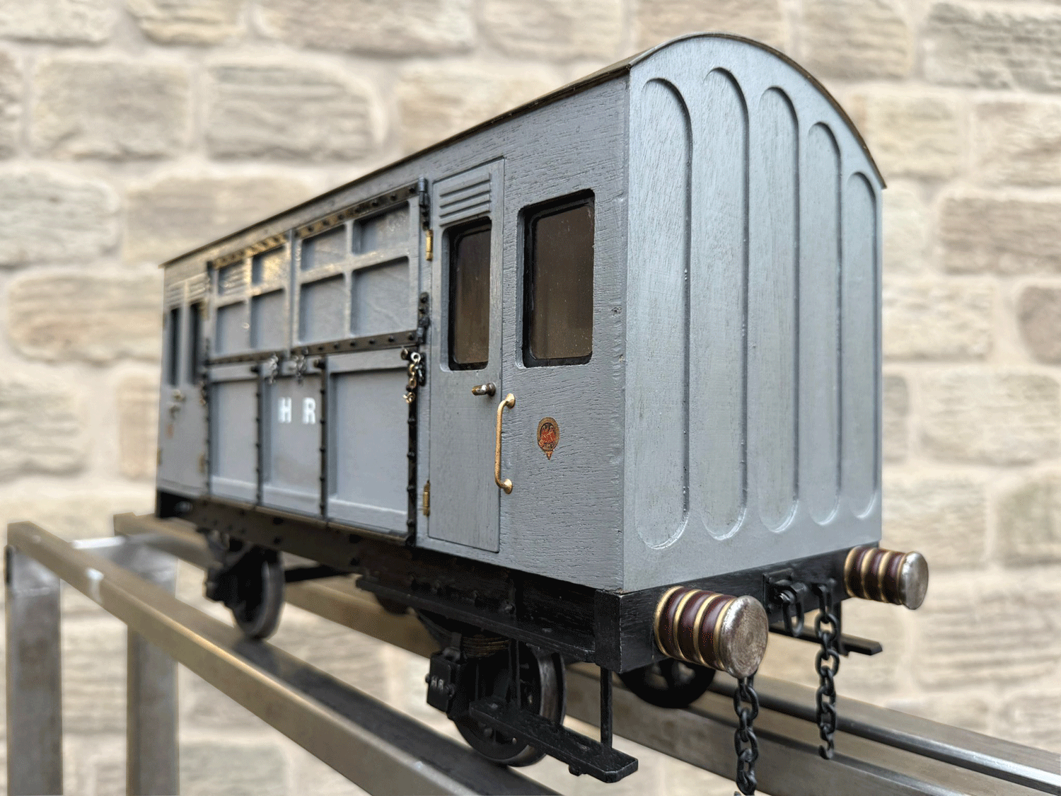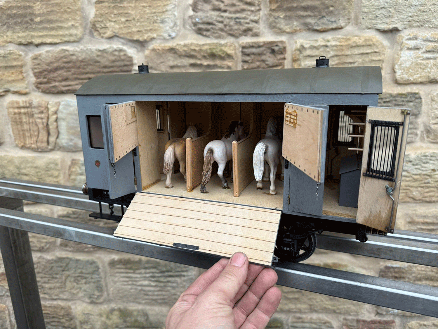 Here we have a prize winning, exhibition standard 3½" gauge Highland Railway horsebox, built by the award winning late Harry Clyne. A particularly beautifully made wagon with all the doors and latches being fully functional, even the internal one to the tack room! The lamps in the roof lift out as per the prototype, and the whole thing is a really satisfying model that would look every bit as goon on your display track as it would in your train.