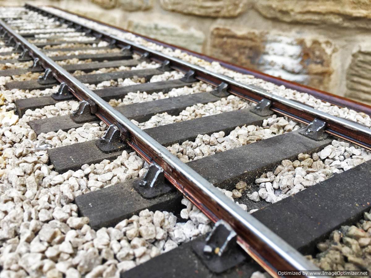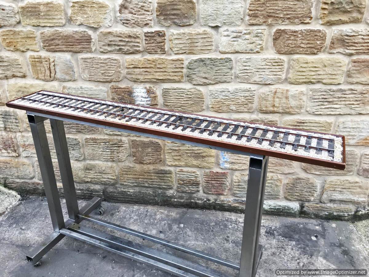 Here we have a very nice 3 1/2" gauge display track.  Fully detailed with sleepers, chairs and the correct rail section.  The odd bit of oil staining to the ballast, but nothing a little clean wouldn't sort, and on a tidy wooden base.  Ideal and long enough for a large express passenger loco in this scale.