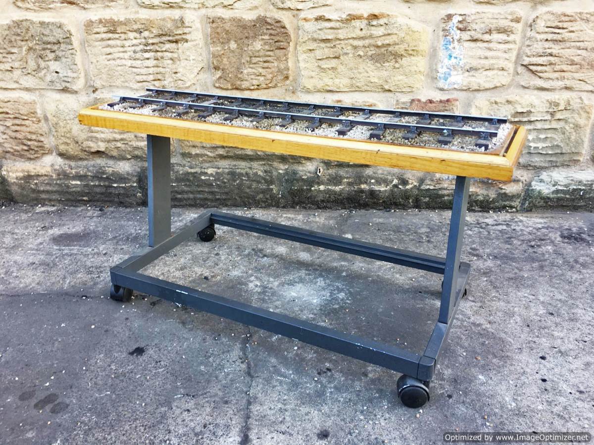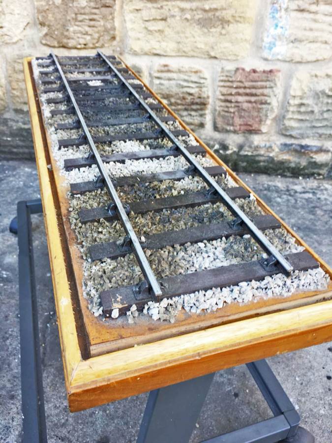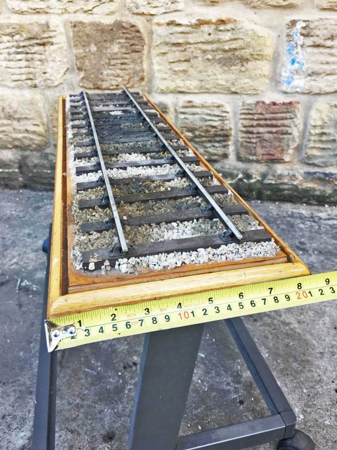 Here we have a nice little 3 1/2" gauge display track and trolley. Suitable for most 3 1/2" gauge tank engines, was originally used to display a 3 1/2" GWR Prarie tank to Martin Evans' firefly design. A bit oily here and there on the ballast, but nicely detailed and presented with nice sleeper and chair detail. The grey wheeled base is integral to the track and is therefore included.