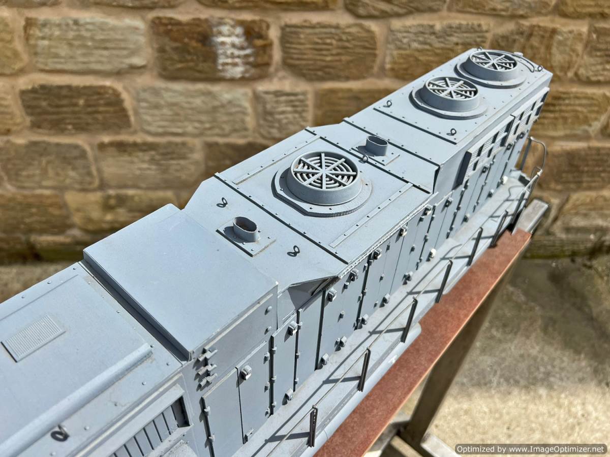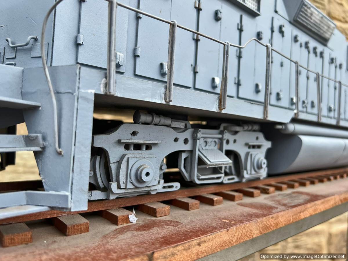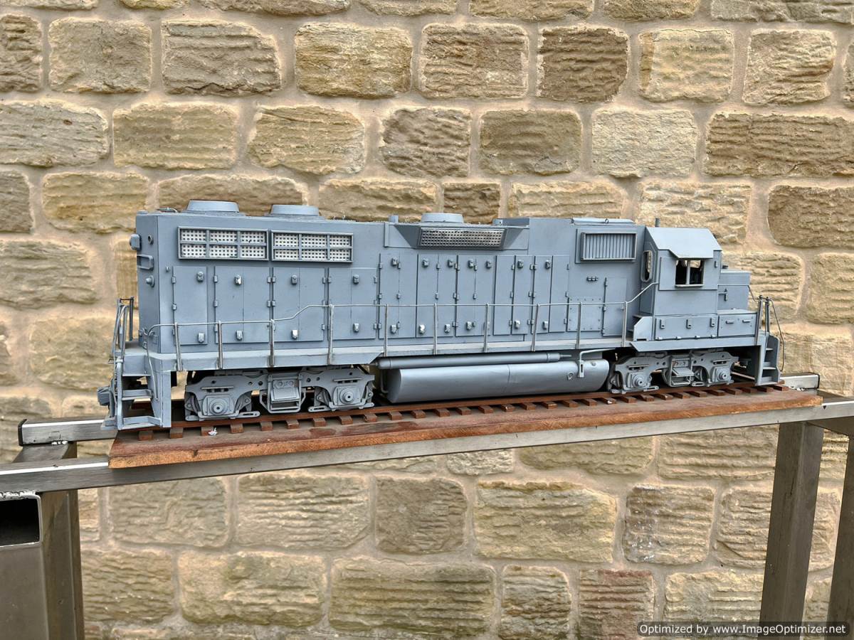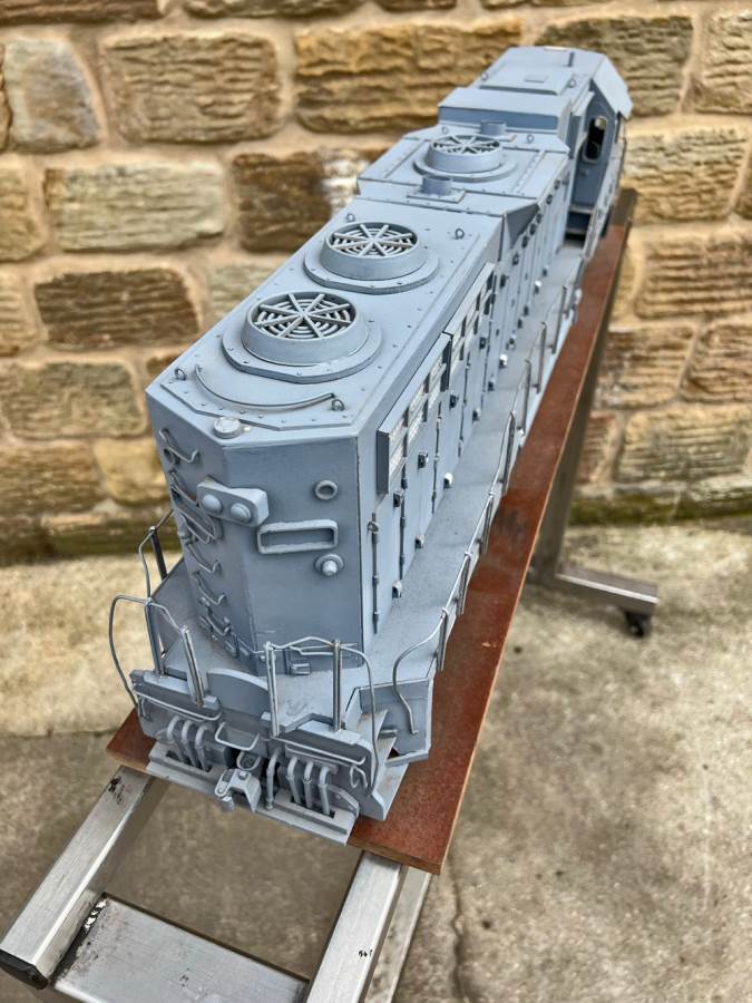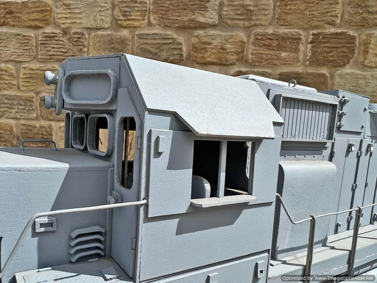 ere we have a scratch built wood, and plasticard EMD GP38 in 3 1/2" gauge. Nicely scratch built with plenty of detail. A little delicate so would need a good bit of re-engineering if you were to try and use it as the basis for a running battery electric model, but certainly a nice display piece.