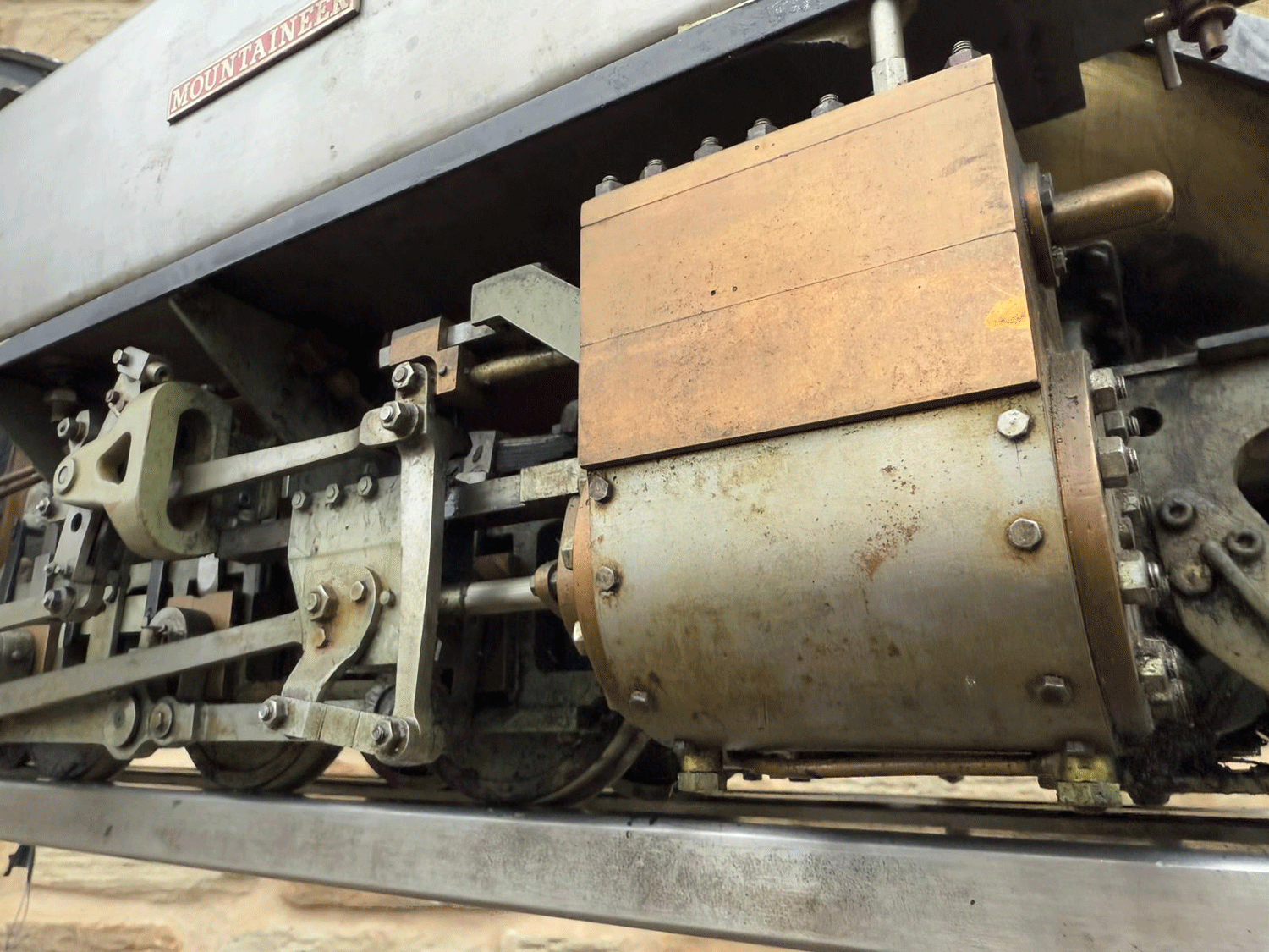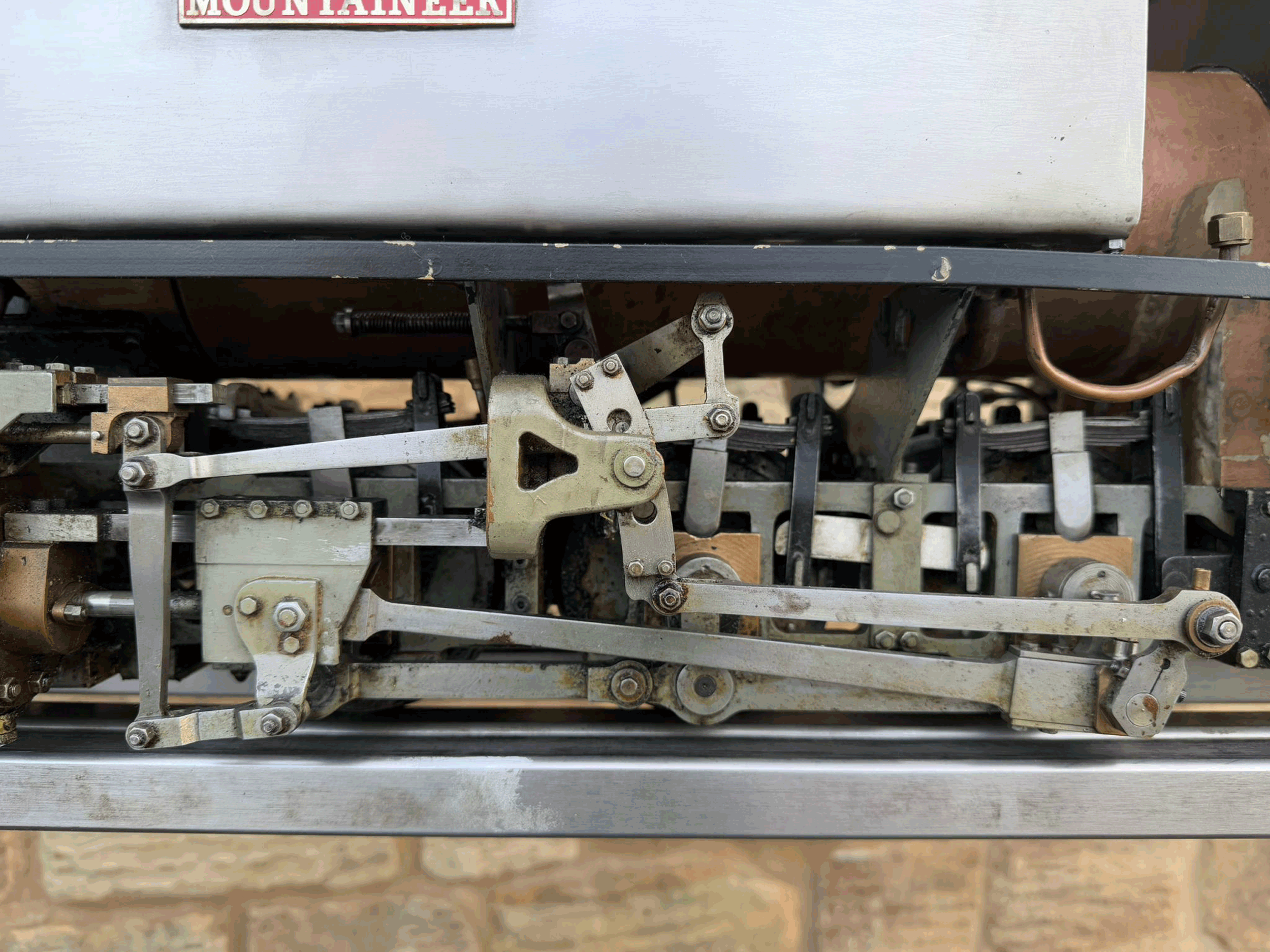 Here we have a 3 1/2" gauge Ffestiniog 'Mountaineer'. A really nicely made locomotive that ran beautifully at our local model engineers track. It's actually never been painted, always being in service with the stainless tanks. It was stripped down by the builder to undertake the repair of a minor boiler weap, but unfortunately he passed away before he could complete the re-assembly. We've had the model here at Steam Workshop for the past couple of years waiting for a free moment to put the loco properly back together, but that time has never come. We've therefore decided to offer it for sale as a project instead for someone else to progress.