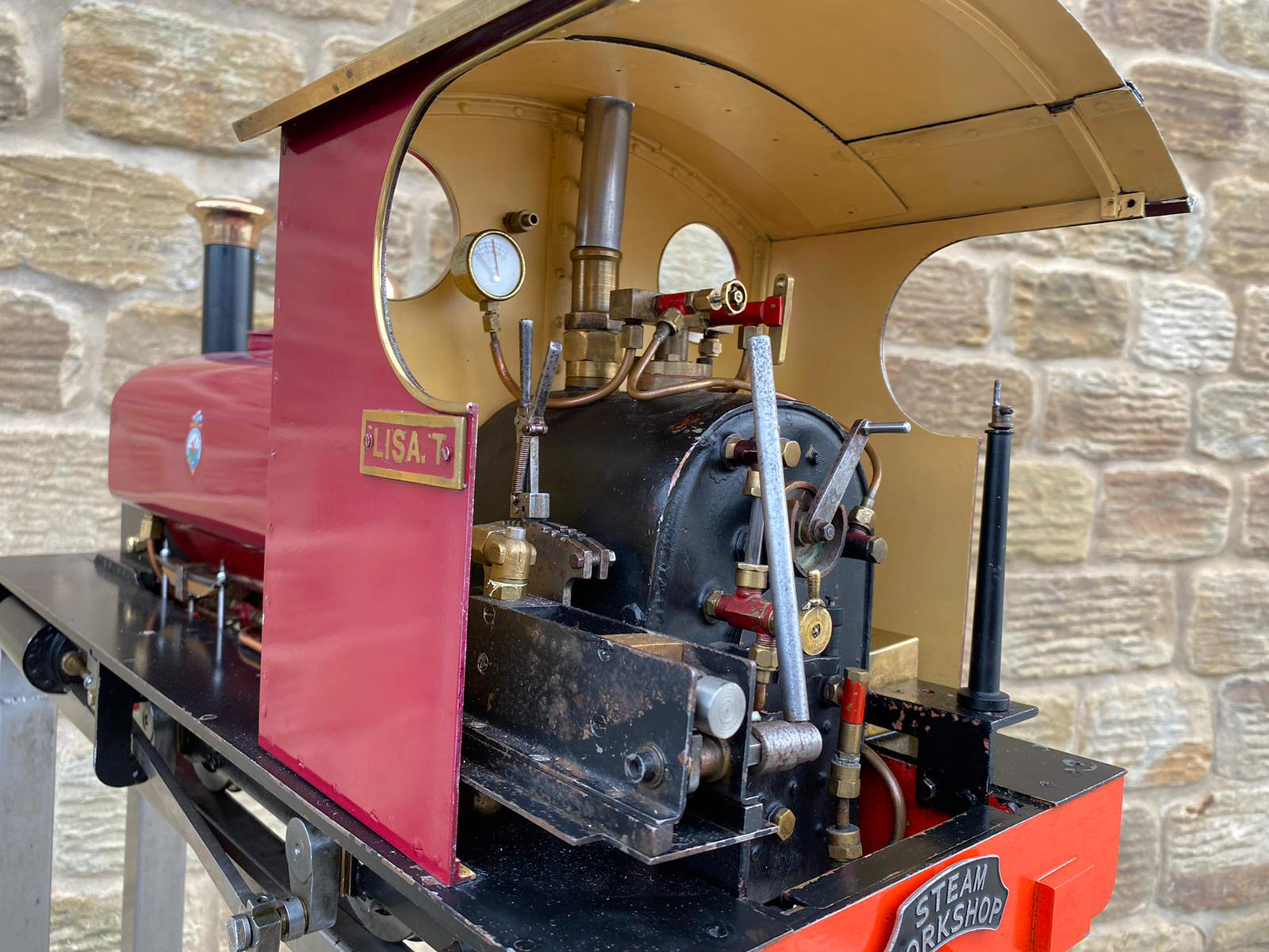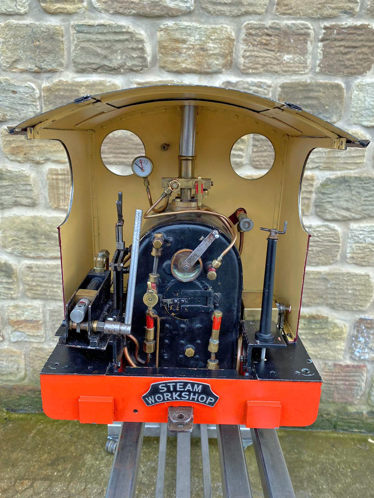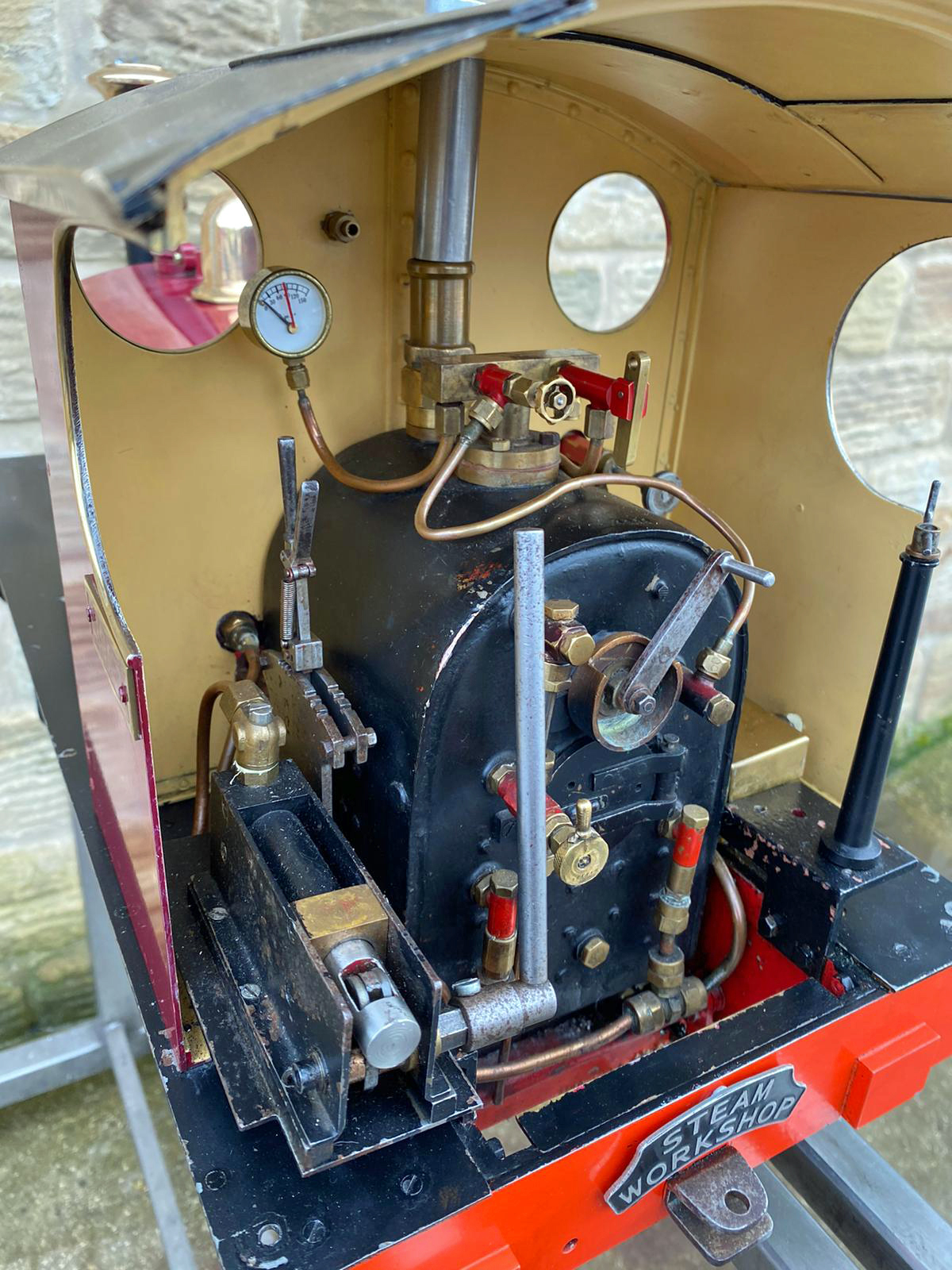This particular 'Conway' has come into us in part exchange for a larger 5" locomotive, and has been well looked after by both it's previous owners.  The boiler is silver soldered copper and comes with full hydraulic and steam certificates.  Mechanicaly too, she is in good shape.  There's no particular slop in the motion to speak of, and she is ready to head straight to the track and perform.