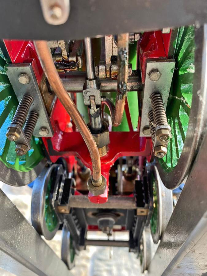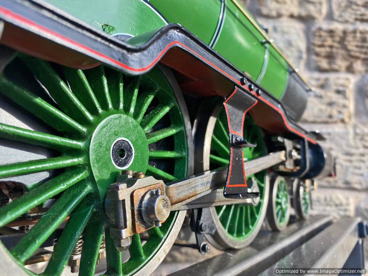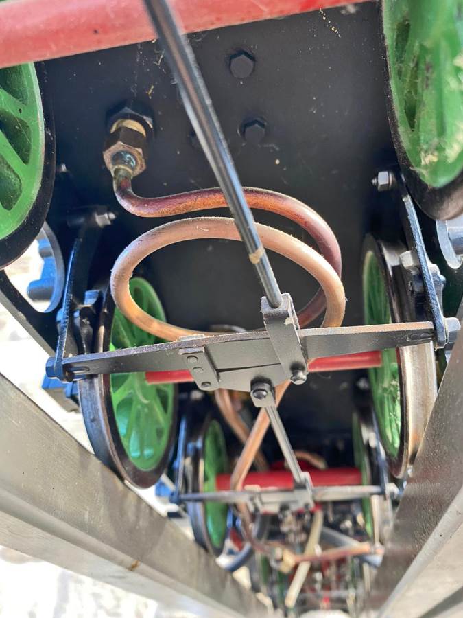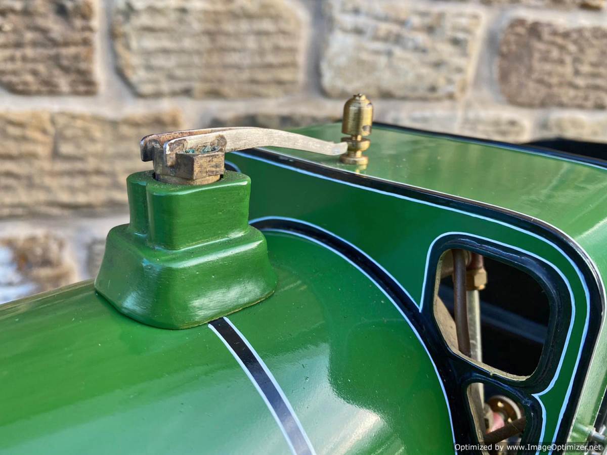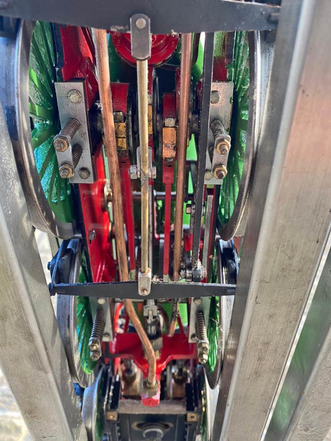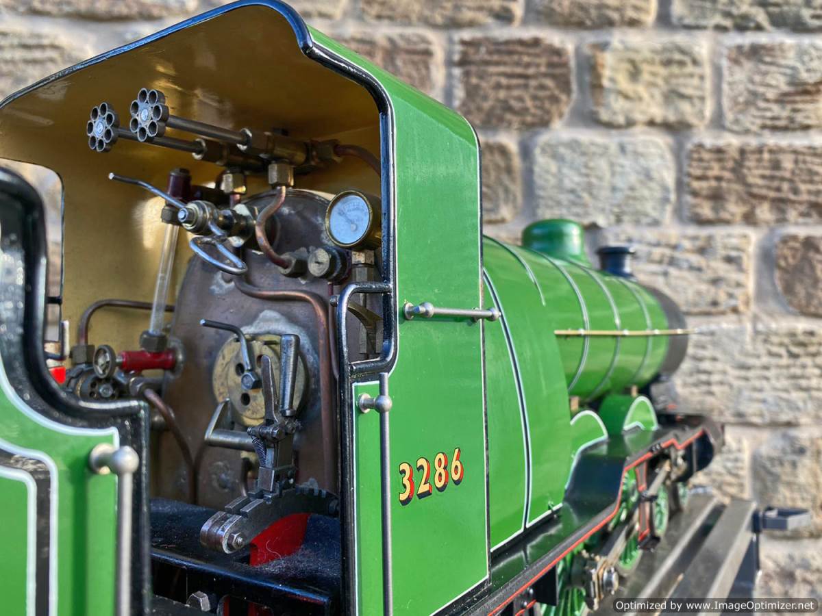 Fitted with an injector, an axle pump with footplate mounted bypass valve and of course the hand pump in the tender. Lubrication is mechanical and hidden under the front running boards. The boiler is copper and silver soldered and of course comes fully tested and ready to play.