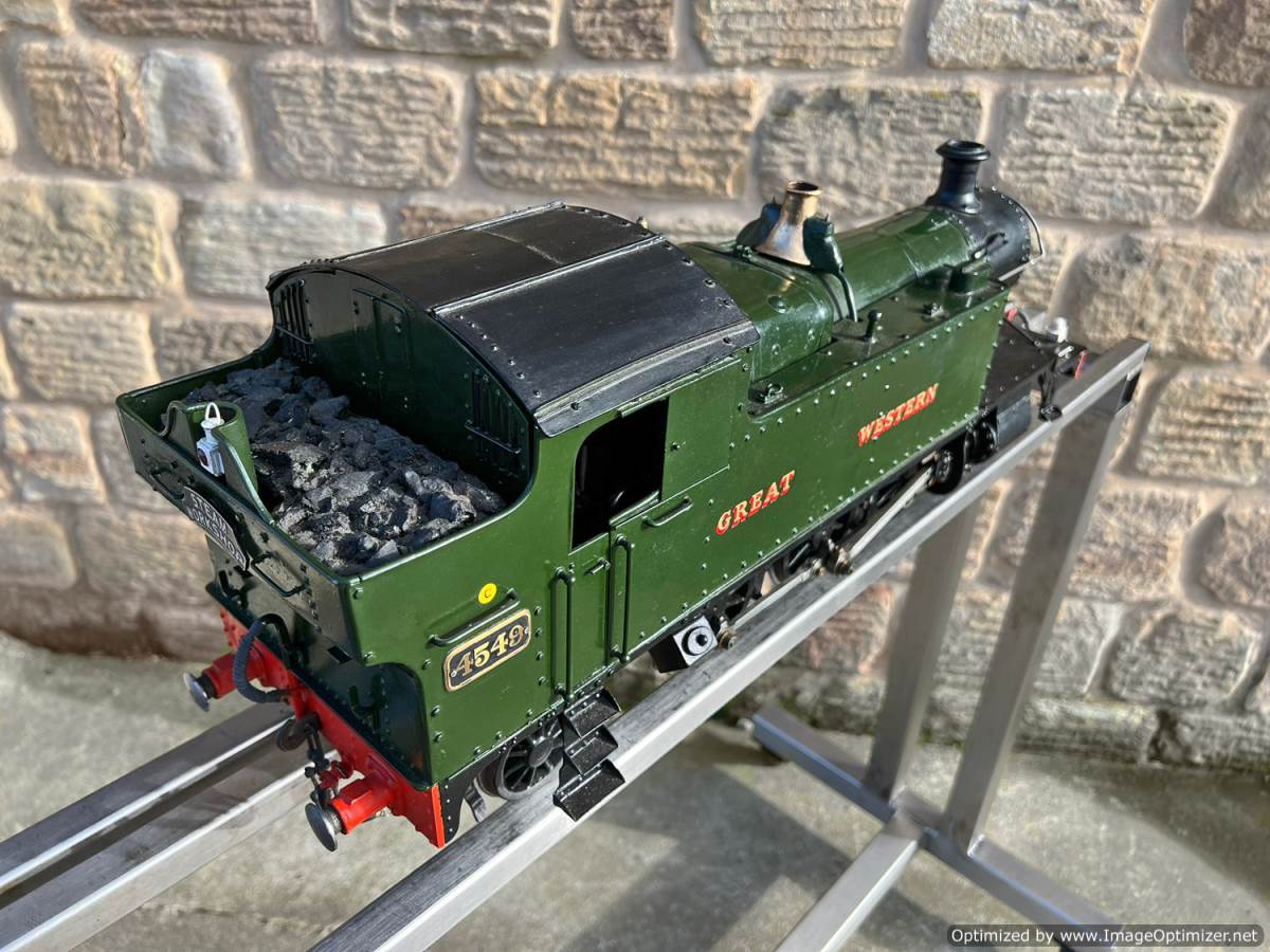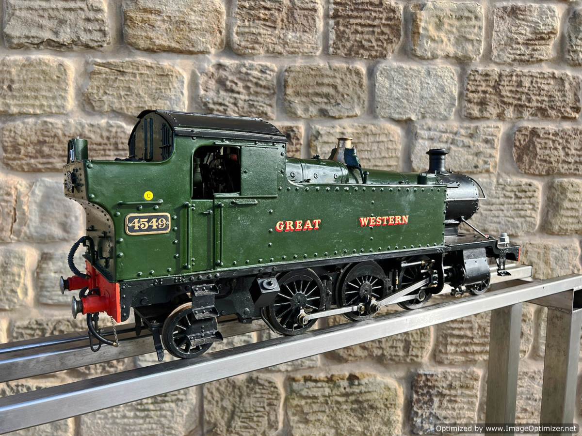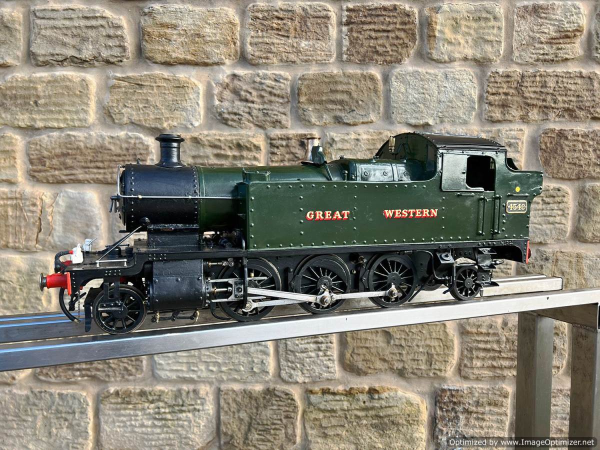 Here we have a pretty little 3 1/2" gauge GWR 45XX Prairie tank. A nicely engineered example of Martin Evans Firefly design.