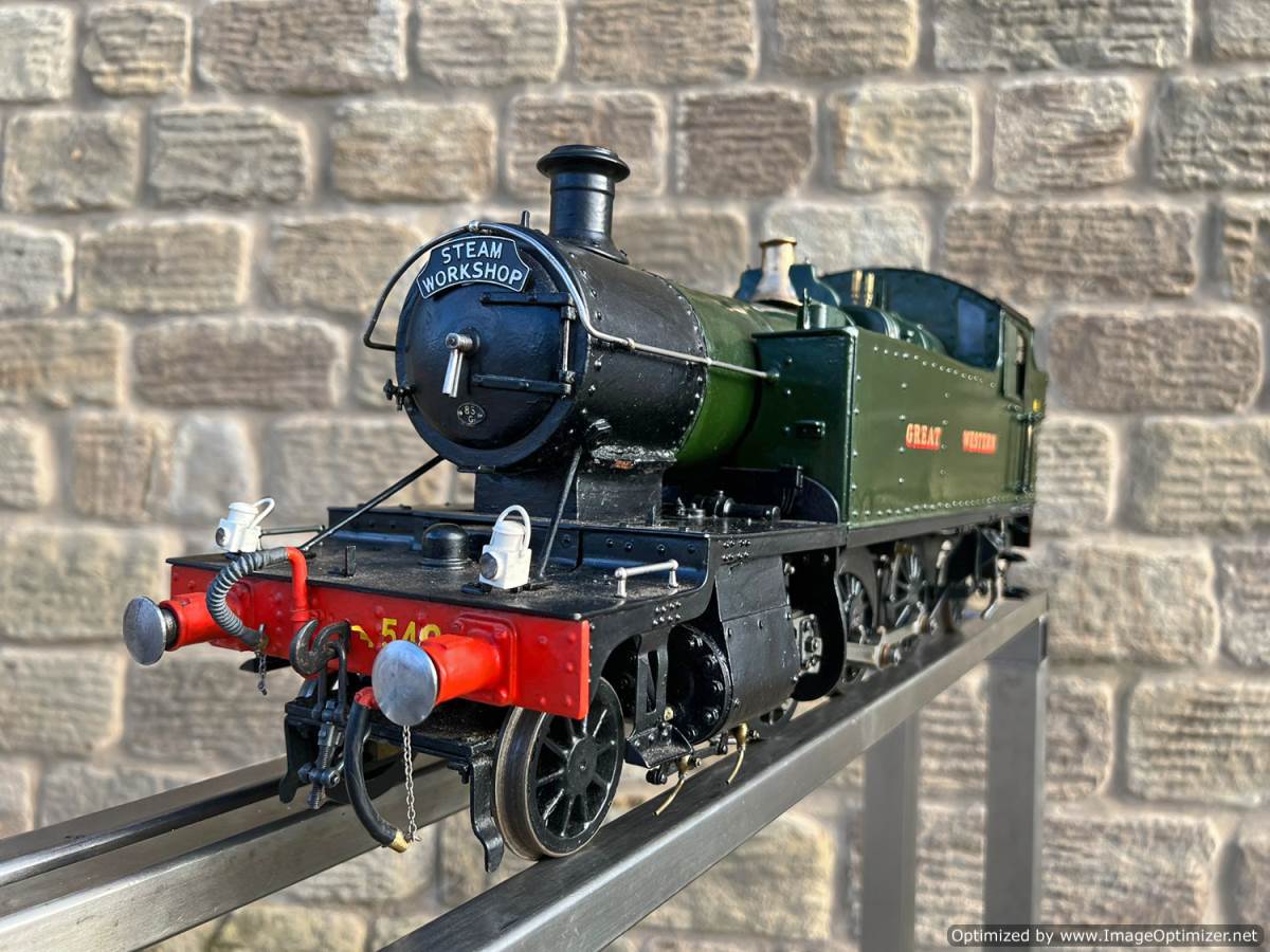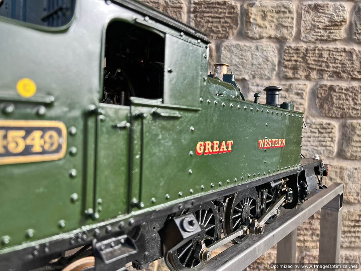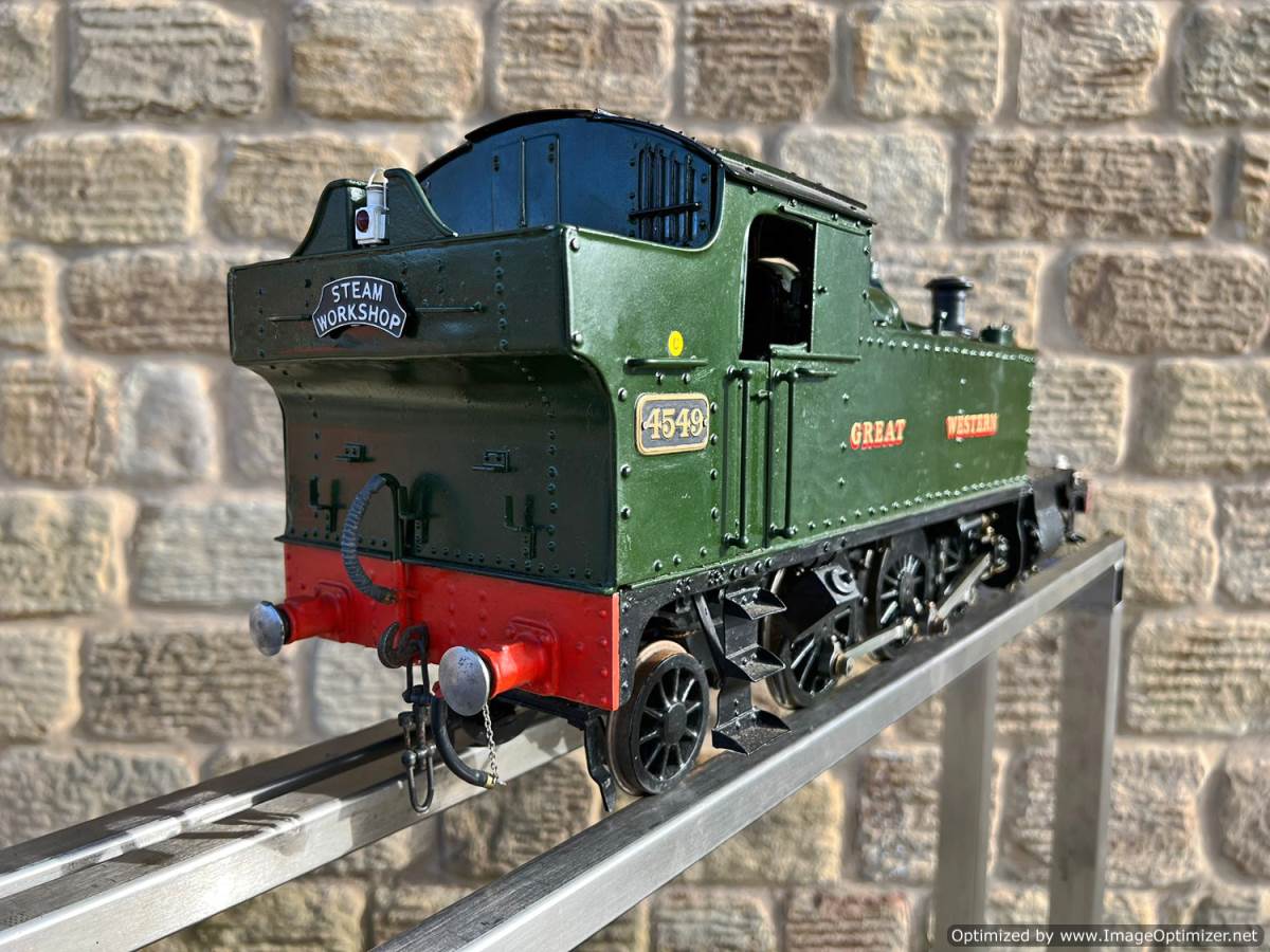 Here we have a pretty little 3 1/2" gauge GWR 45XX Prairie tank. A nicely engineered example of Martin Evans Firefly design.