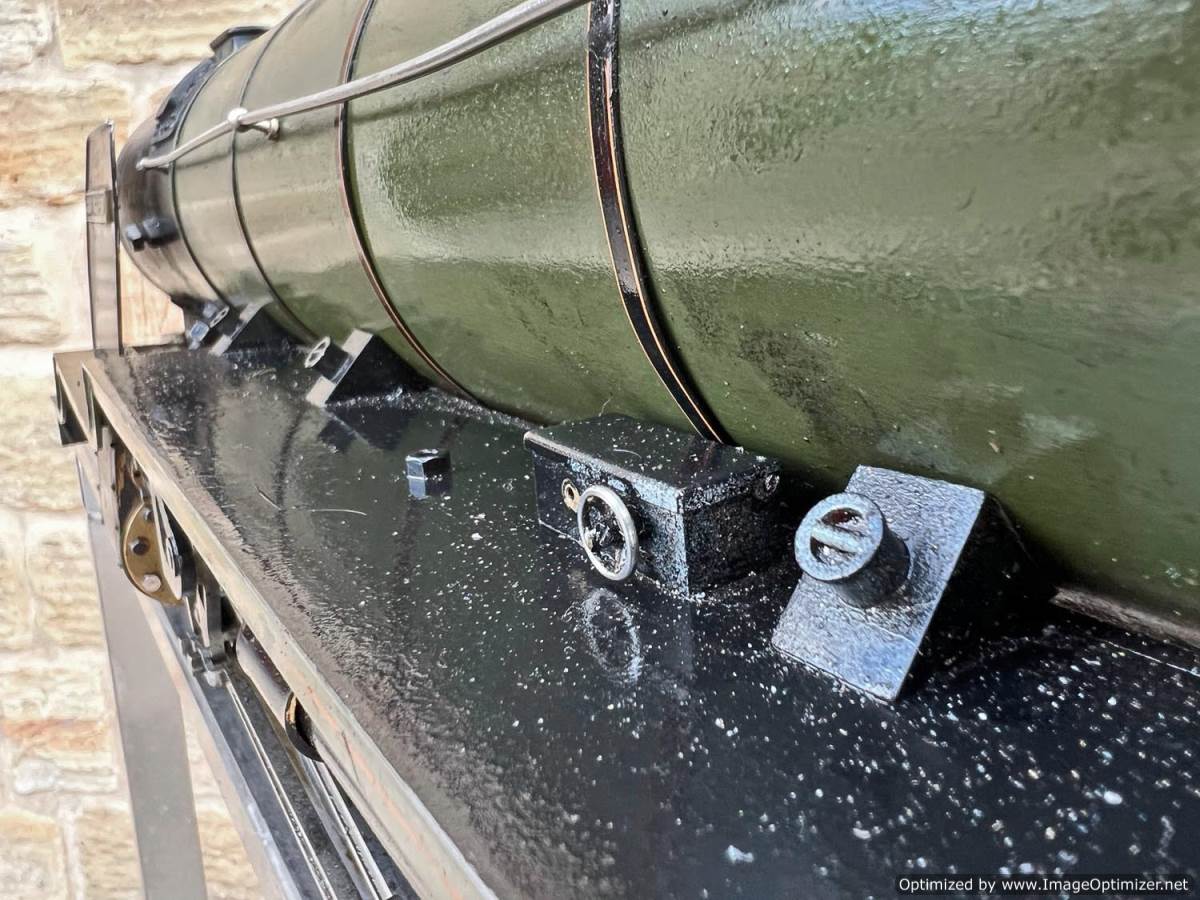 Silver soldered professionally made copper boiler with full certificates and boiler tests. Fitted with an injector, axle pumps and hand pump in the tender. Mechanical lubrication.