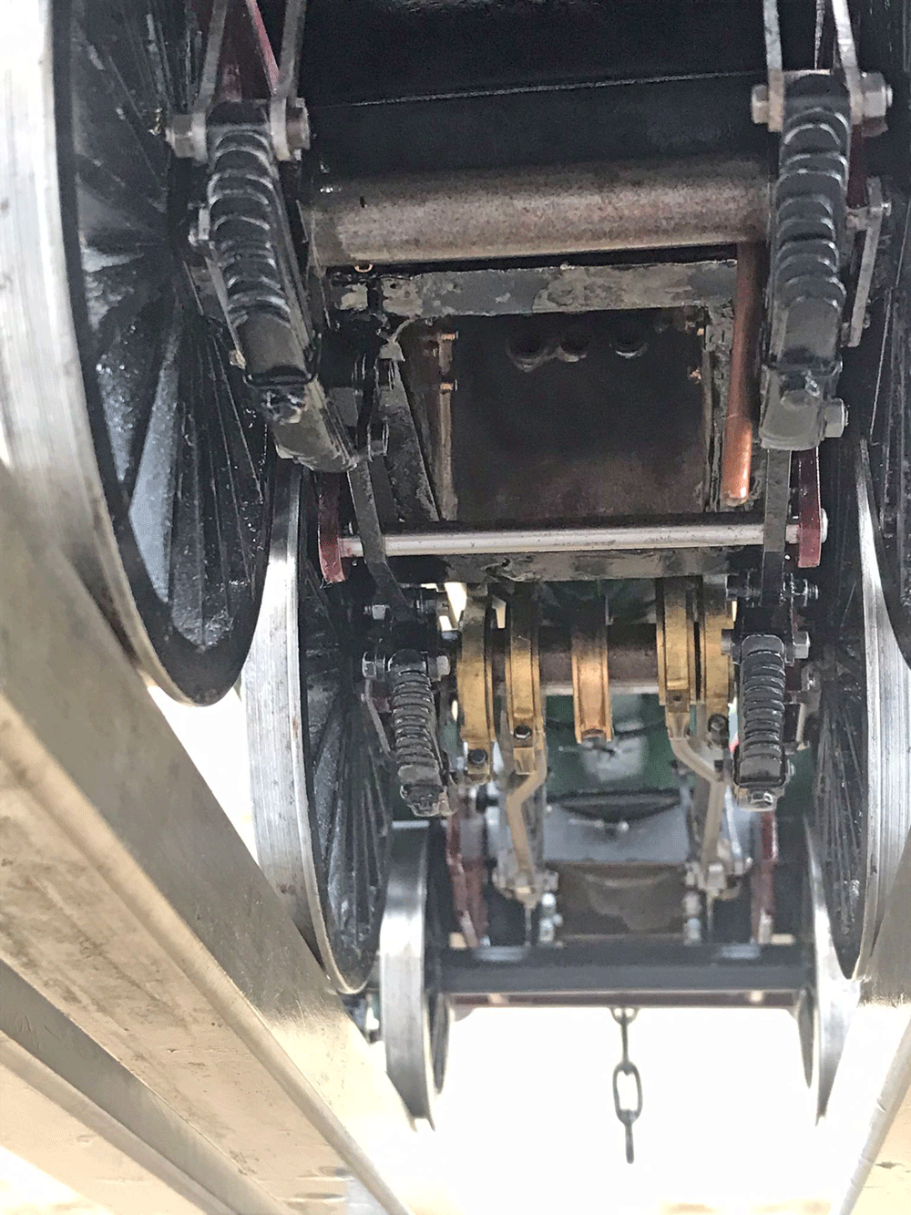 The model is in as new condition having never been steamed, and is actually not quite finished to the point where it could be run yet. Although the silver soldered copper boiler looks solidly made and appears perfectly serviceable, it looks as though at some point Harry decided to finish it off cosmetically for display, even though the time and effort had already been invested making the bottom end and boiler to work. We think it would need a degree of stripping down in order to complete all the finishing off and plumbing jobs to commission it to actually steam. The twin safety valves are a lovely feature of the design, although again, they are currently not made to work, and there is no method of water injection to the boiler fitted or indeed lubrication as yet.