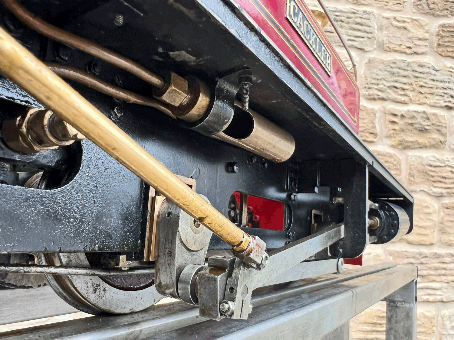 We sold this particular 'Conway' several years ago to her previous owner and it has now come into us as a part exchange for a larger 5" locomotive. It's clearly been well looked after. The boiler is silver soldered copper and comes with full hydraulic and steam certificates. Mechanicaly too, she is in good shape. There's no particular slop in the motion to speak of, and she is ready to head straight to the track and perform.
