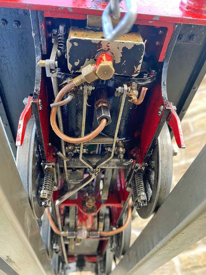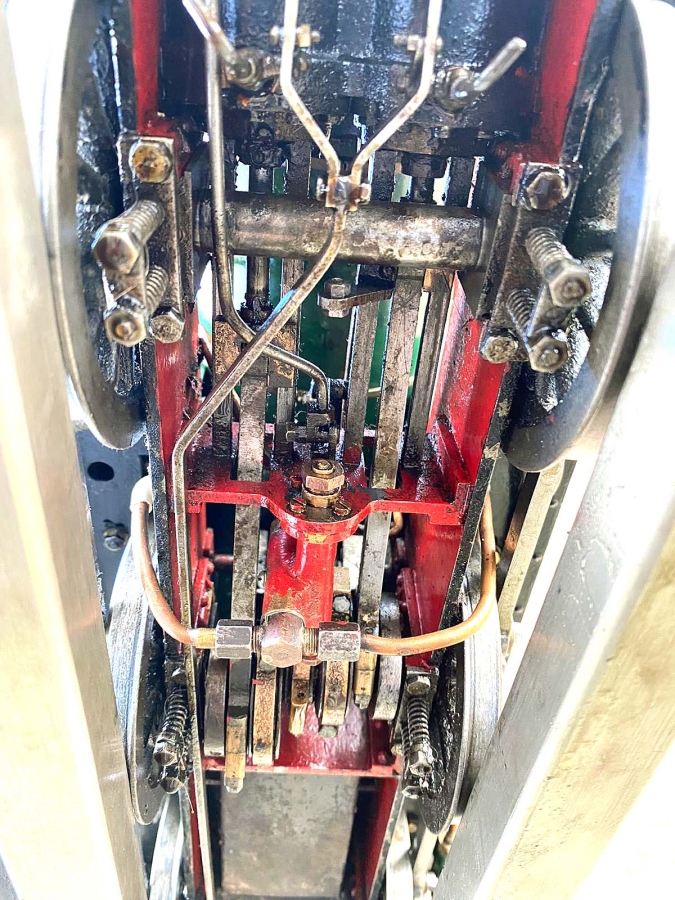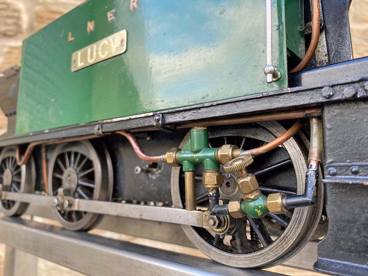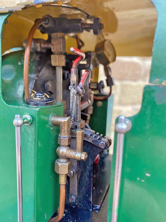 The boiler is silver soldered copper, superheated and comes with a full twice working pressure hydraulic test as well as a fresh steam test.  There is an injector, as well as a footplate mounted bypass valve for the axle pump and of course a hand pump in the side tank.  Lubrication is mechanical and hidden in the usual place under the front running boards.