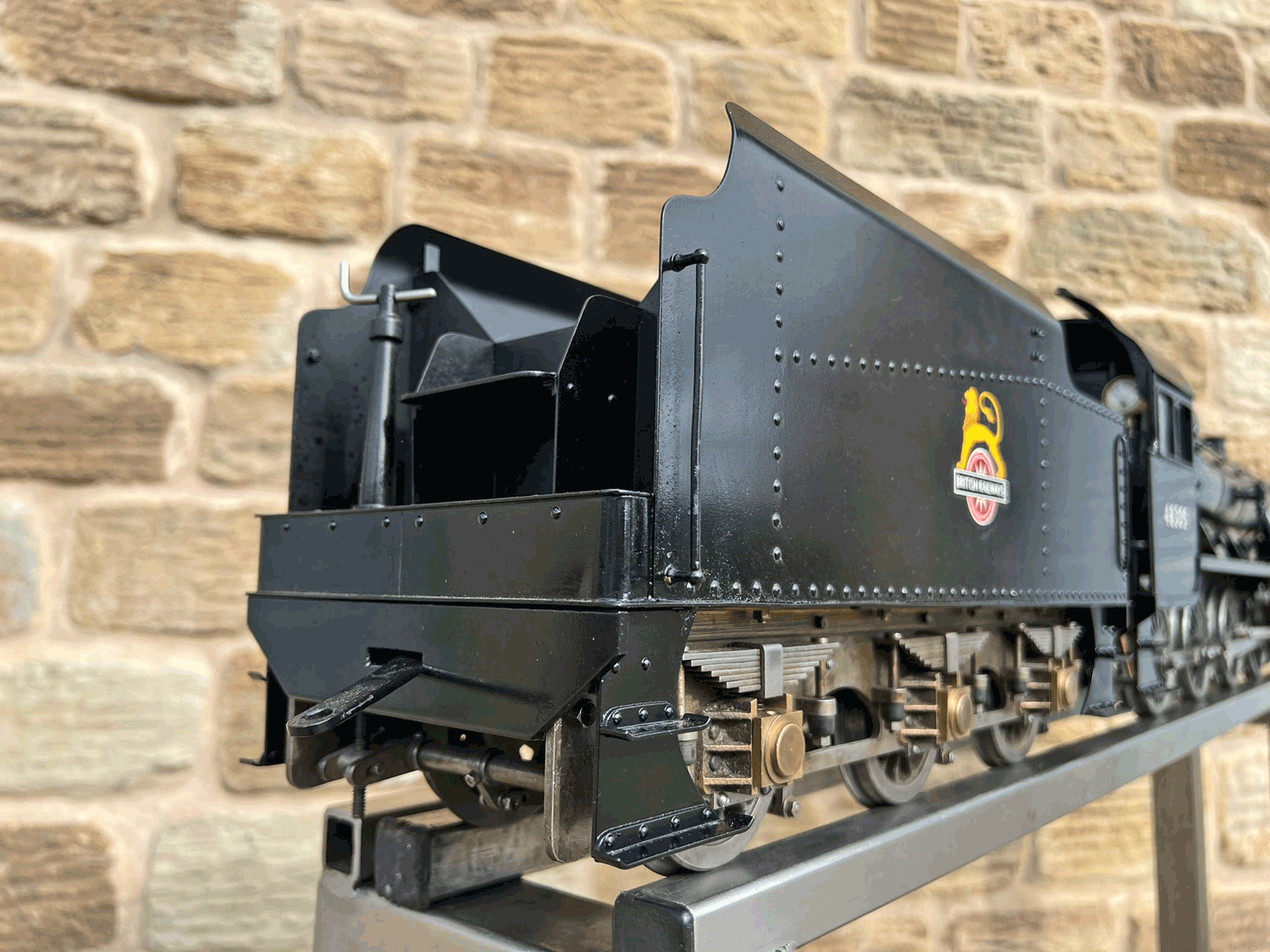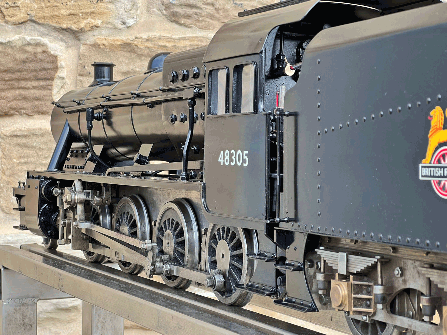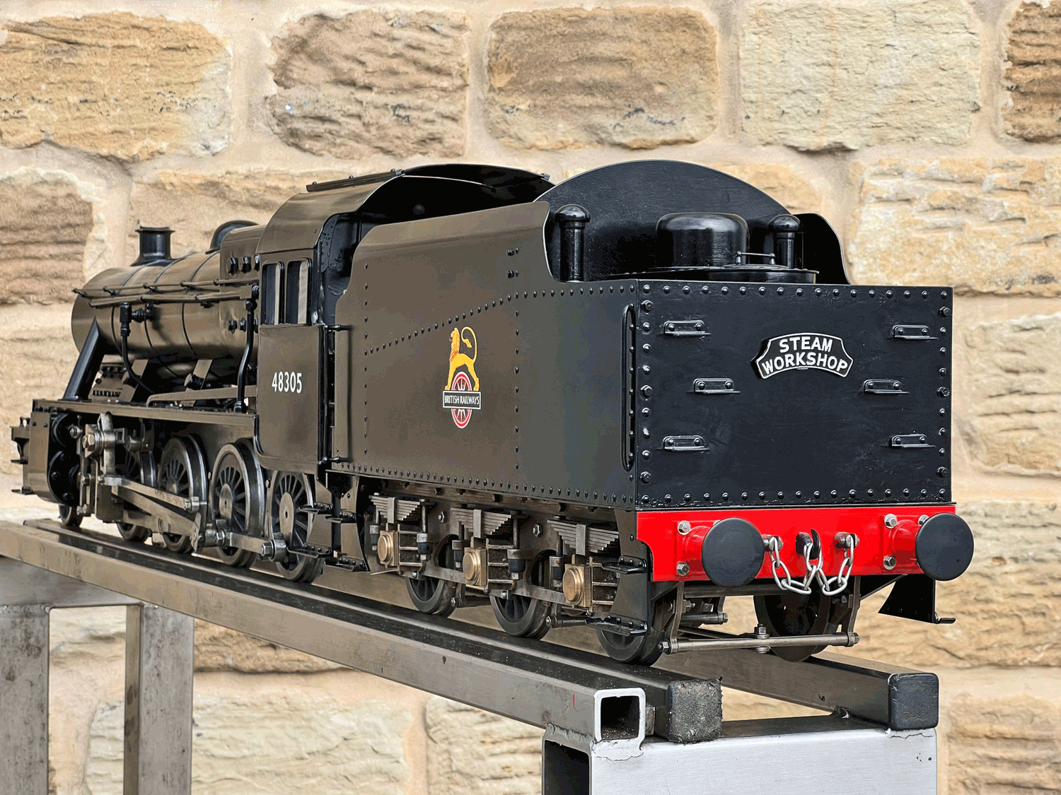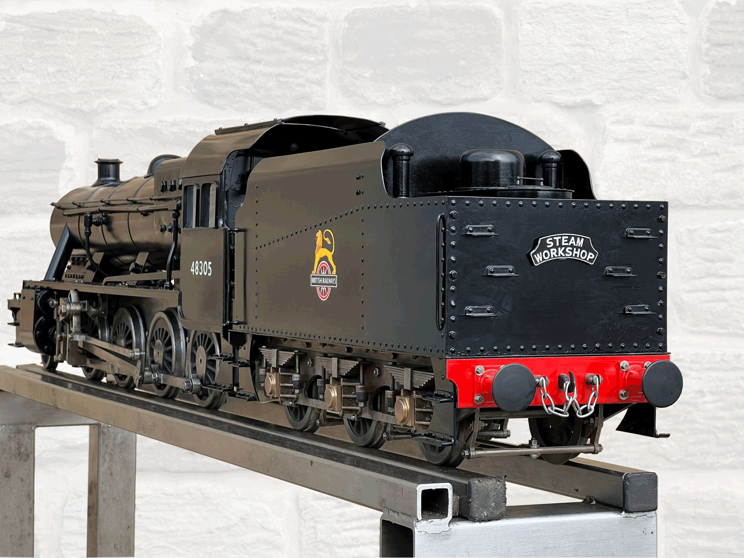 Here we have a rare beast, a 3 1/2" gauge LMS Stanier 8F. A little bit of a project for someone for this winter. We had a customer on this loco as a fully commissioned model ready to play, but when we brought it into the workshop to more thoroughly investigate and work on it, we found that several aspects were missing or not as finished as the overall impression of the loco gave. The safety valves for example have no holes in them and no internals, there's no plumbing at all done yet for the lubricator or any of the water systems. It looks like what's been done is tidy and certainly the paint finish is also neat, implying a bit of care has been taken, but there was a bit too much work left to do in order to get this one over the finish line than we ultimately have time for in our workshops. As a result, the decision was taken to apologise to the customer, and list the model as a project for a much reduced price instead.