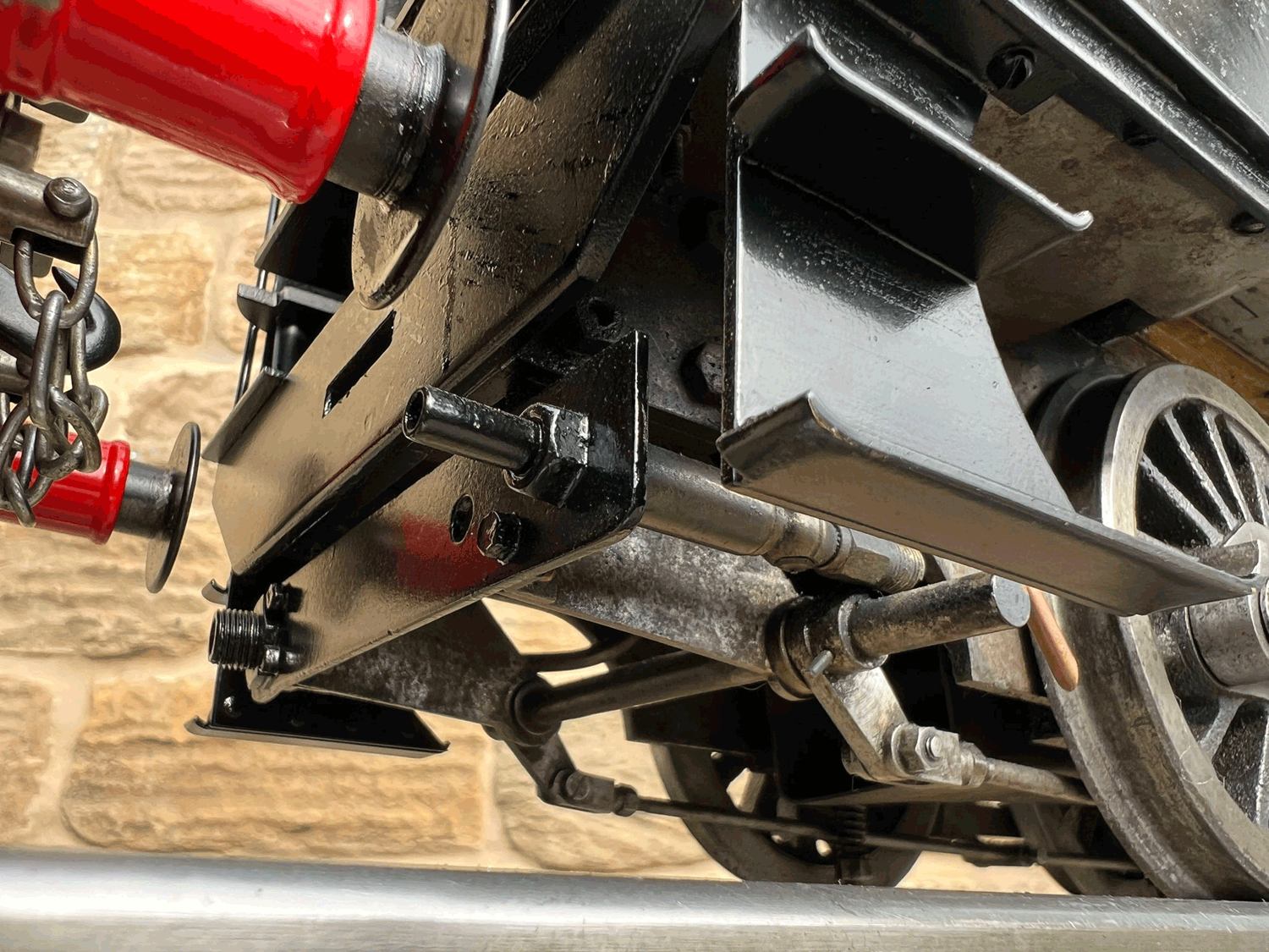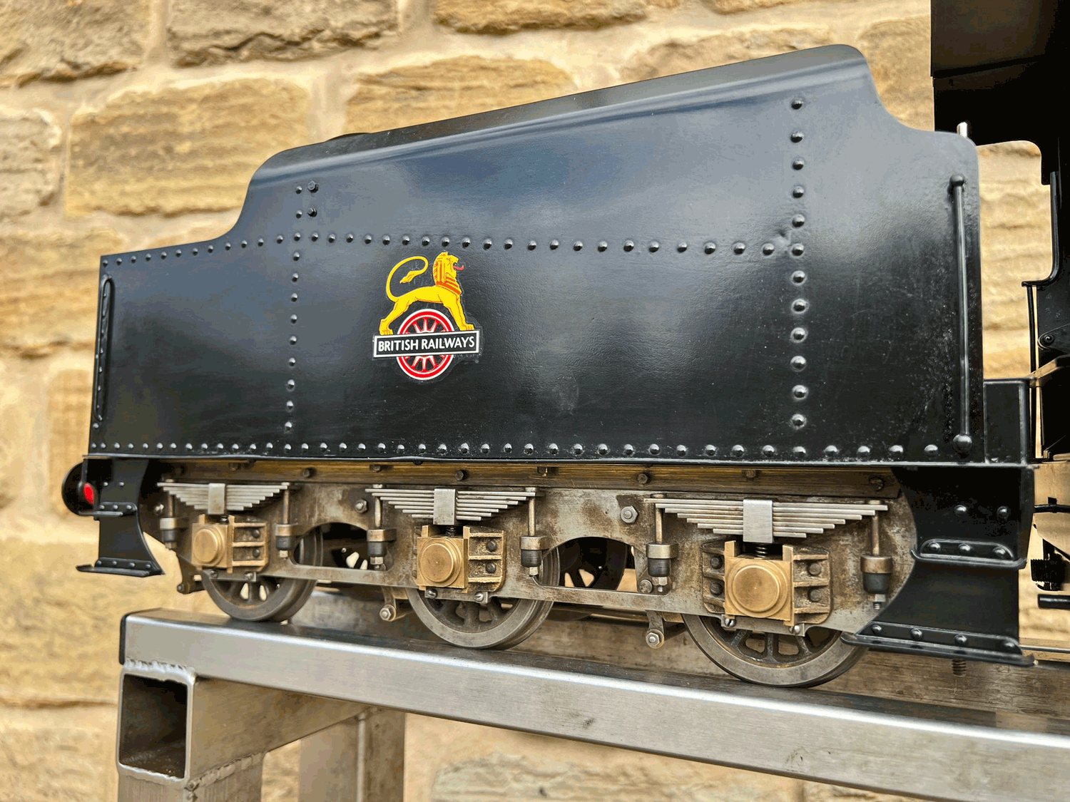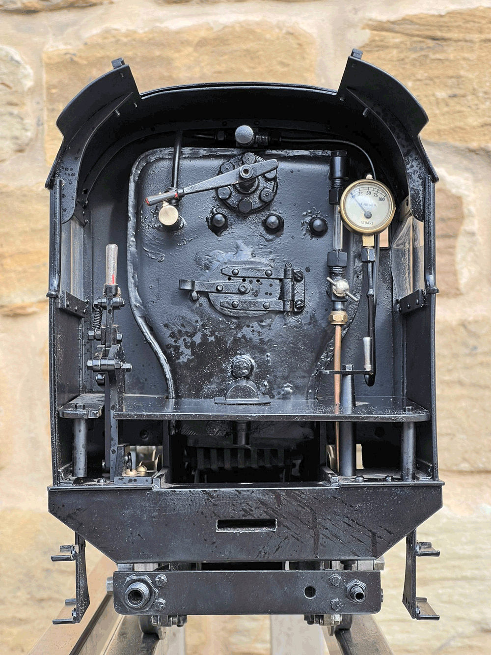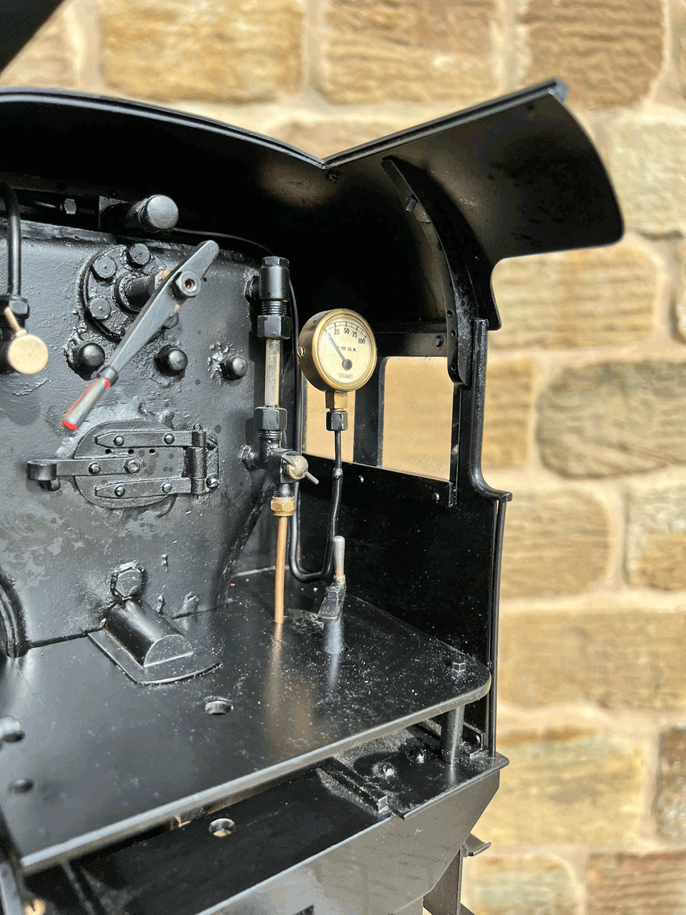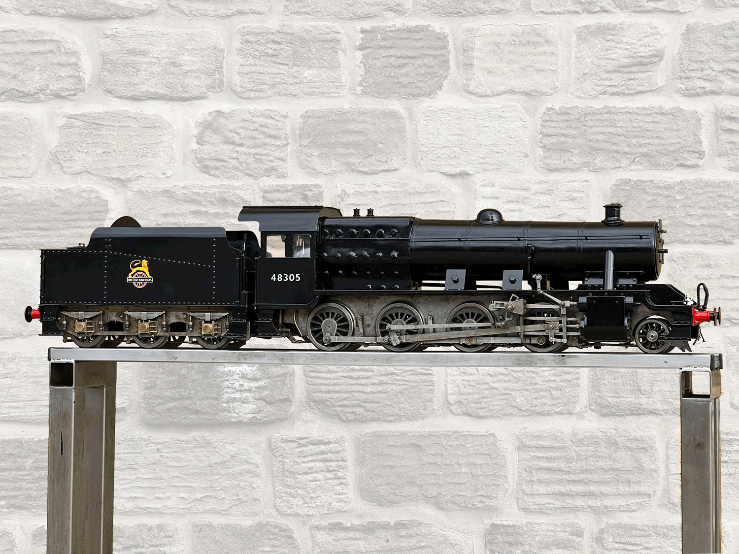 Here we have a rare beast, a 3 1/2" gauge LMS Stanier 8F. A little bit of a project for someone for this winter. We had a customer on this loco as a fully commissioned model ready to play, but when we brought it into the workshop to more thoroughly investigate and work on it, we found that several aspects were missing or not as finished as the overall impression of the loco gave. The safety valves for example have no holes in them and no internals, there's no plumbing at all done yet for the lubricator or any of the water systems. It looks like what's been done is tidy and certainly the paint finish is also neat, implying a bit of care has been taken, but there was a bit too much work left to do in order to get this one over the finish line than we ultimately have time for in our workshops. As a result, the decision was taken to apologise to the customer, and list the model as a project for a much reduced price instead.