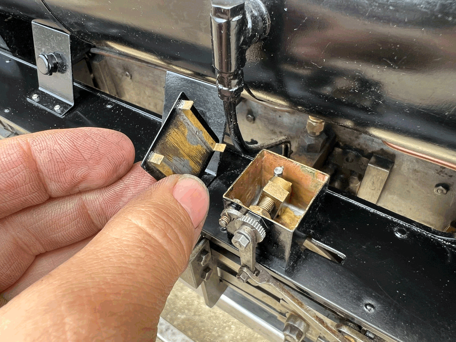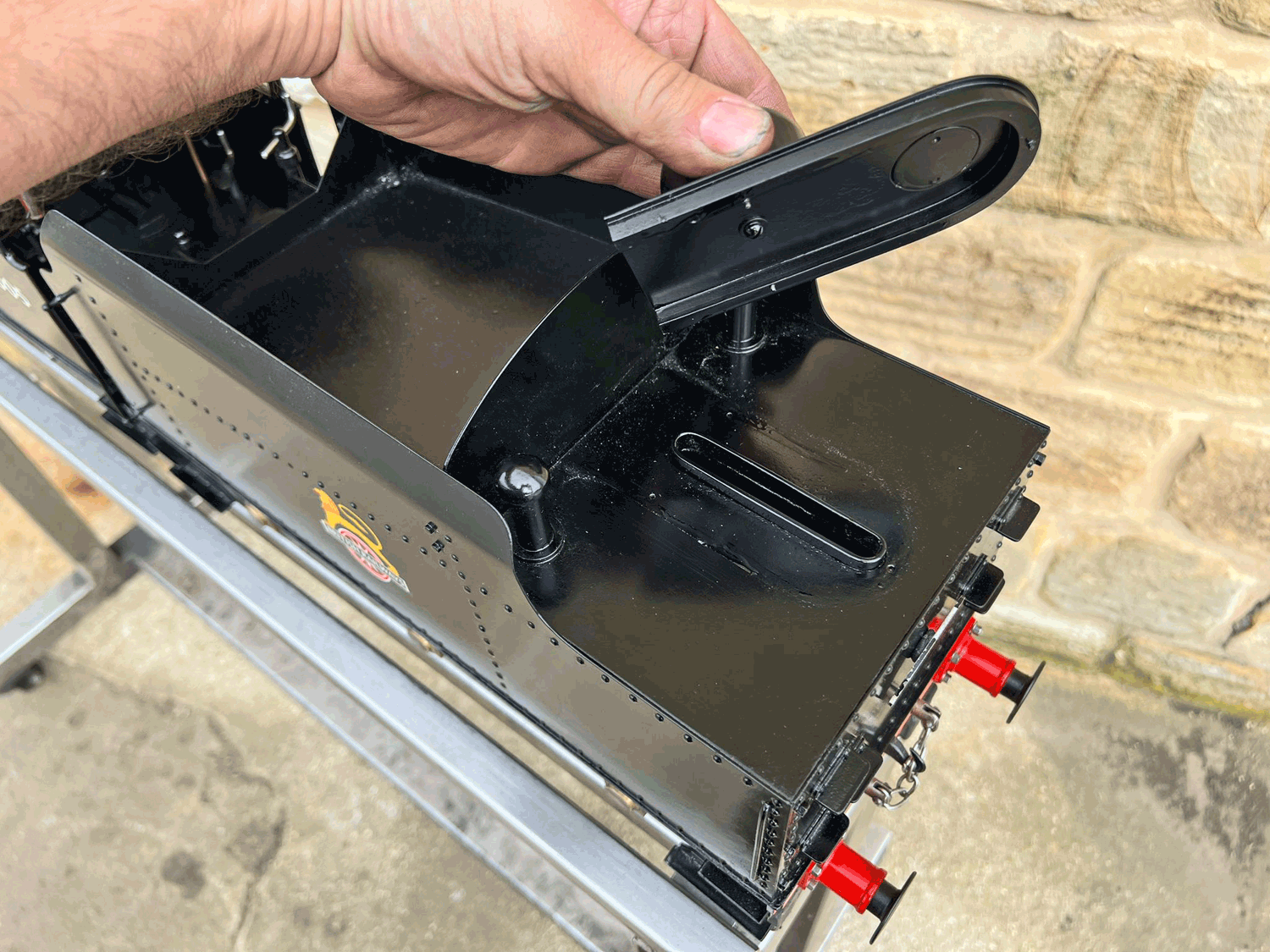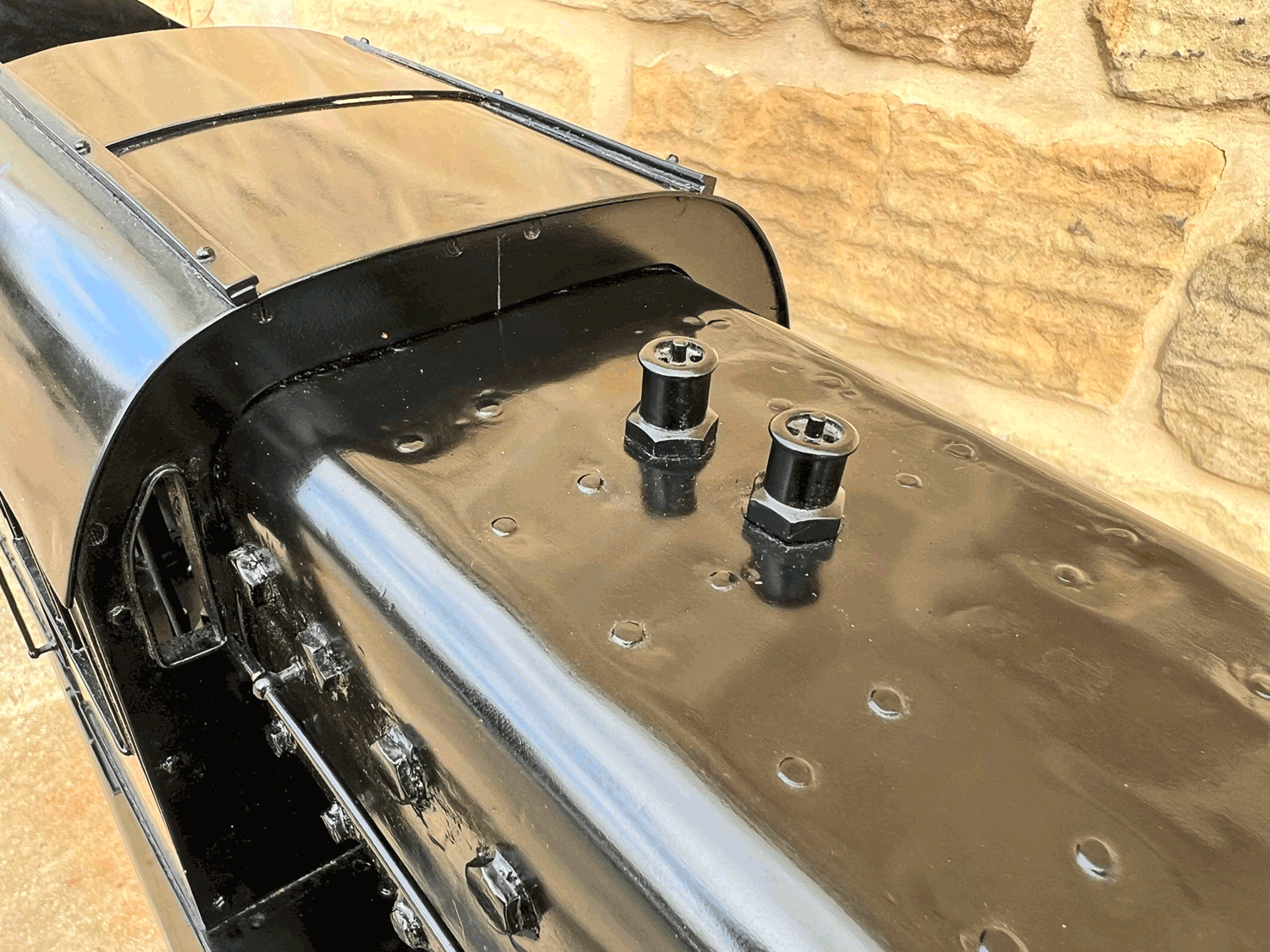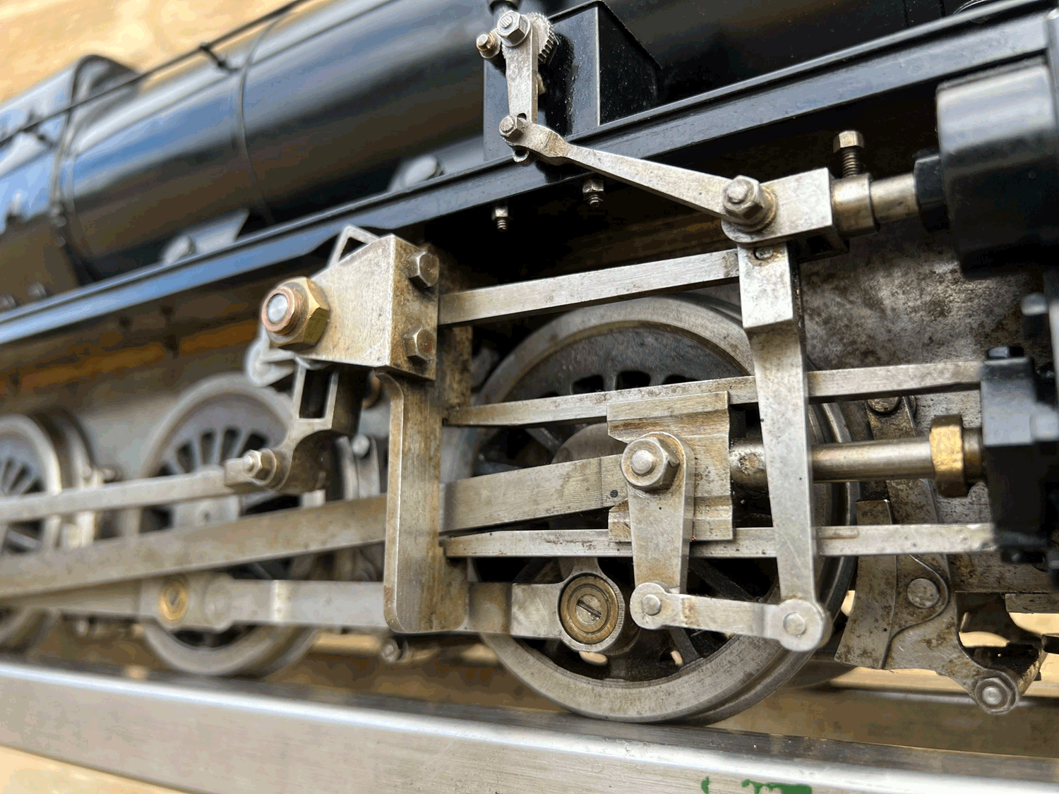 Here we have a rare beast, a 3 1/2" gauge LMS Stanier 8F. A little bit of a project for someone for this winter. We had a customer on this loco as a fully commissioned model ready to play, but when we brought it into the workshop to more thoroughly investigate and work on it, we found that several aspects were missing or not as finished as the overall impression of the loco gave. The safety valves for example have no holes in them and no internals, there's no plumbing at all done yet for the lubricator or any of the water systems. It looks like what's been done is tidy and certainly the paint finish is also neat, implying a bit of care has been taken, but there was a bit too much work left to do in order to get this one over the finish line than we ultimately have time for in our workshops. As a result, the decision was taken to apologise to the customer, and list the model as a project for a much reduced price instead.