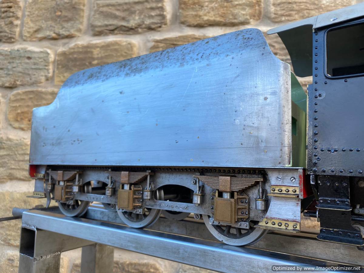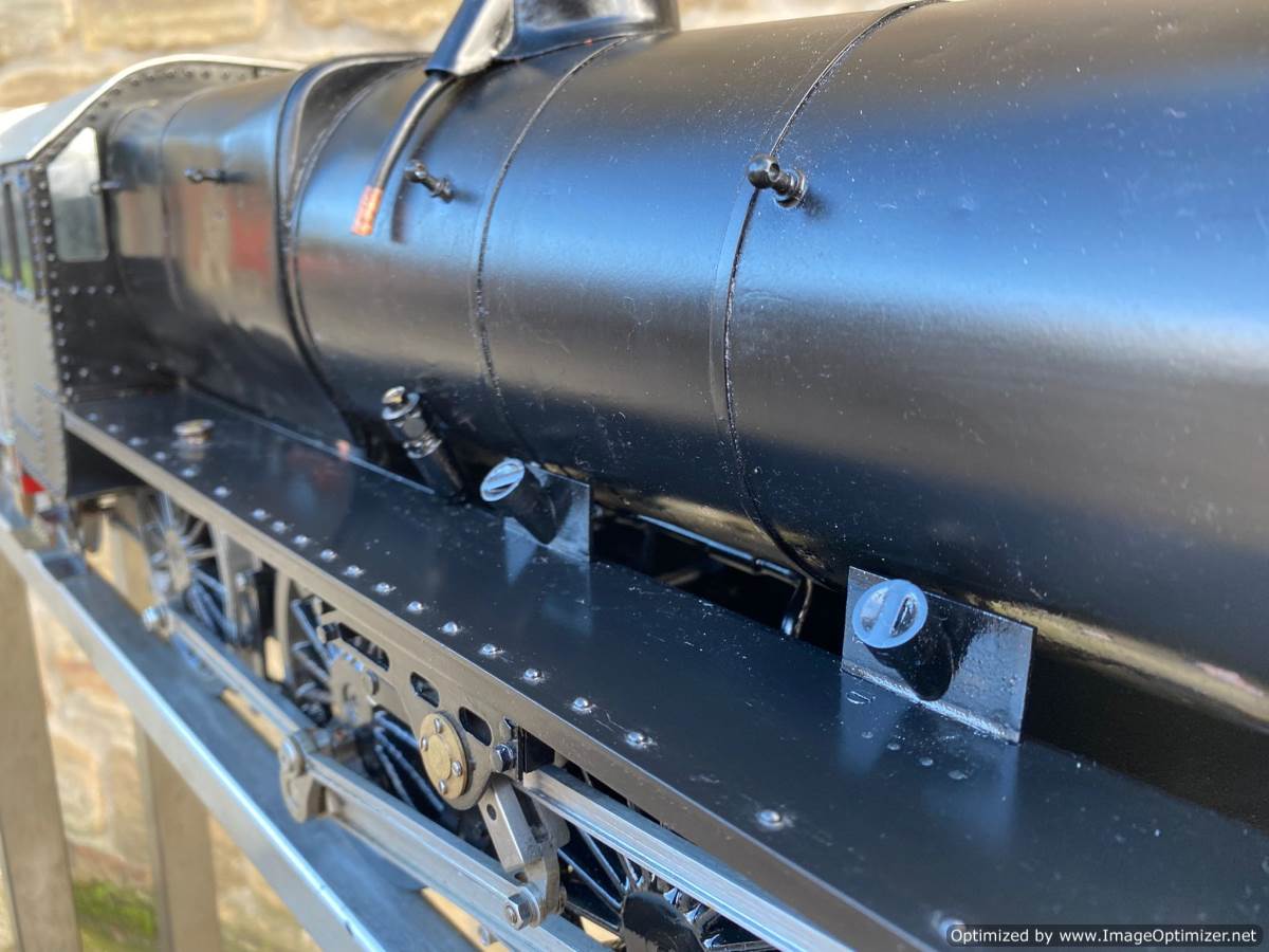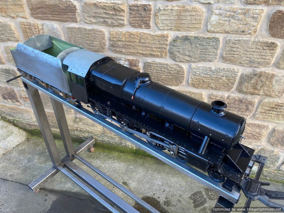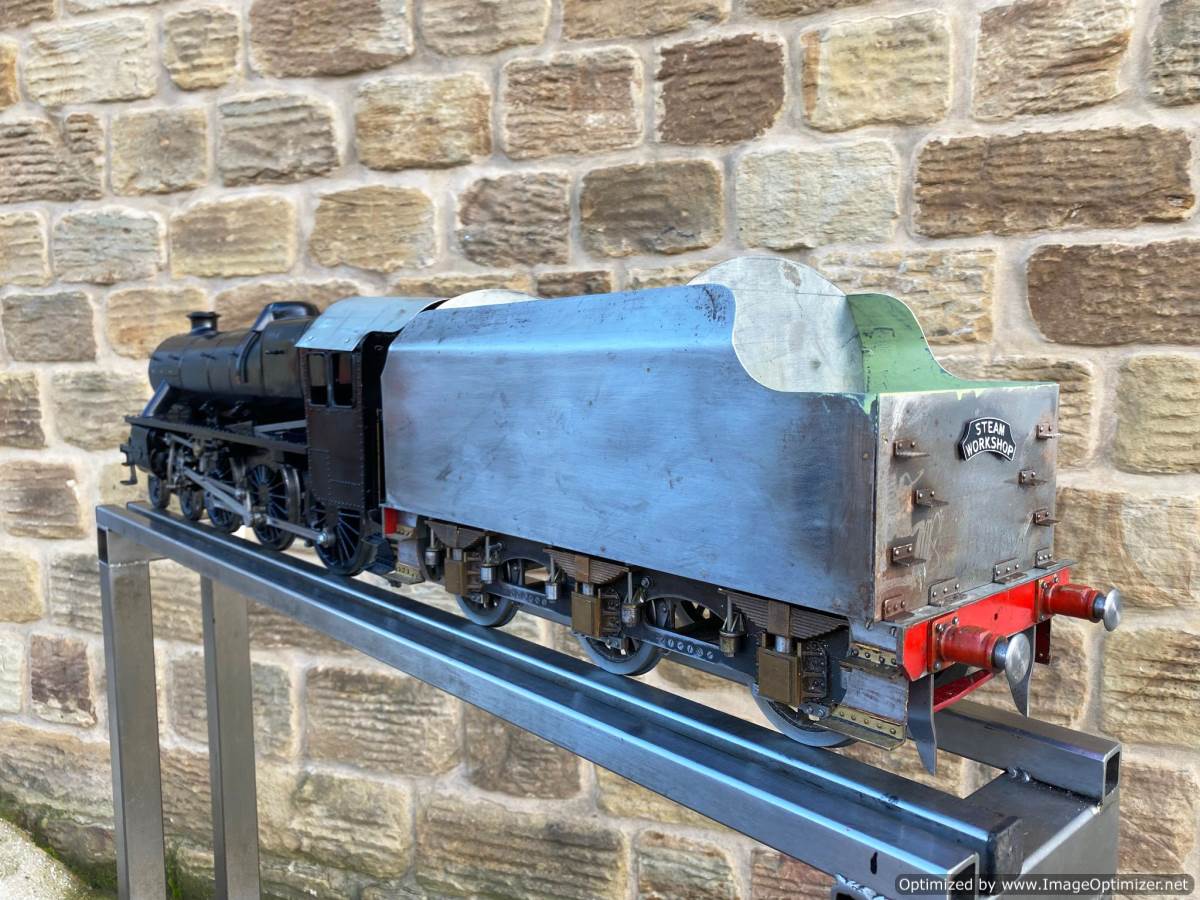 Here we have a very well on the way 3 1/2" gauge LMS Stanier Black 5 to the well respected 'Doris' design by LBSC.  The locomotive is ostensibly complete, and looks to pretty much simply be a fittings and plumbing exercise.  The tender is also well on the way, although the body isn't yet attached to the chassis and the baffles are simply wedged in place for the photographs so you can see the bits that are there.