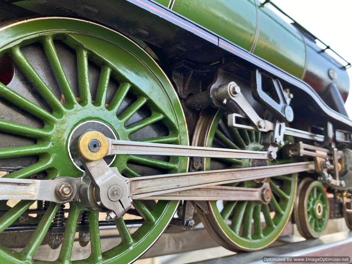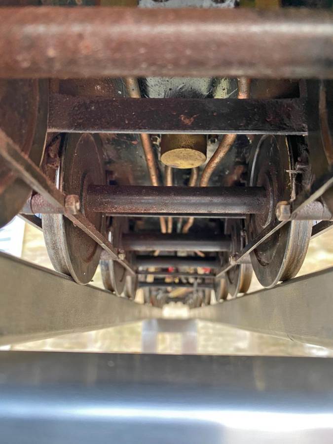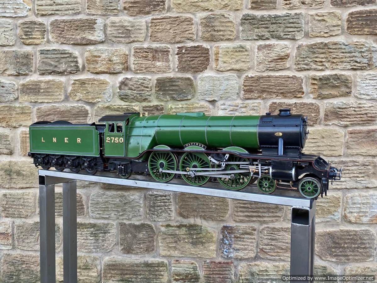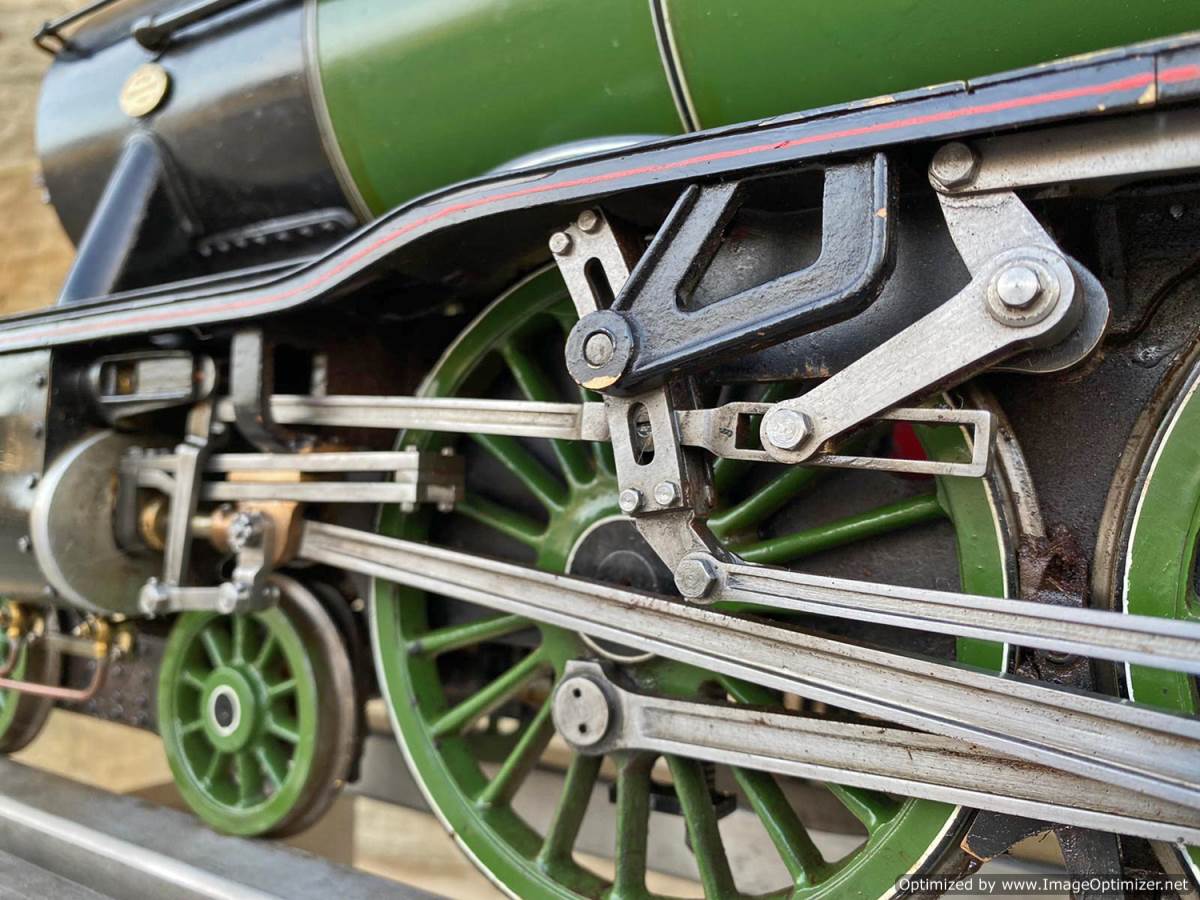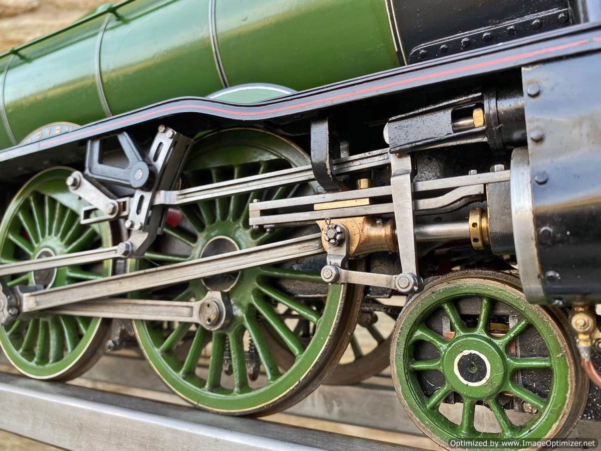 Here we have a rather nice 3 1/2" gauge LNER A3 'Papyrus'. She's a full 3 cylinder machine and made by a skilled and prolific model engineer, also responsible for the 3 1/2" GWR King we have in stock at the moment. The valve gear is crisply machined with only the lightest of wear and tear, and the whole bottom end has the feel about it of a model that will work beautifully.