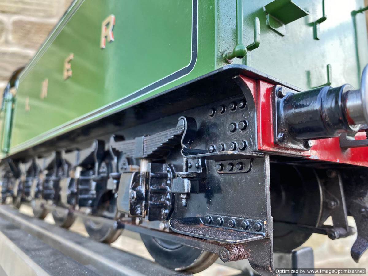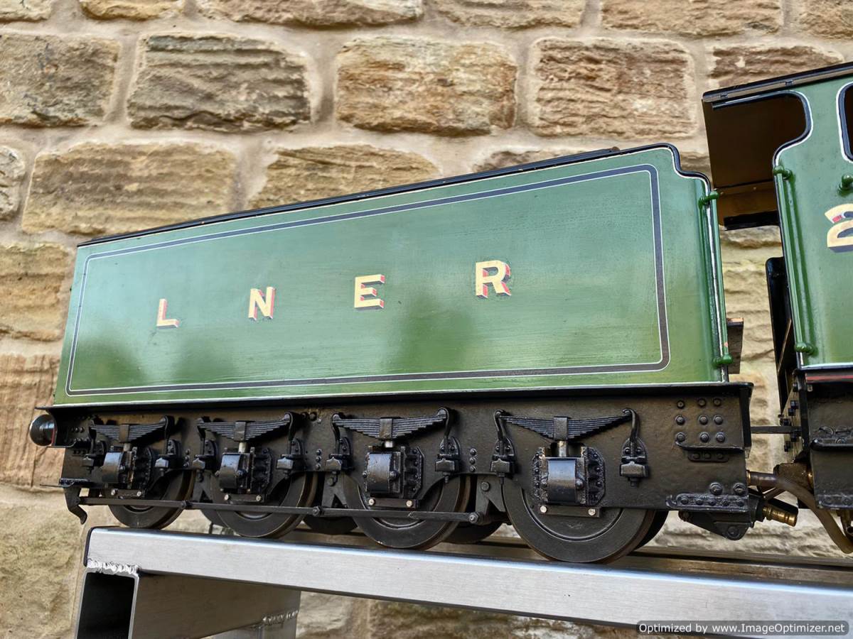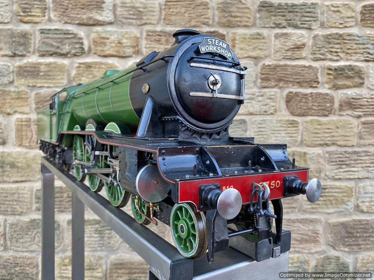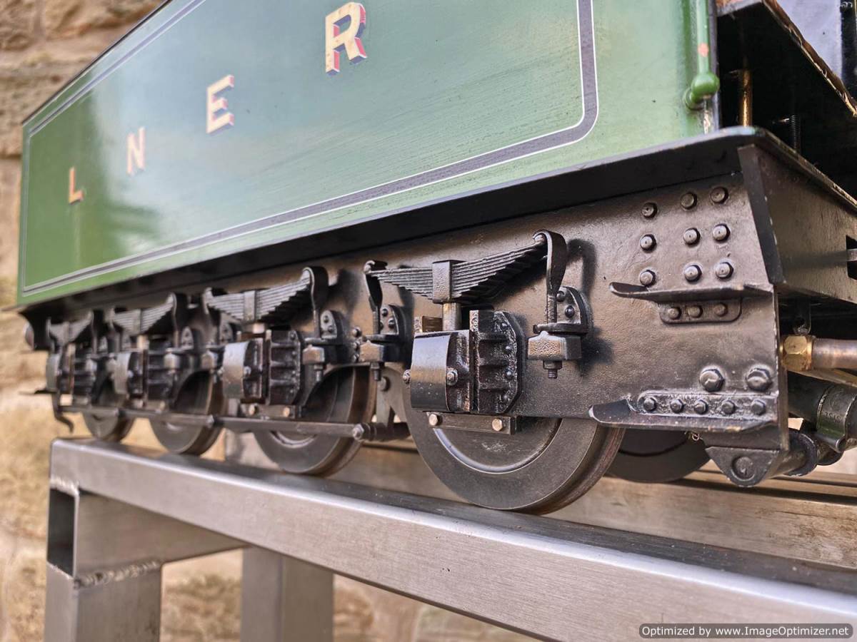 The boiler is silver soldered copper and of course comes fully tested and ready to play. Lubrication is displacement with a reservoir under the footplate floor and a sight feed in the cab. There is an injector fitted as well as a twin ram axle pump squeezed between the frames along with that third cylinder,..... and a hand pump in the tender. This is a really lovely model that runs as well as it looks. If you're after a 3 1/2" A3, then you won't find many nicer ones than this.