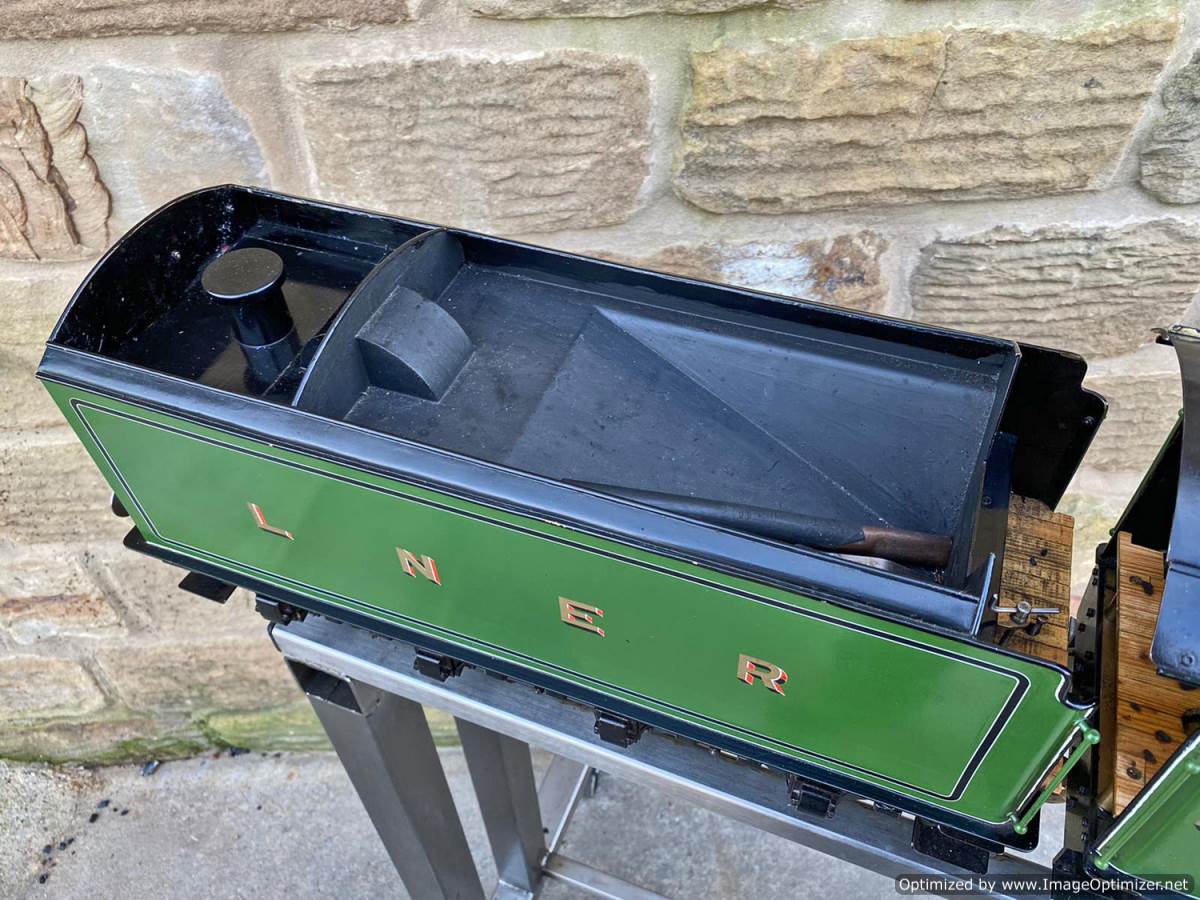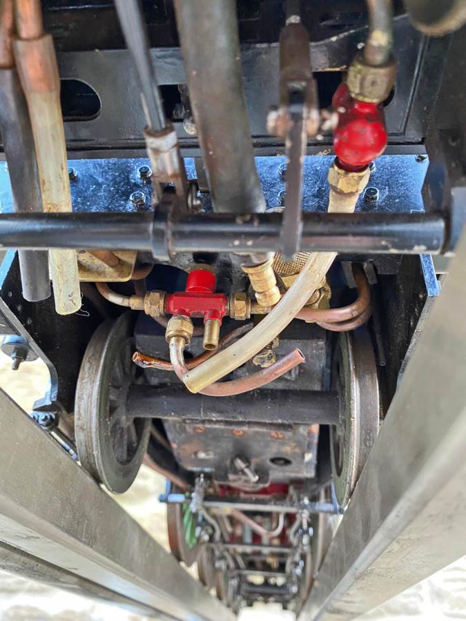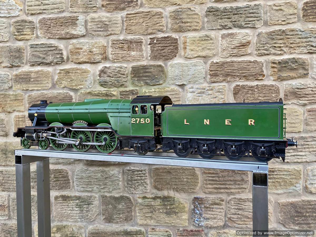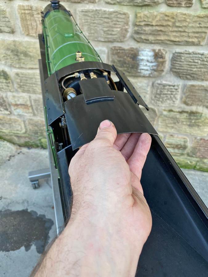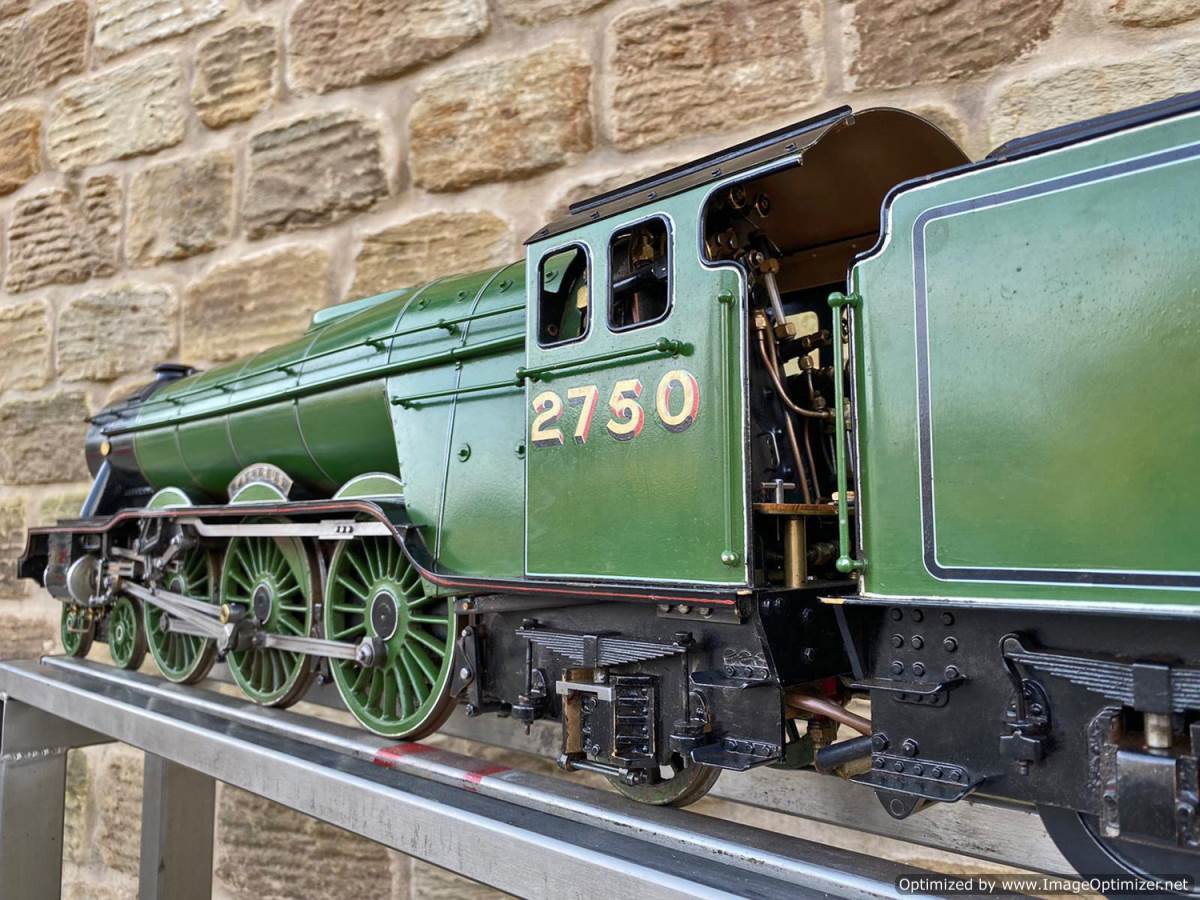 The boiler is silver soldered copper and of course comes fully tested and ready to play. Lubrication is displacement with a reservoir under the footplate floor and a sight feed in the cab. There is an injector fitted as well as a twin ram axle pump squeezed between the frames along with that third cylinder,..... and a hand pump in the tender. This is a really lovely model that runs as well as it looks. If you're after a 3 1/2" A3, then you won't find many nicer ones than this.
