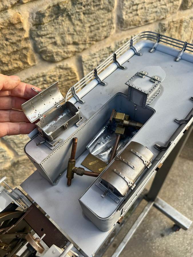Here we have a rather beautiful 3 1/2" gauge LNWR 'Jeanie Deans' 3 cylinder Webb compound. This is only the second example that we've seen come through us here at Steam Workshop over the years, so certainly not a commonly modeled prototype. All the hard work is done, and the machining is crisp and tidy. Mechanically she's basically at the air running stage and missing very little. The boiler is the usual silver soldered copper one, and looks competently made and well formed. The drawings are available through Blackgates Engineering, and the vast majority of the work to complete seems to be plumbing and fittings.