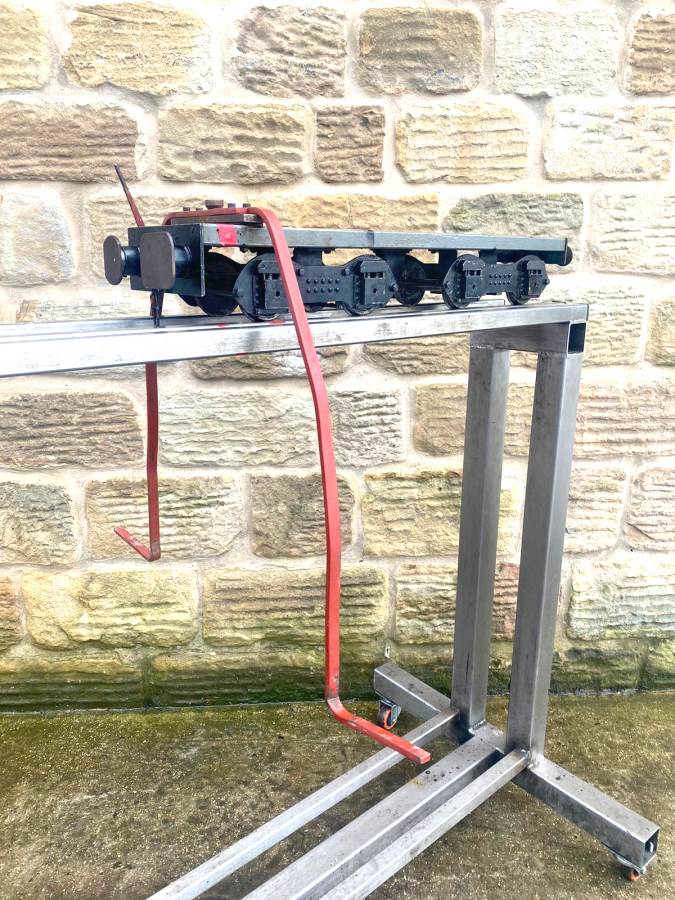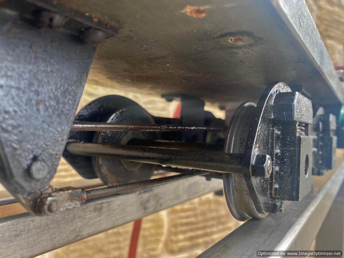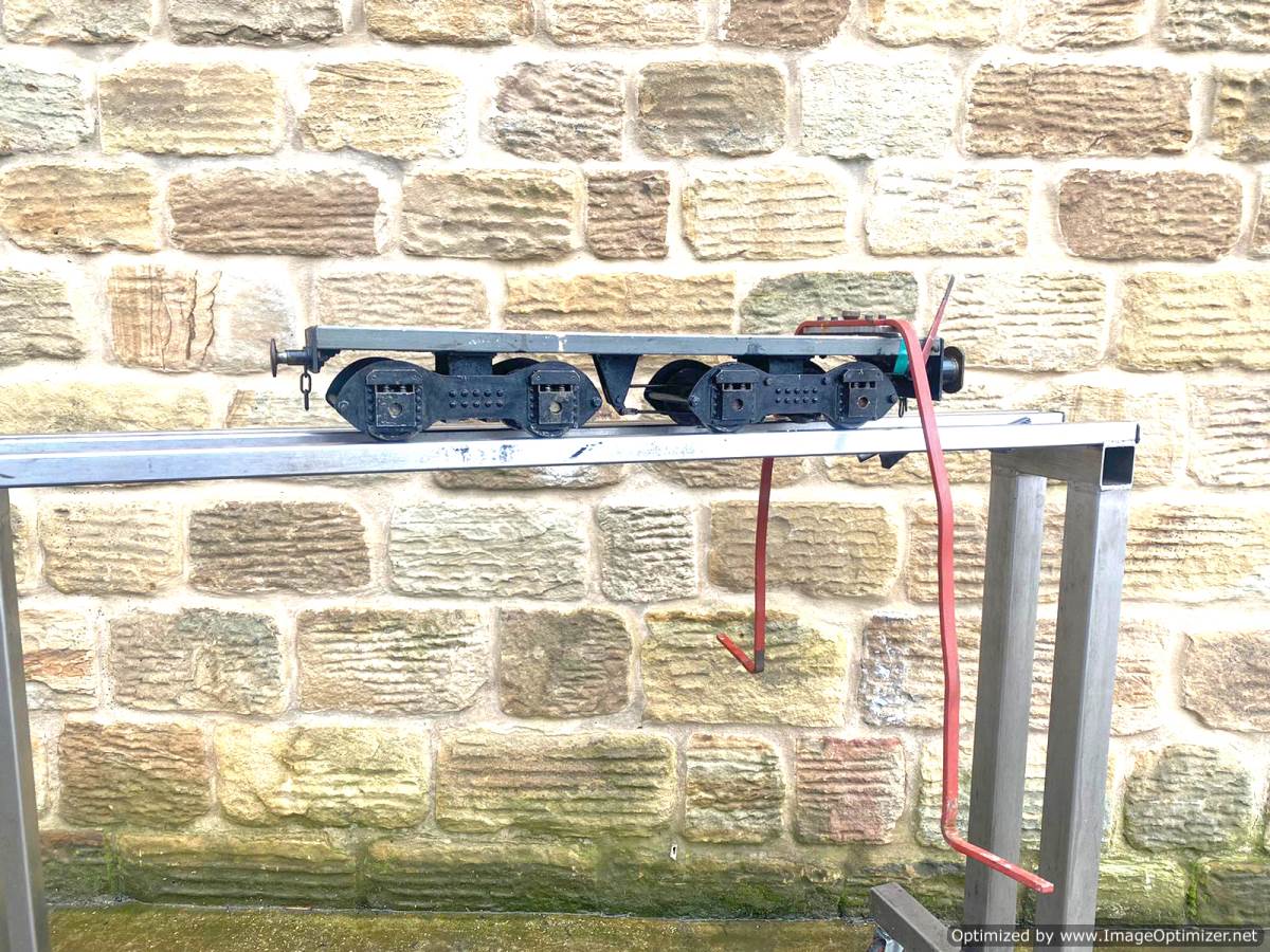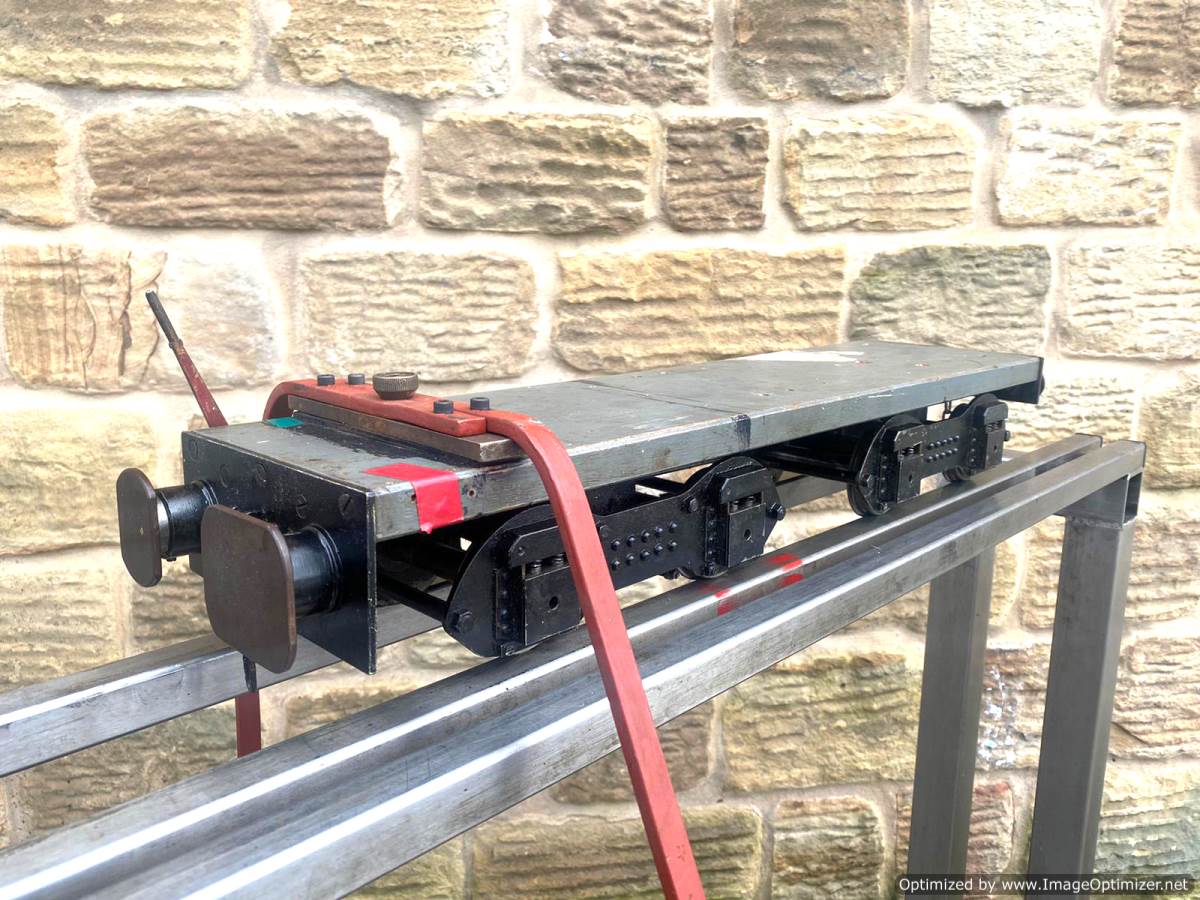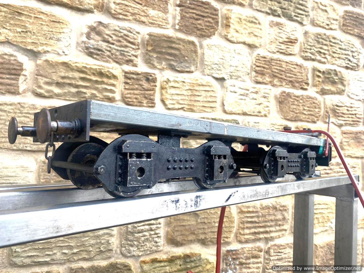 Here we have a pretty tidy 3 1/2" gauge raised track driving truck with both brakes and bogies. There are grease nipples that appear to feed roller bearings too. Have a good look at the photos to hopefully give you the idea.