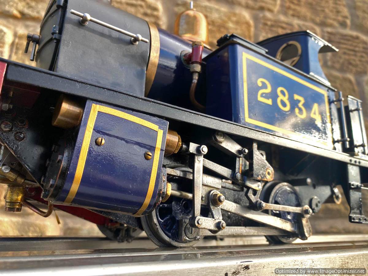 Here we have a well presented 3 1/2" gauge LBCS 'Tich' in the large boiler form. This is the Walschearts valve gear version as well, and so runs really nicely. The boiler is copper and silver soldered and comes fully tested with certificates so she's ready to play. Mechanically the valve gear and bushes are pretty good, there's nothing significant to worry about beyond the usual mild wear and tear, so she's certainly good to go for a good while yet!