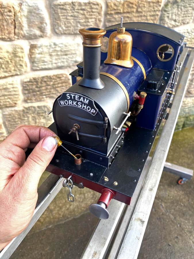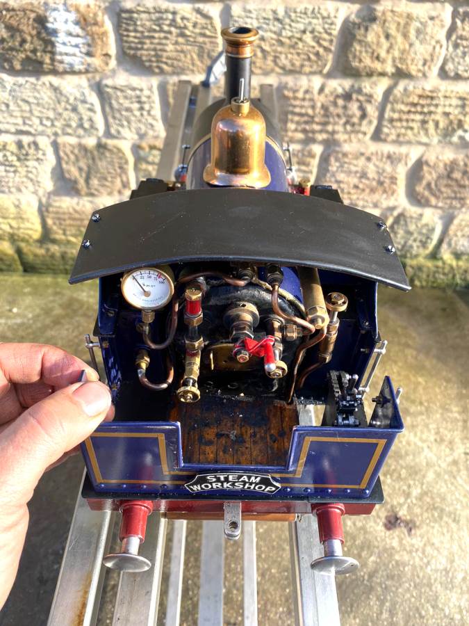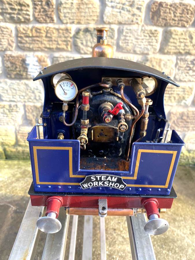 There is an axle pump fitted with bypass valve on the footplate, as well as the hand pump tucked in the side tank. Lubrication is mechanical and hidden under the front running boards. Essentially this is a tidy, well executed and ready to play example of a very popular design, and certainly a superb entry point for the live steam hobby. Complete with a sturdy carrying case as per the photos.