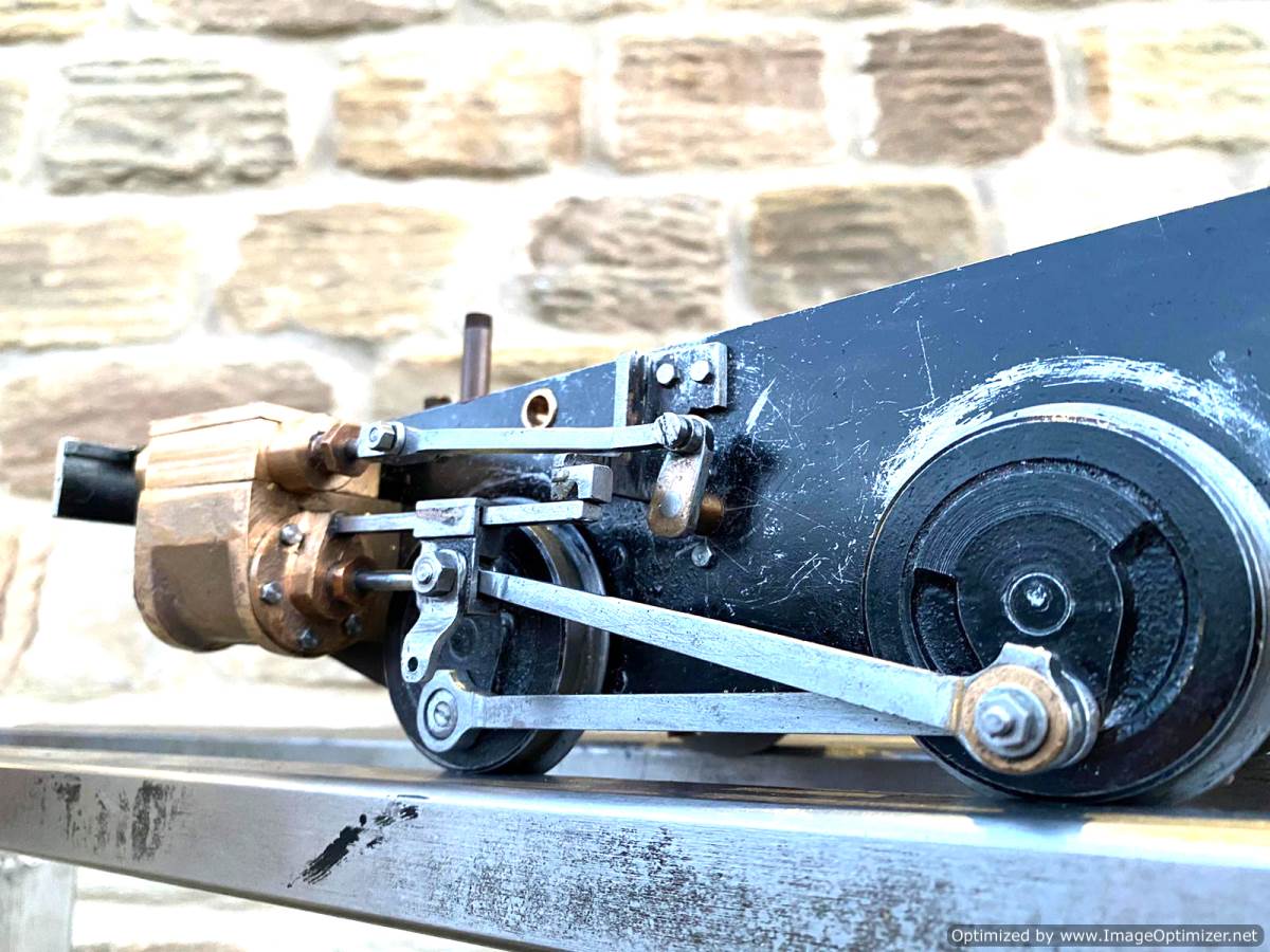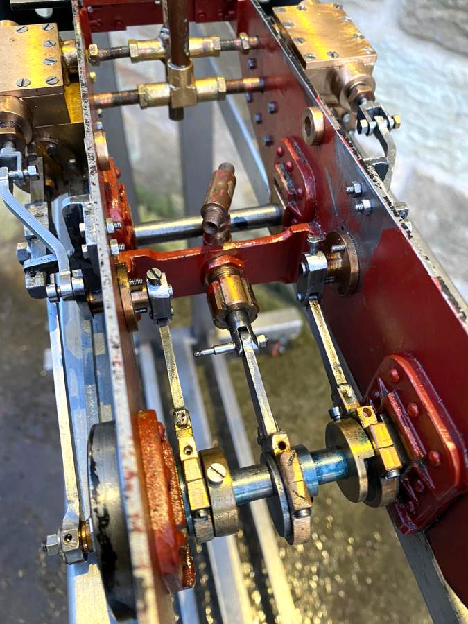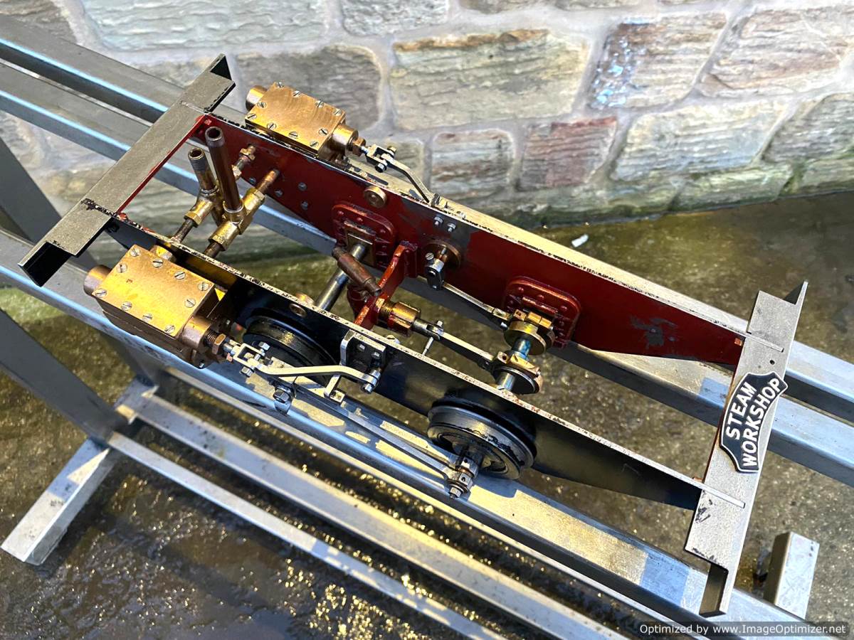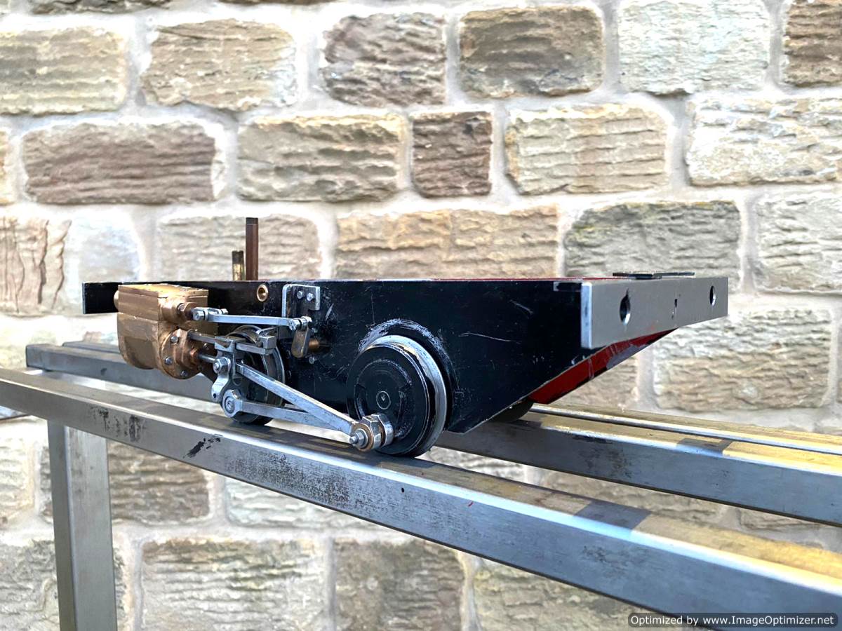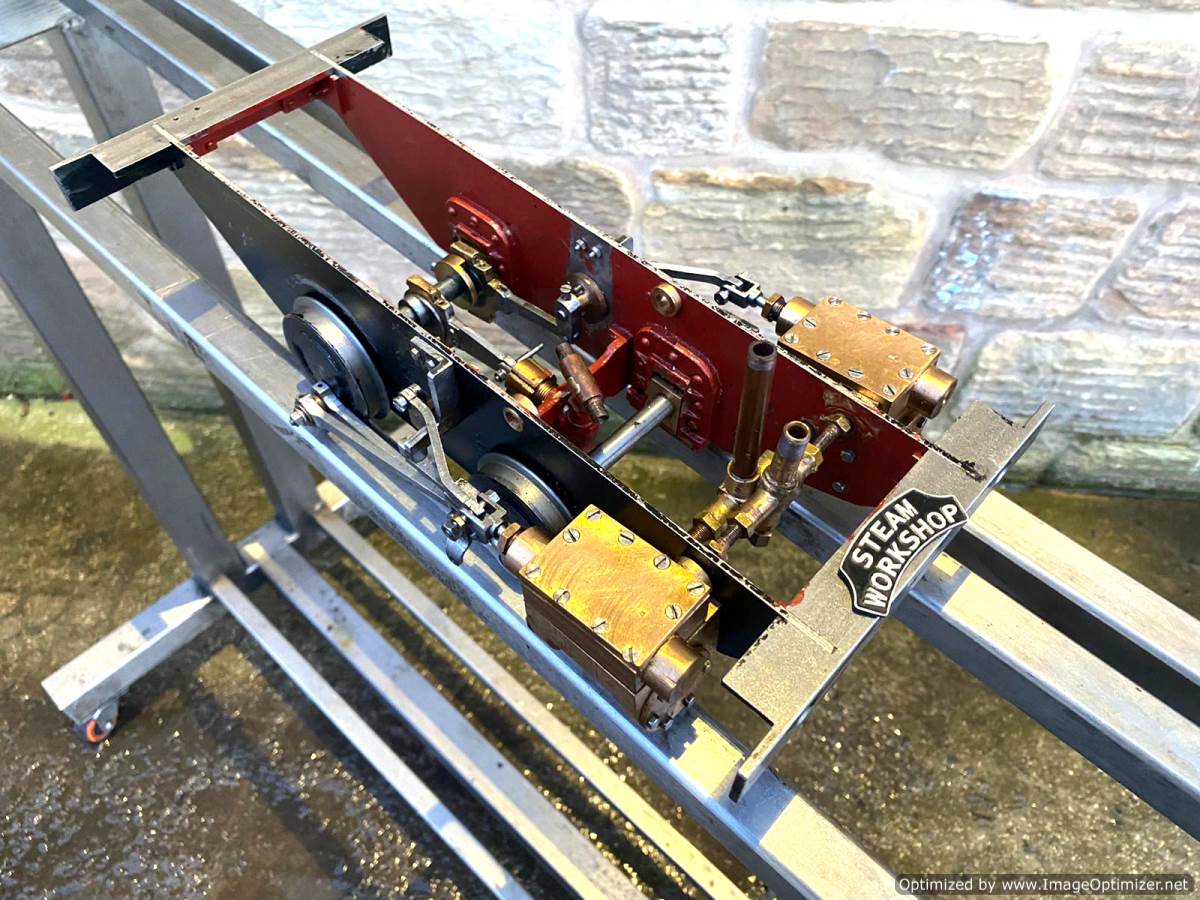 Here we have a nicely executed 3 1/2" gauge LBSC Tich chassis, finished to the air running stage. This example is the slip eccentric version with the valve gear already set on the eccentric pins on the inside. It's the simplest of the Tich chassis/valve gear variants and a very easy valve gear to set up and optimise well.
