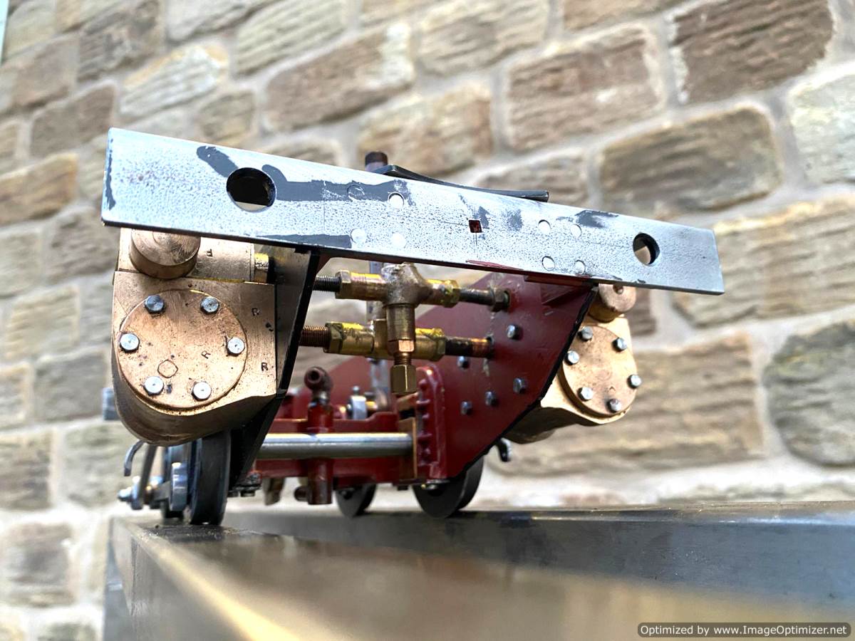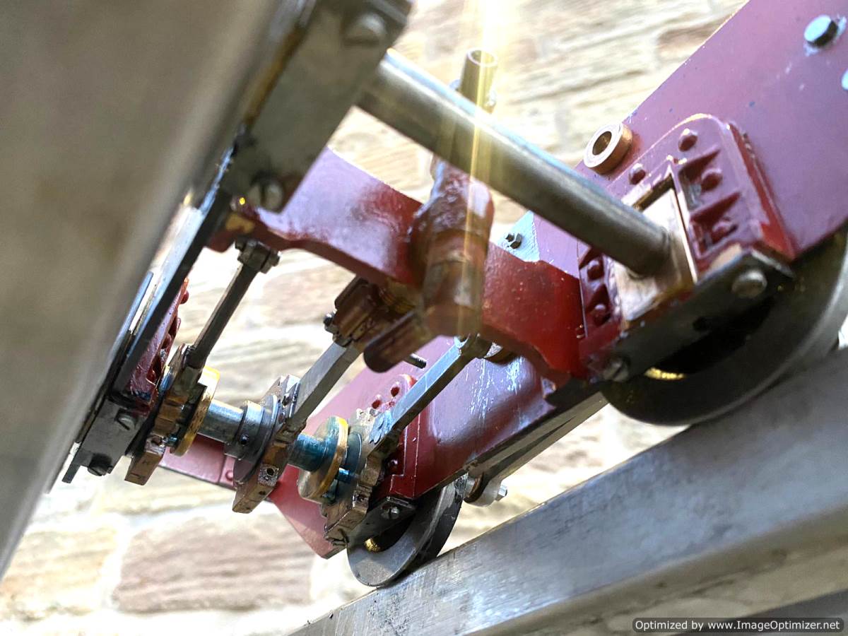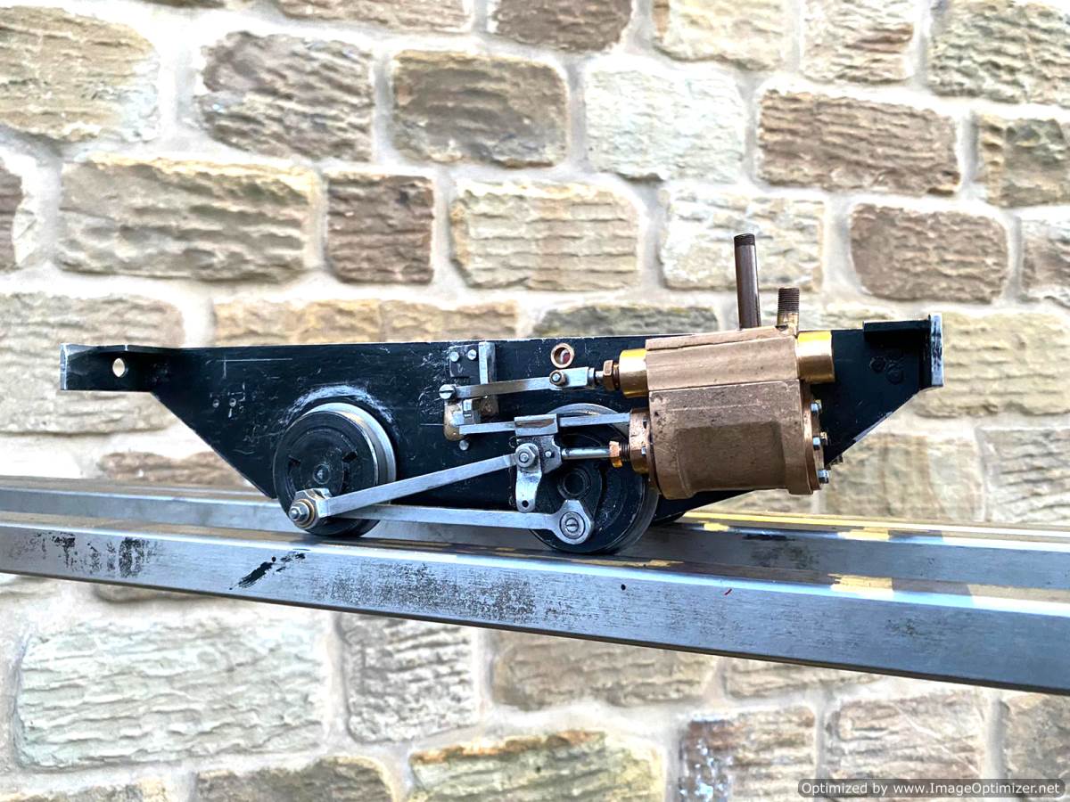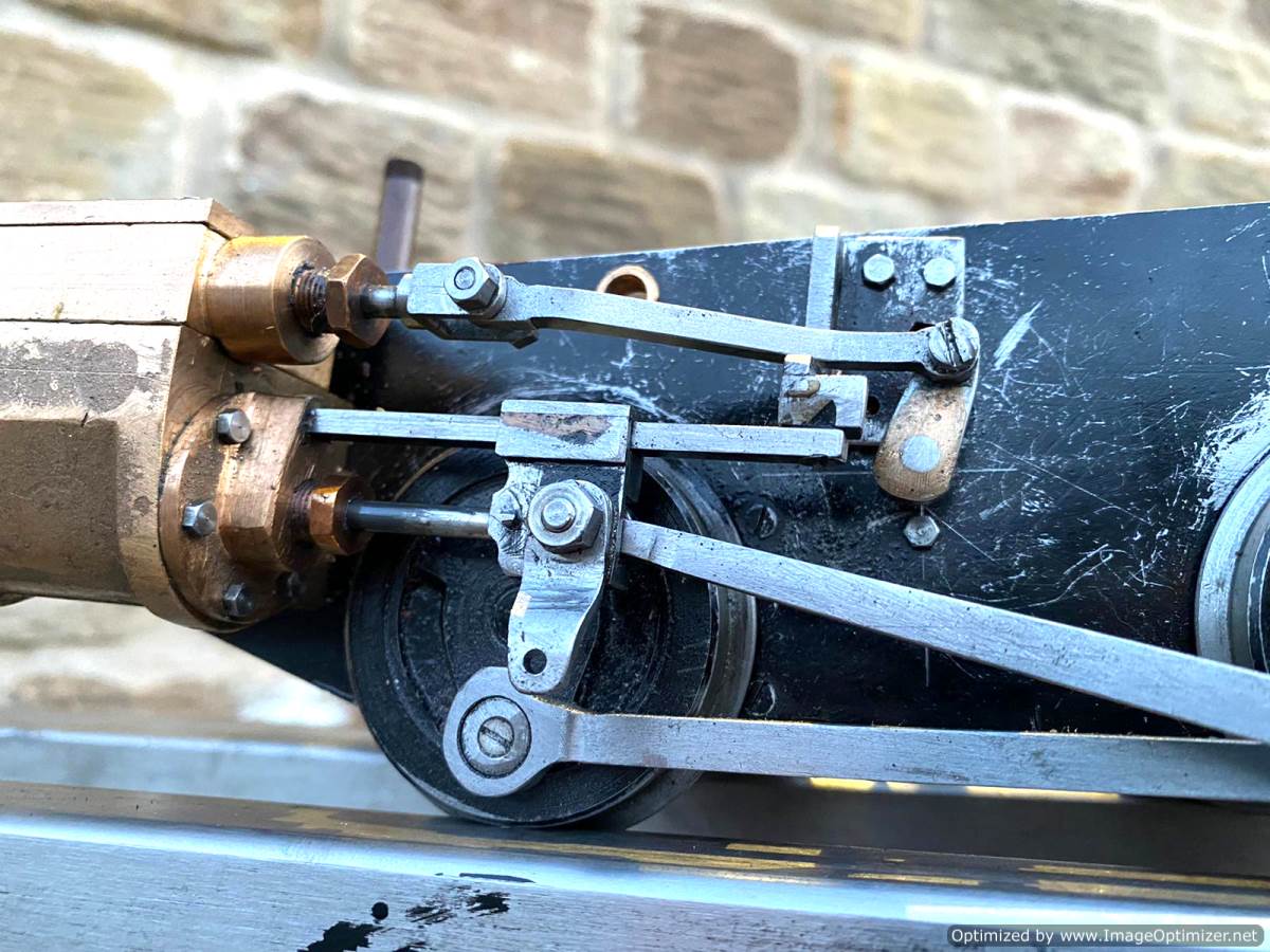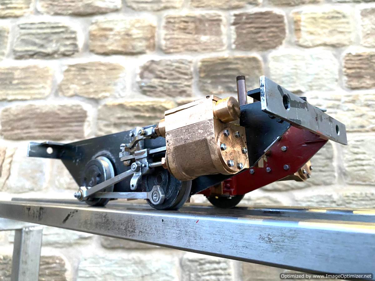 Here we have a nicely executed 3 1/2" gauge LBSC Tich chassis, finished to the air running stage. This example is the slip eccentric version with the valve gear already set on the eccentric pins on the inside. It's the simplest of the Tich chassis/valve gear variants and a very easy valve gear to set up and optimise well.
