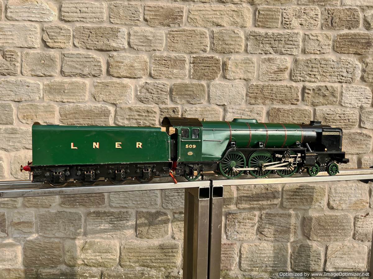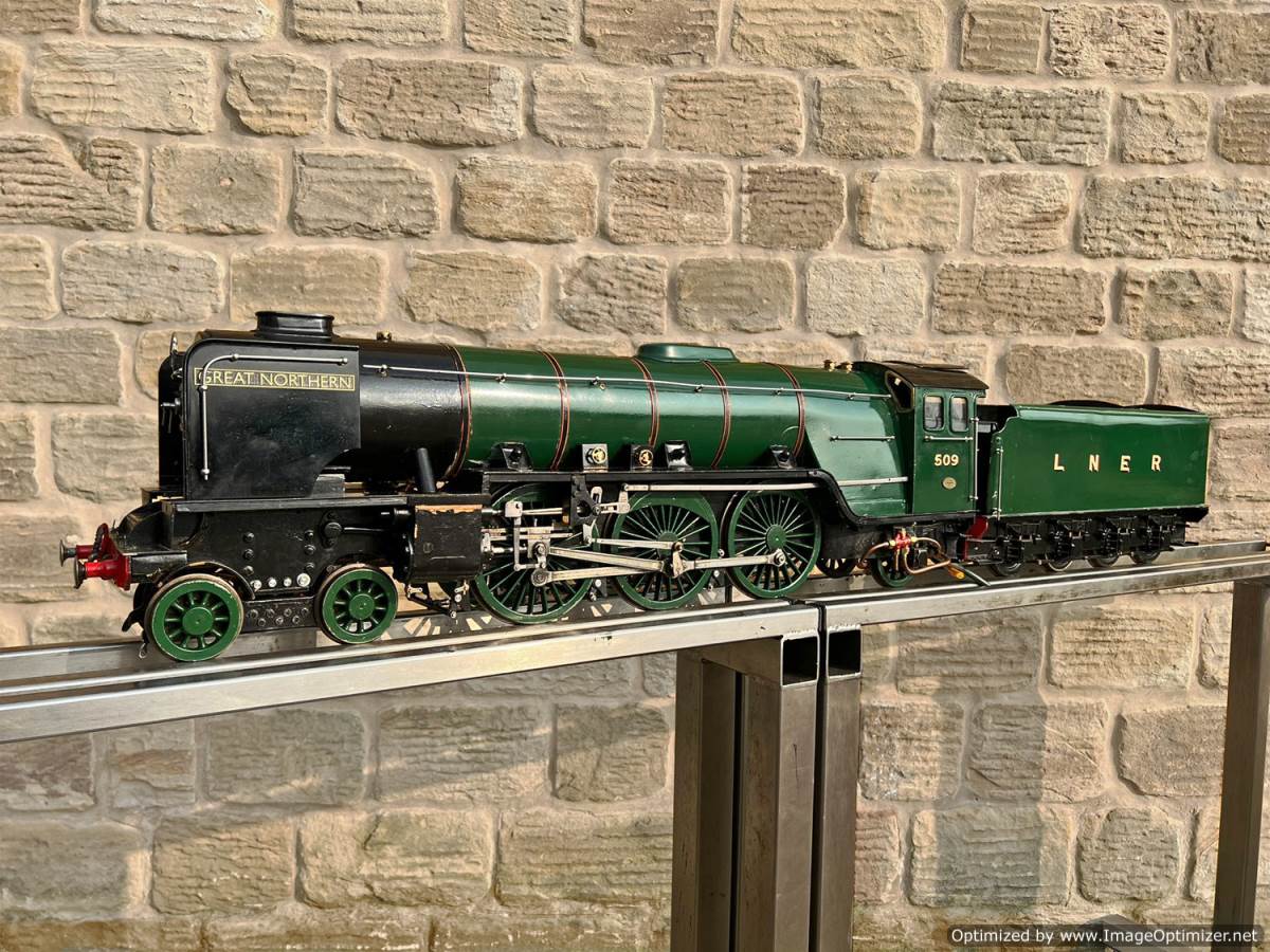 Here we have a tidy and ready to play 3 1/2" gauge LBSC Heilan Lassie.  As the knowledgeable among you will know, this is essentially a model of Thompson's 1945 rebuild of Gresleys original A1 'Great Northern'.  Although Thompson continued to rebuild and indeed build other pacific locos to this general design, Great Northern was the first and one off loco, given the classification of A1/1.