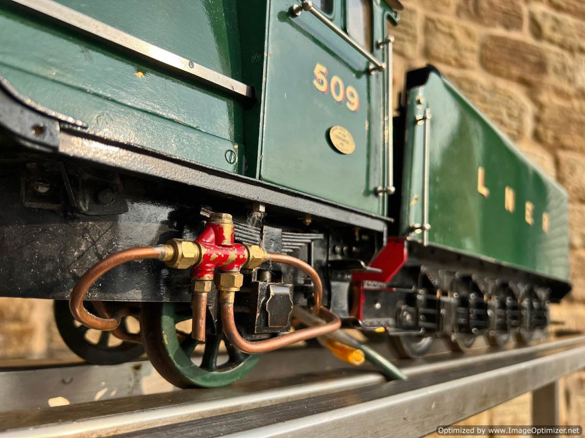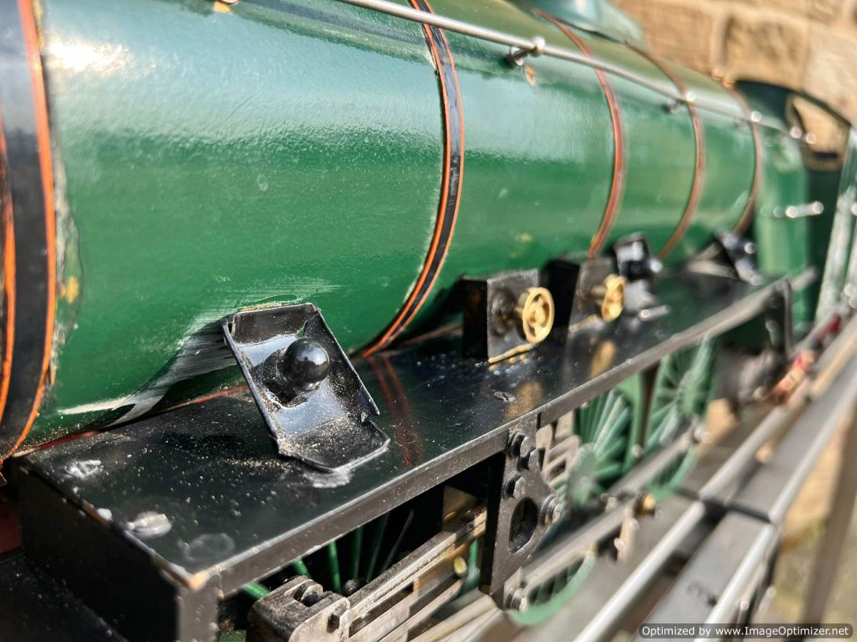 She has an injector, an axle pump with footplate mounted bypass valve and of course the hand pump in the tender for water.  Lubrication is by a decent sized mechanical job under the front running board.  The boiler is the usual silver soldered copper one and comes freshly tested and ready to play.