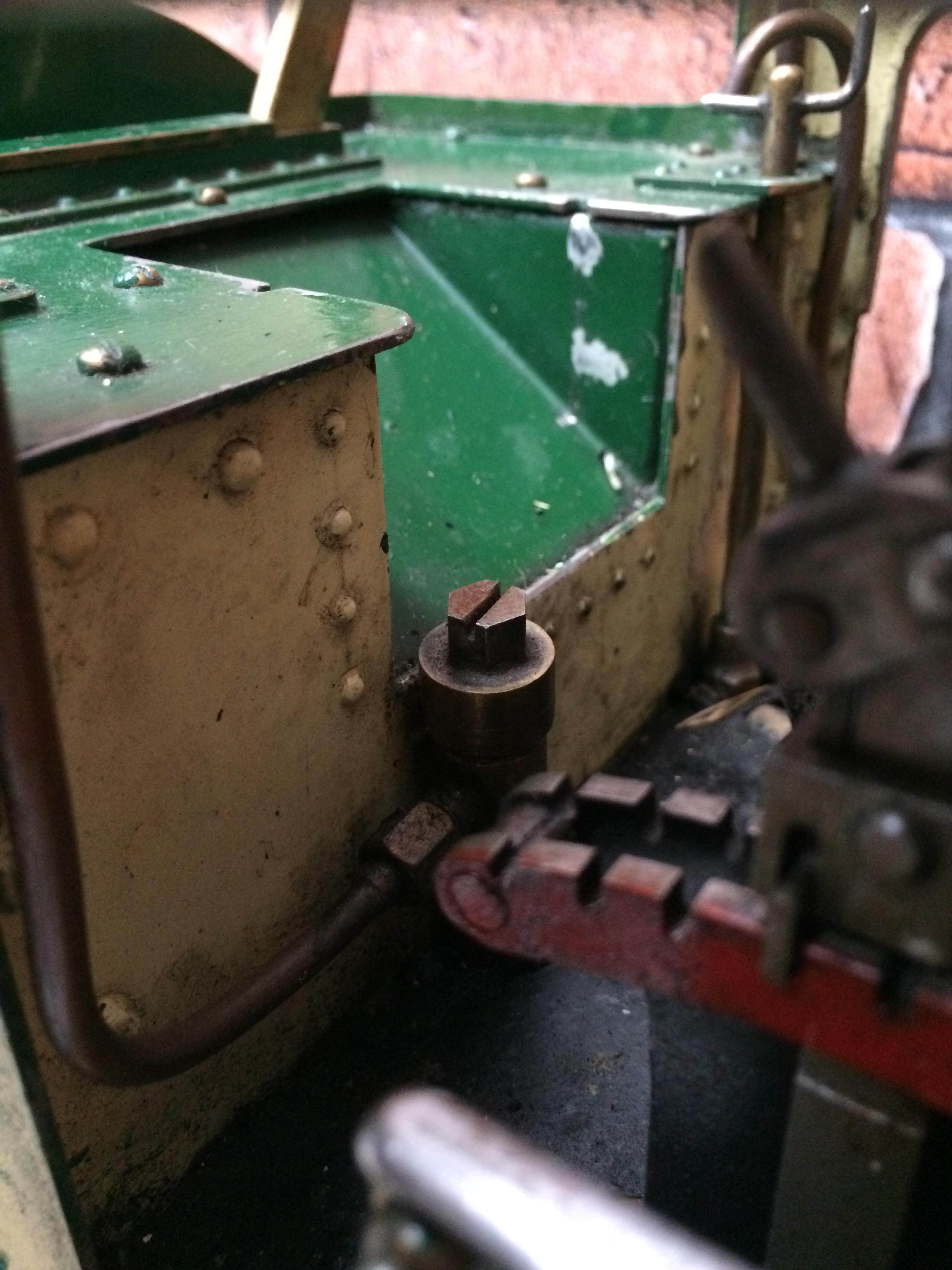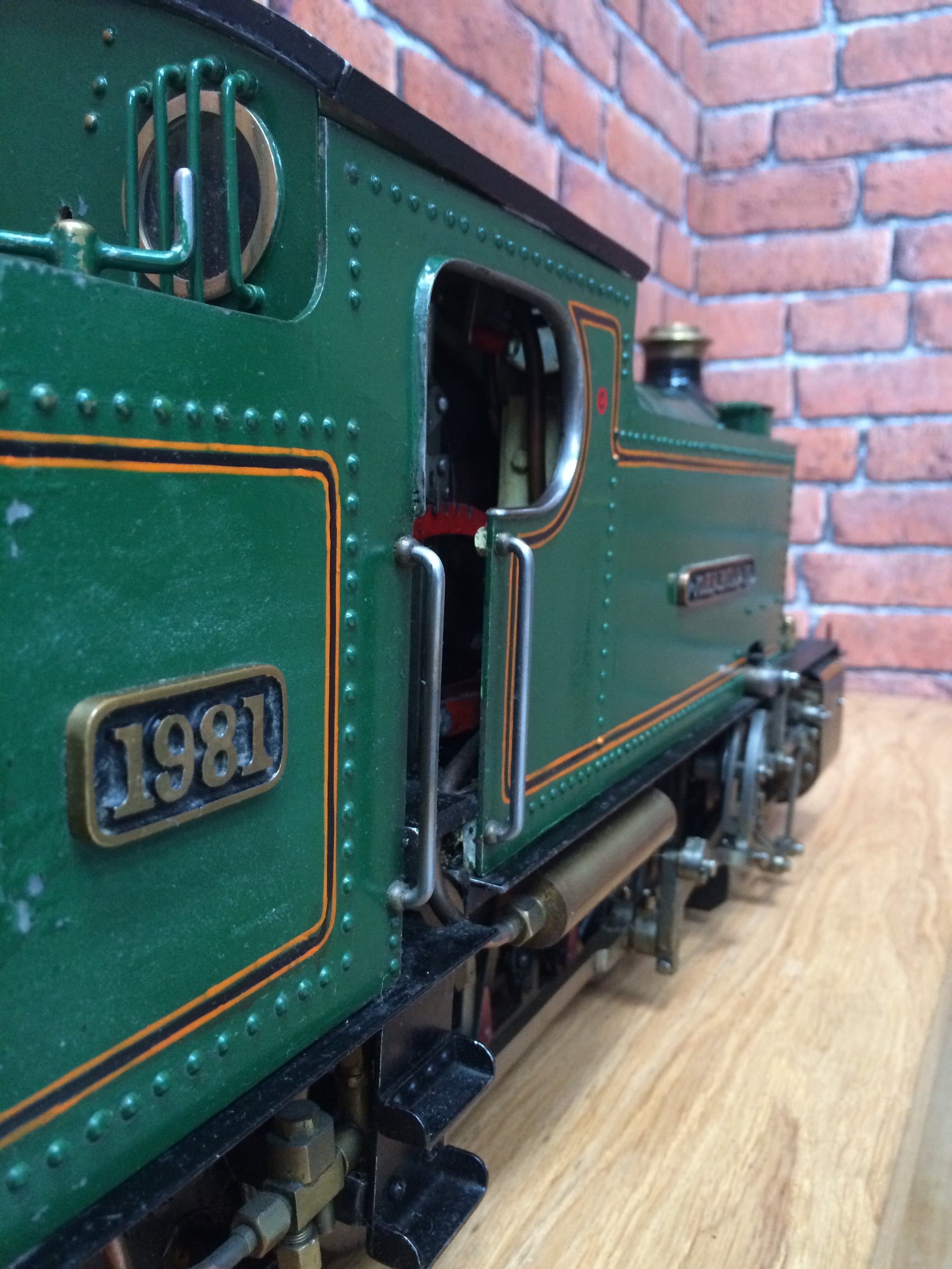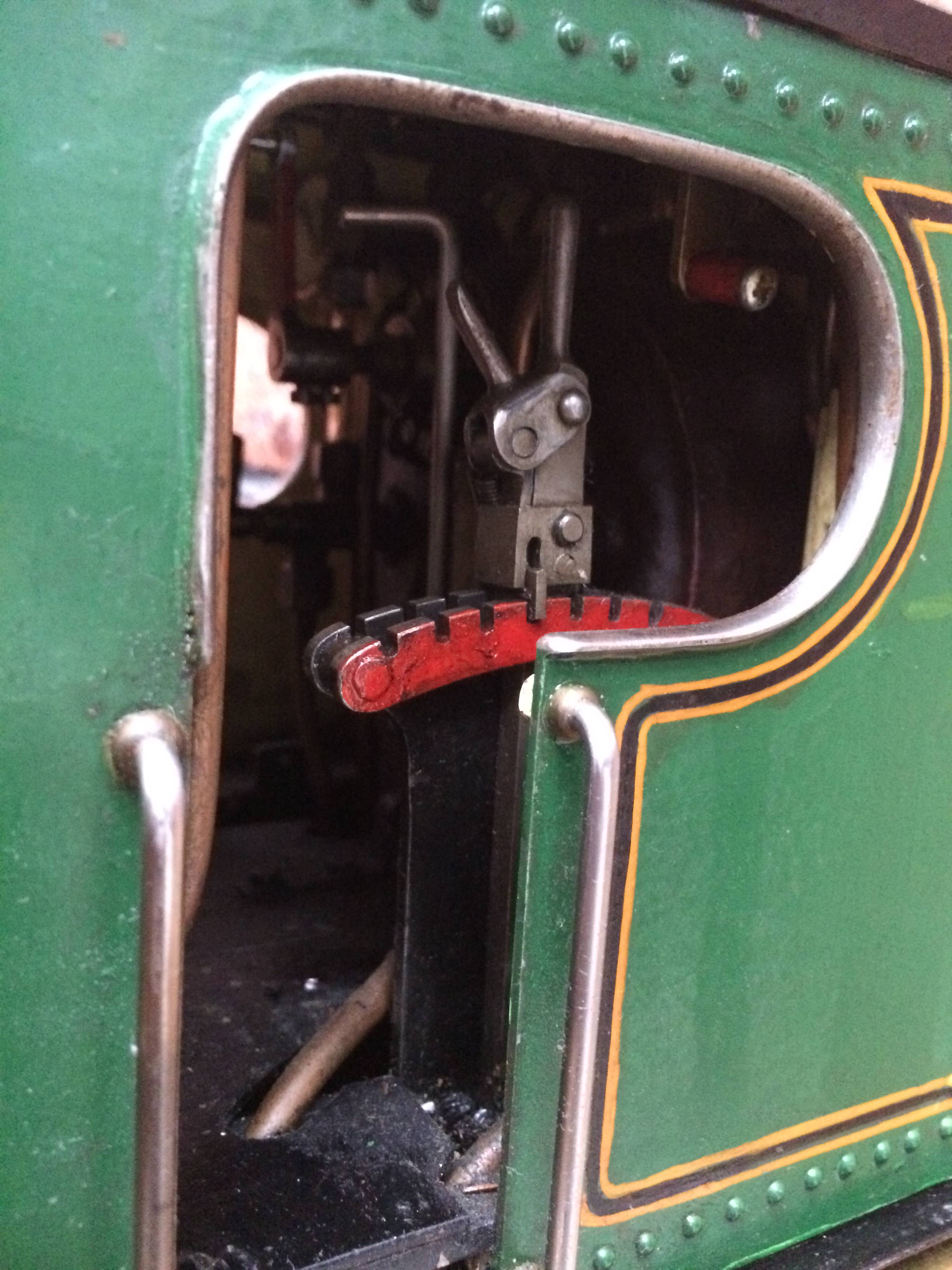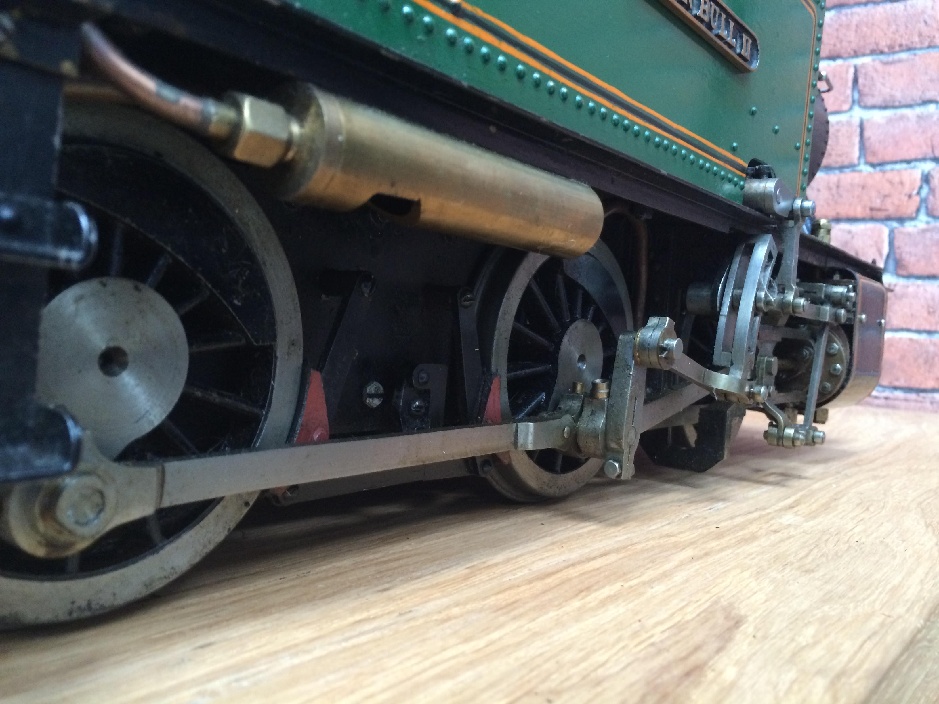 It's solidly constructed copper boiler has an injector fitted, as well as an axle pump and bypass valve and a hand pump nicely fitted in the rear tank, which is of course balanced through to the side tanks for extra water capacity. There is a displacement lubricator resevoir on/under the footplate, and the rare appearance of steam operated drain cocks on a 3 1/2" model.