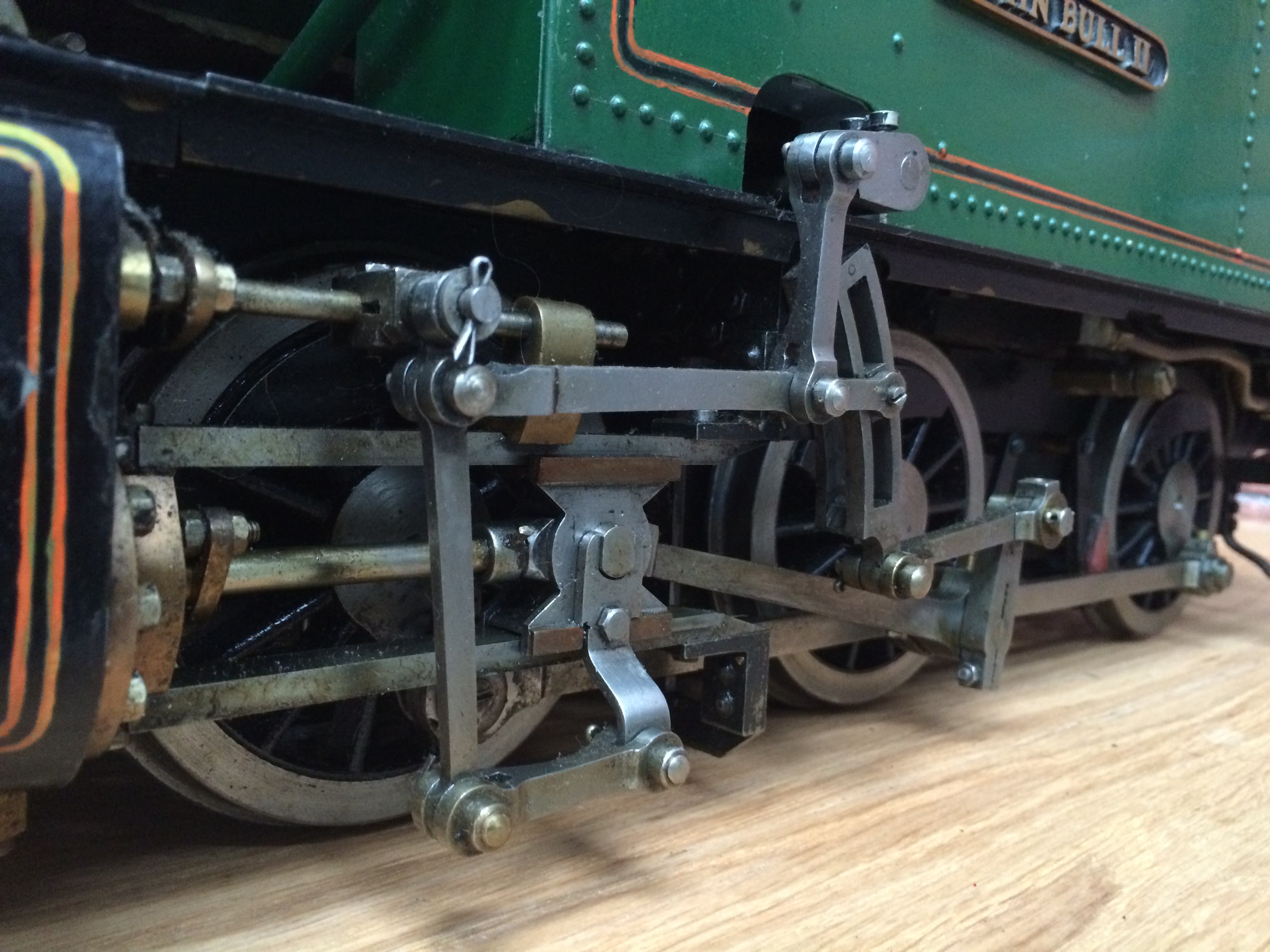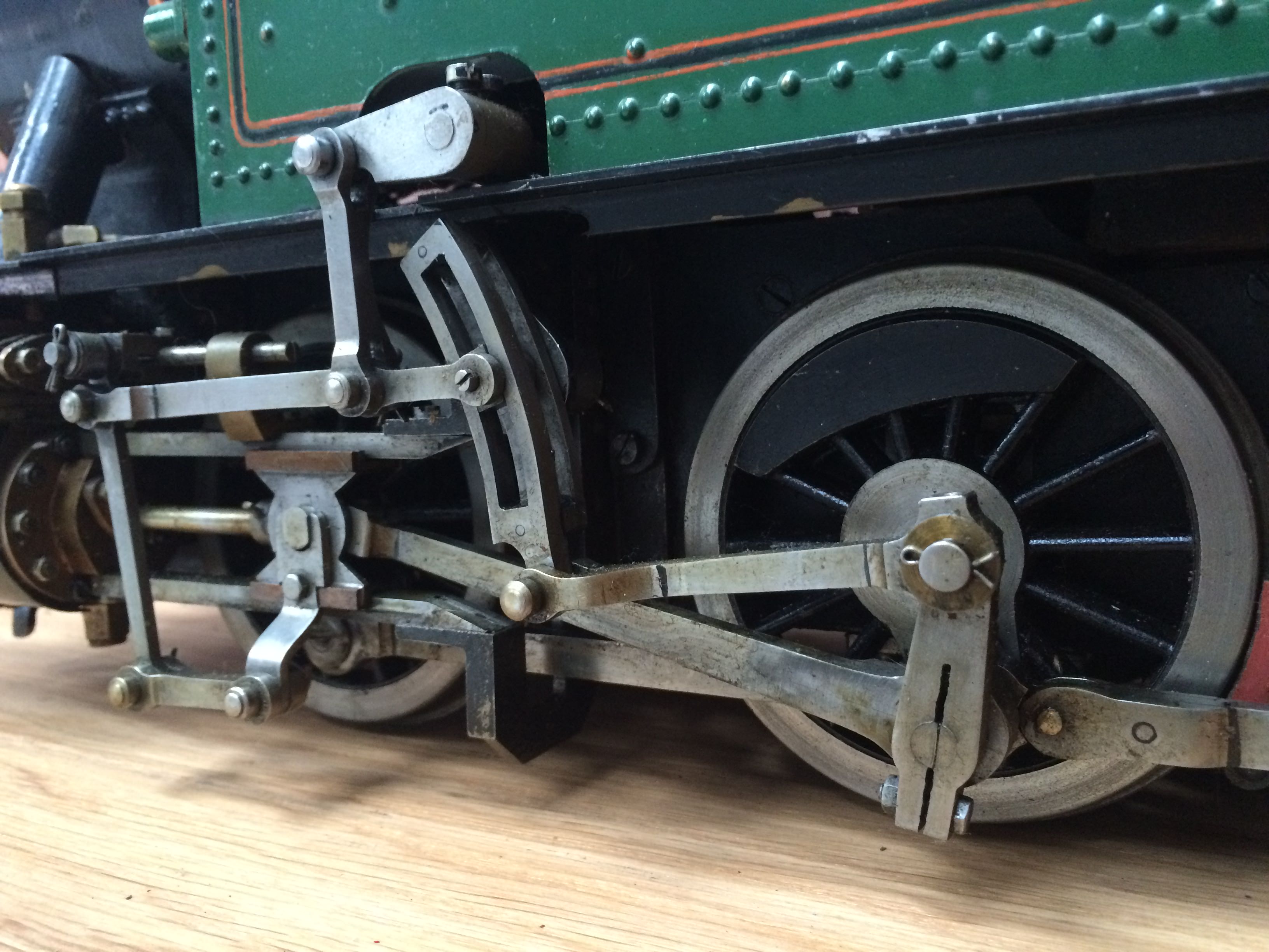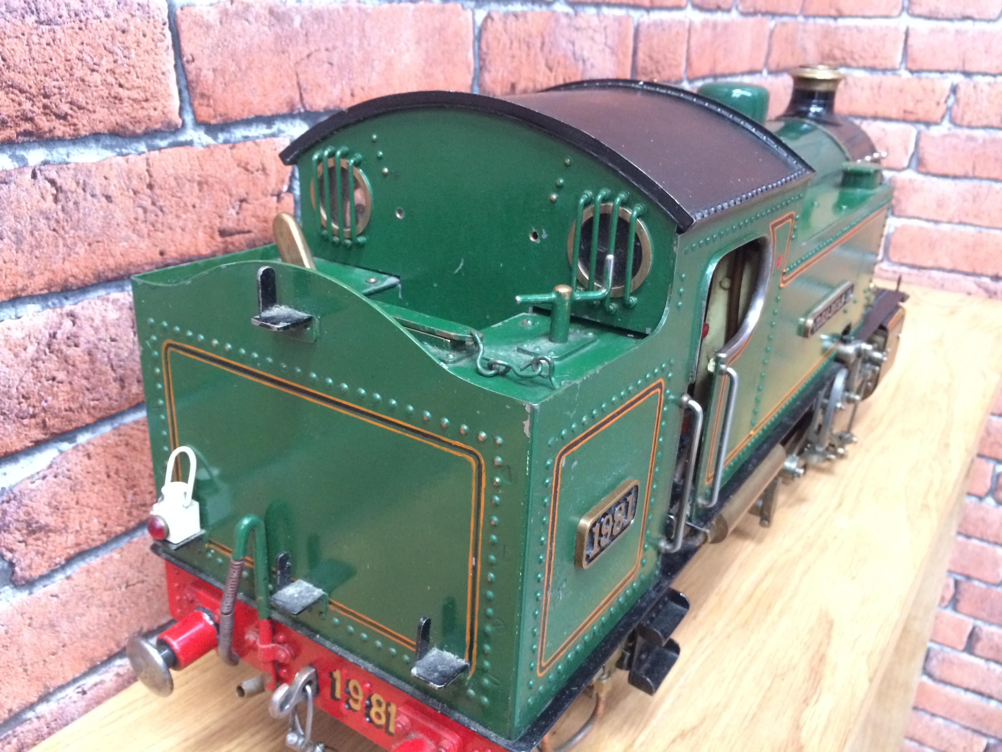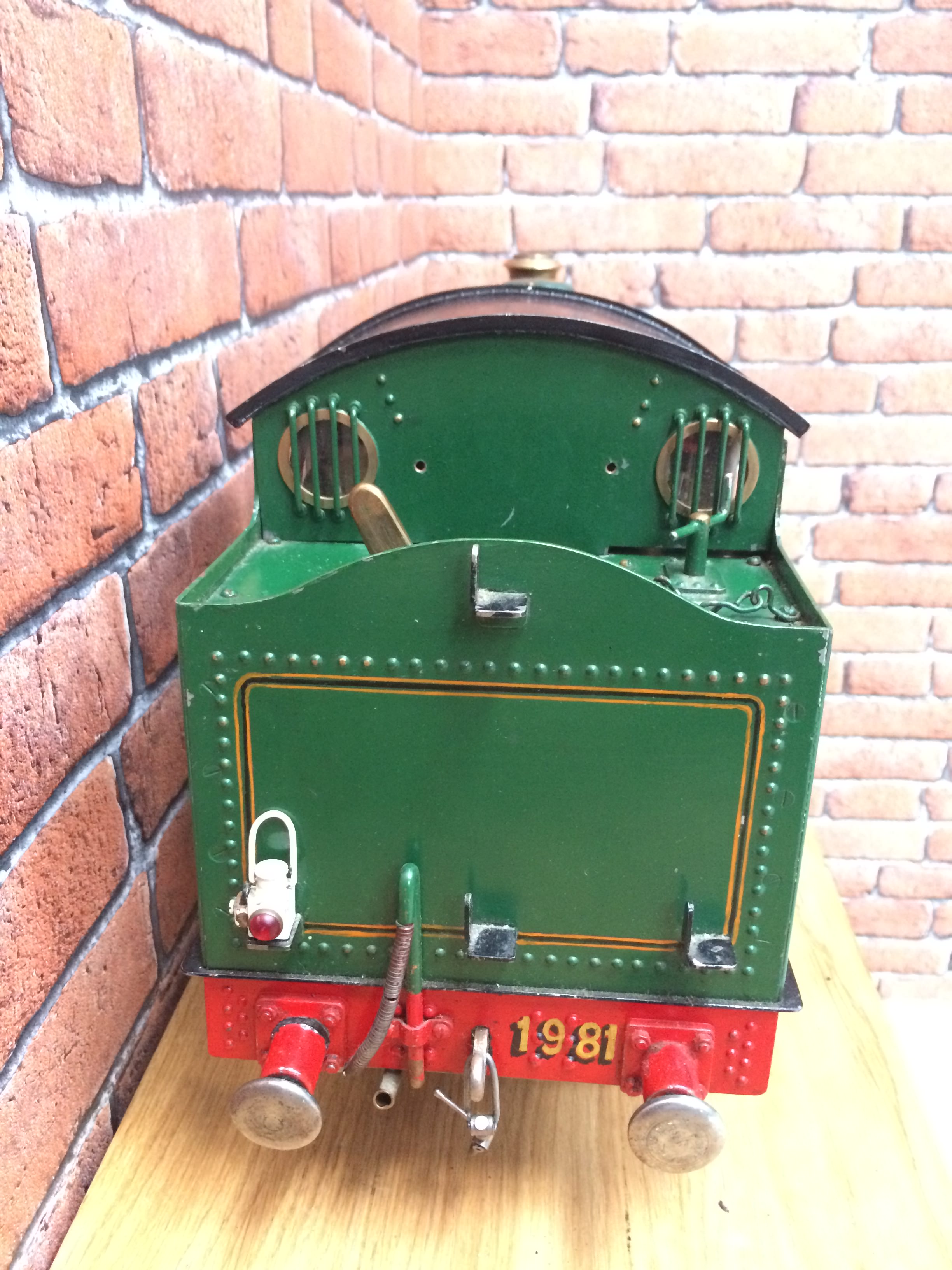 It's solidly constructed copper boiler has an injector fitted, as well as an axle pump and bypass valve and a hand pump nicely fitted in the rear tank, which is of course balanced through to the side tanks for extra water capacity. There is a displacement lubricator resevoir on/under the footplate, and the rare appearance of steam operated drain cocks on a 3 1/2" model.