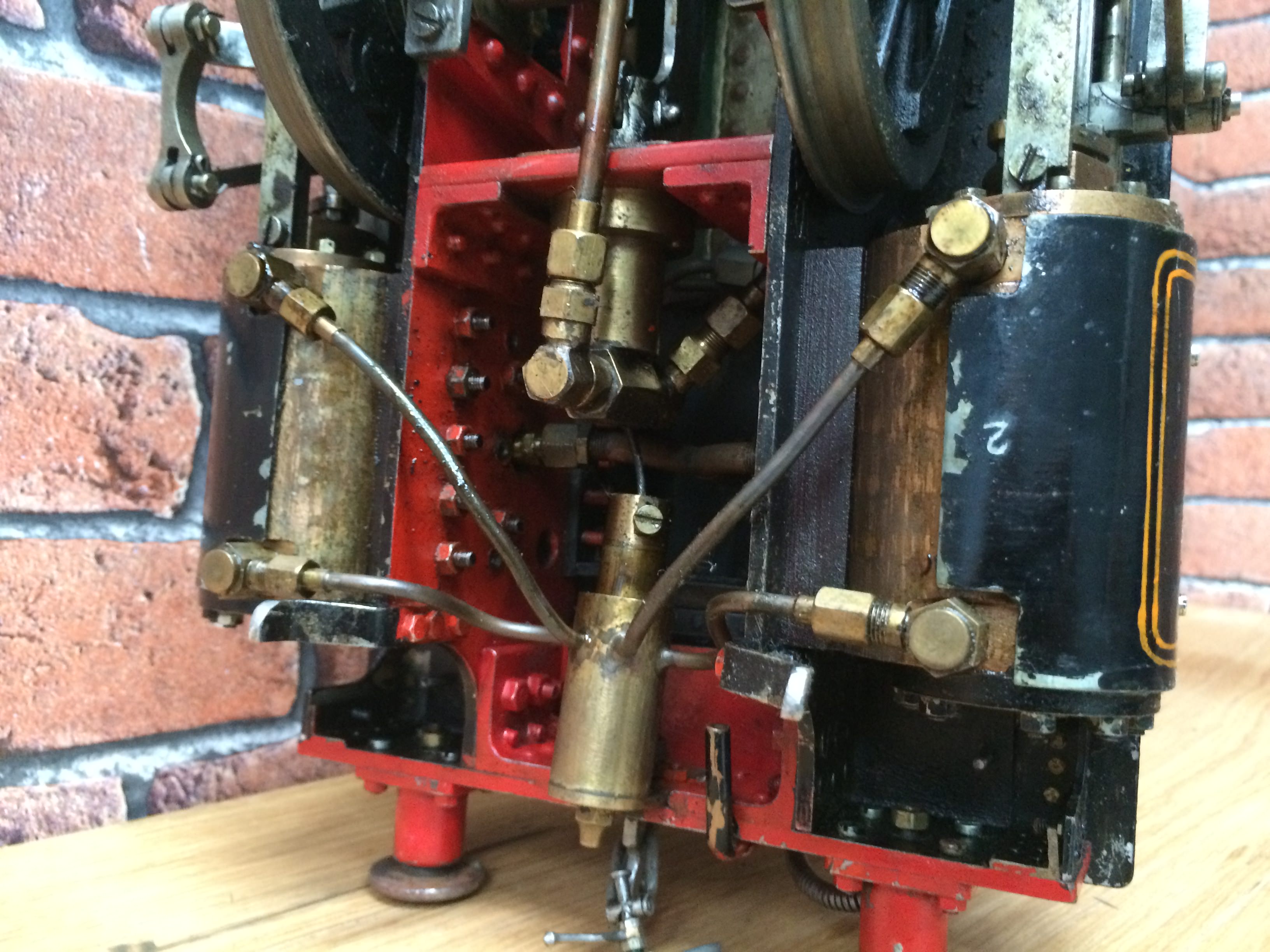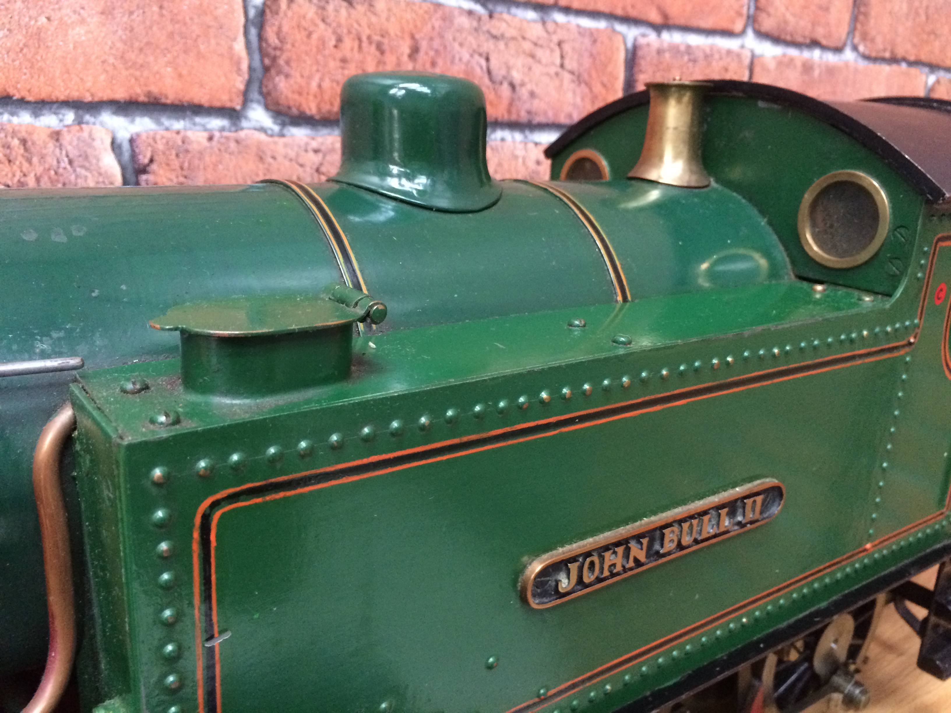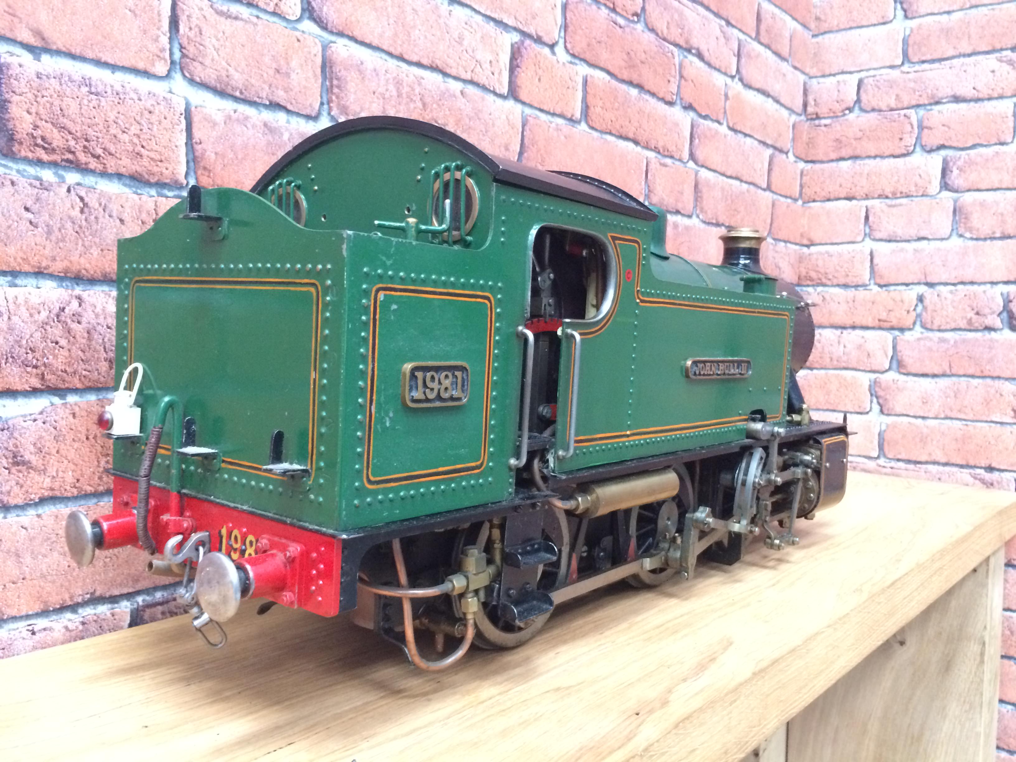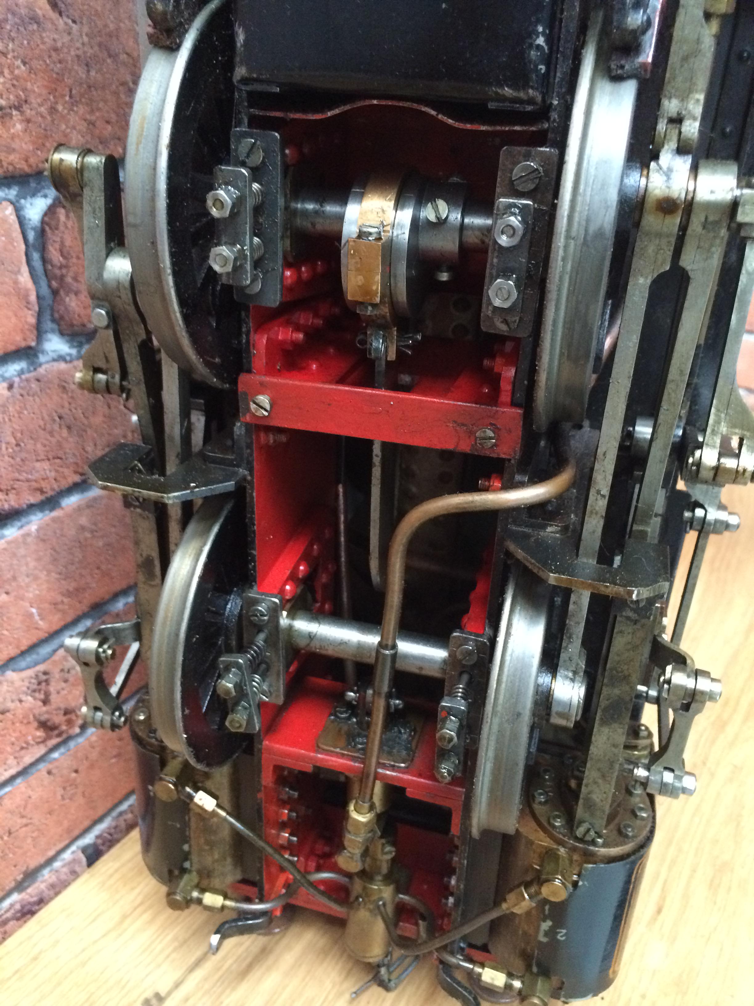 It's solidly constructed copper boiler has an injector fitted, as well as an axle pump and bypass valve and a hand pump nicely fitted in the rear tank, which is of course balanced through to the side tanks for extra water capacity. There is a displacement lubricator resevoir on/under the footplate, and the rare appearance of steam operated drain cocks on a 3 1/2" model.