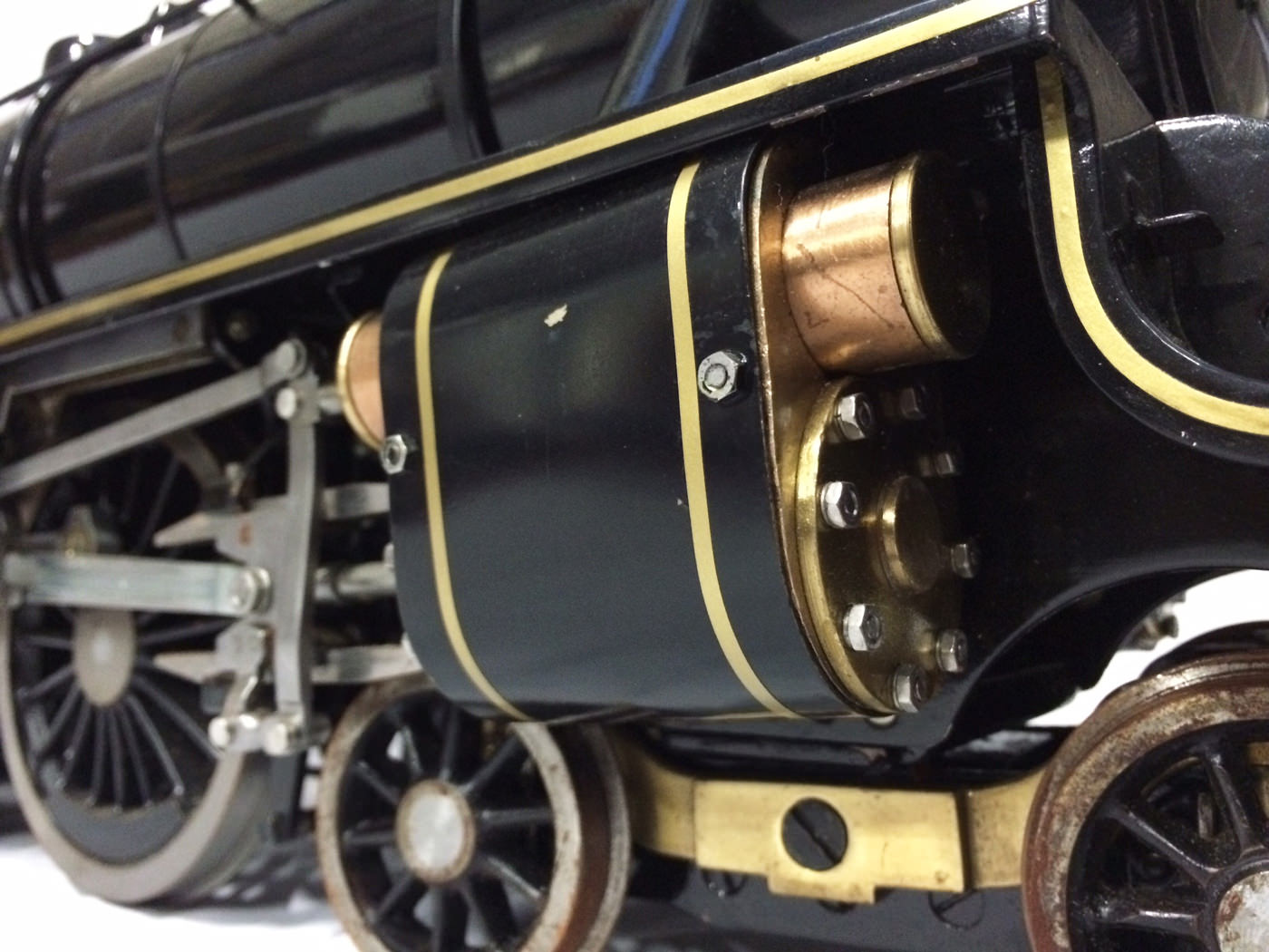 This should be considered a very well on the way part built loco, that, after taking backwards a fraction, to remove all the 'display' detailing, could be brought forward again to completion in fairly short order.  A potentially pretty speedy winter project.