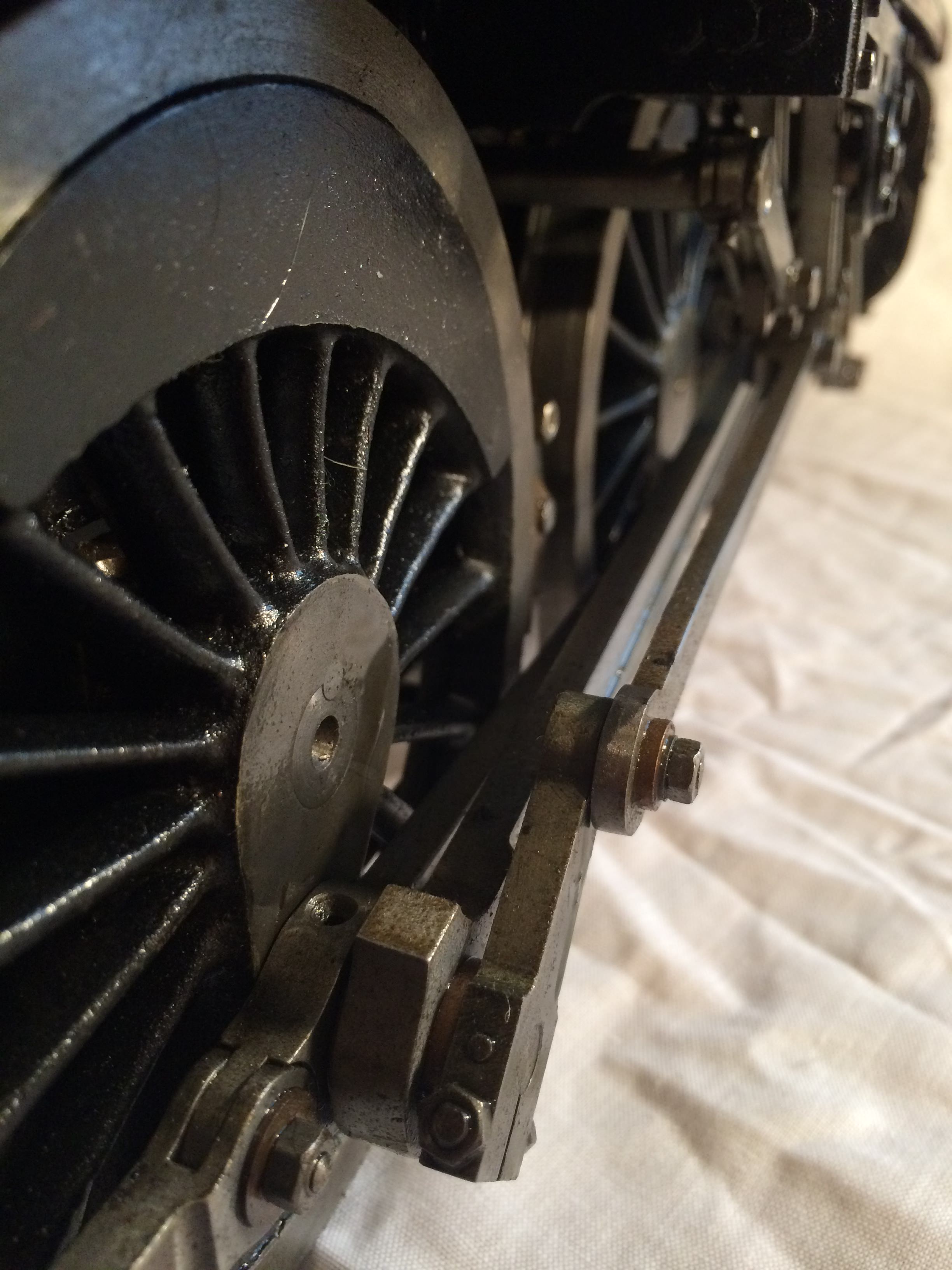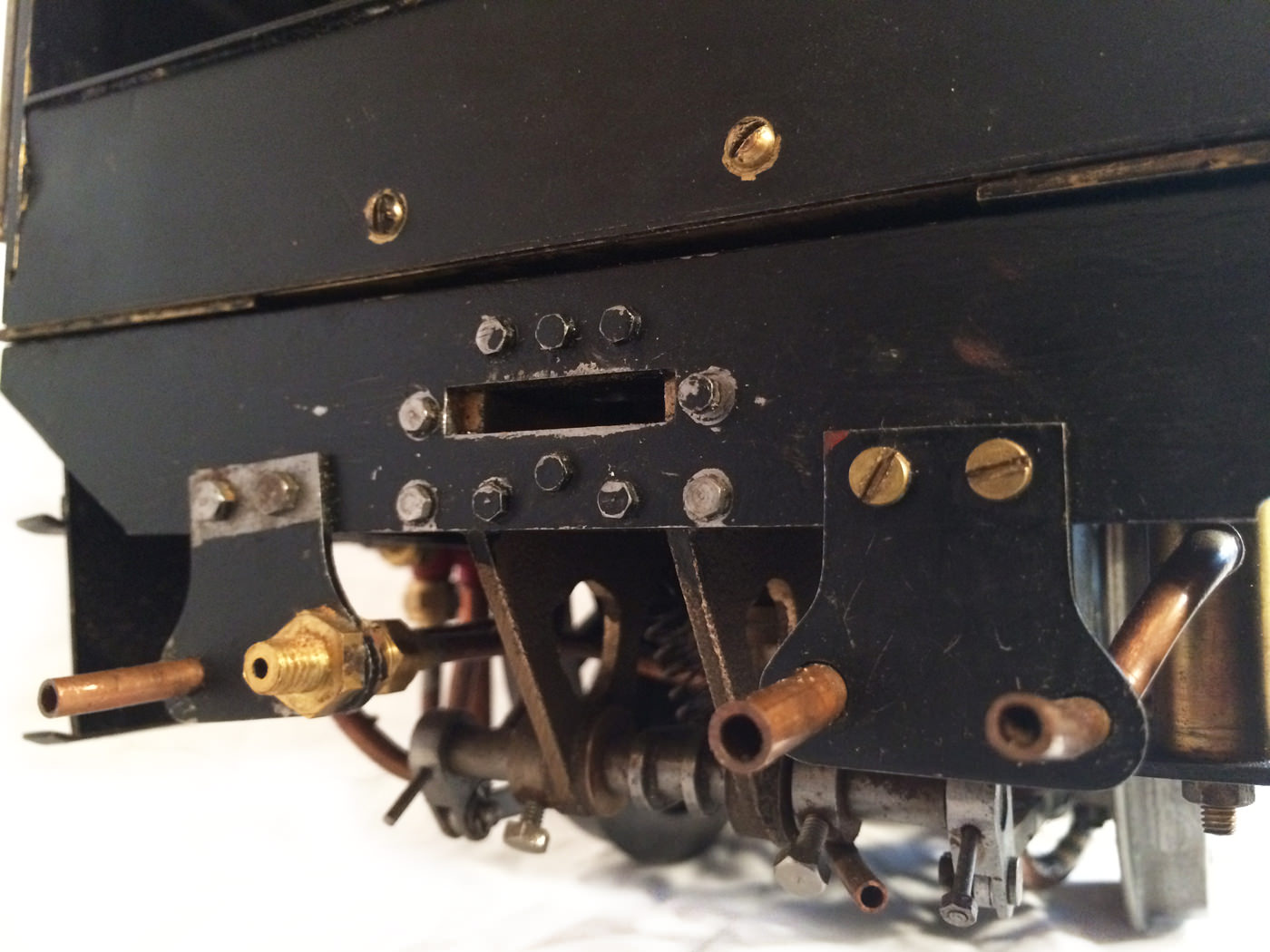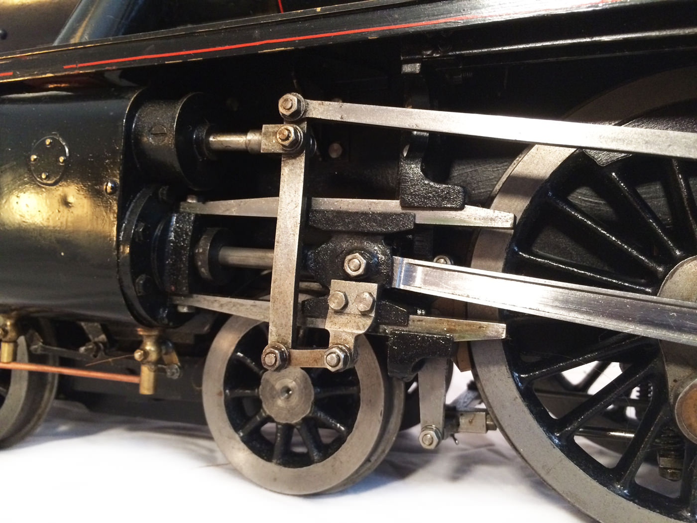 The model is fitted with all the usual refinements. There are footplate operated drain cocks, An injector, mechanical hand pump, and eccentric axle pump with bypas. Lubrication is mechanical and hidden under the front footplate. The quality of machining work on the valve gear is superb, and the locomotive has virtually no slack in the motion, although is not at all tight, suggesting that it's been run in on air. It's certainly a cut above the usual Doris, and a very nicely done example of the well loved Black 5.