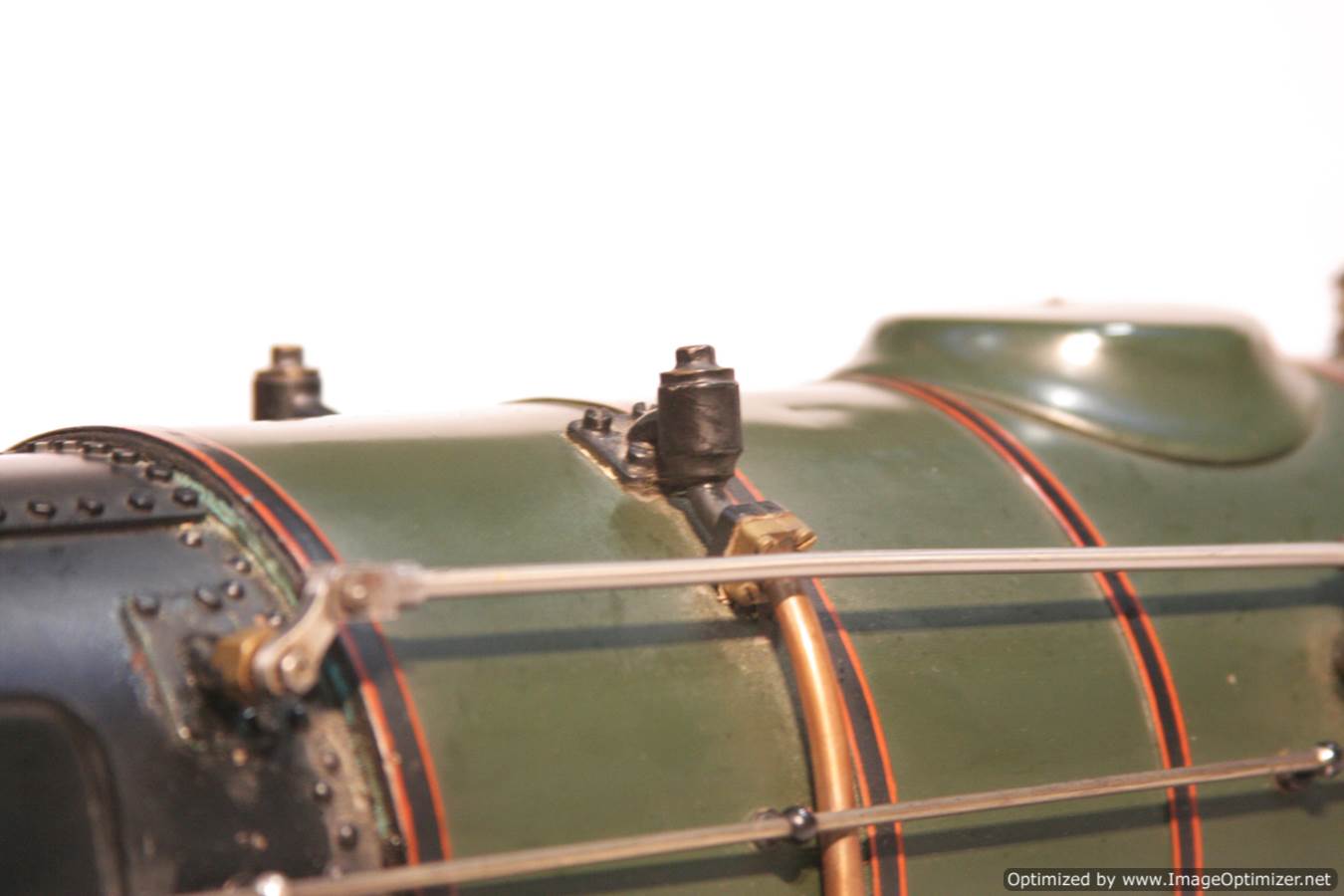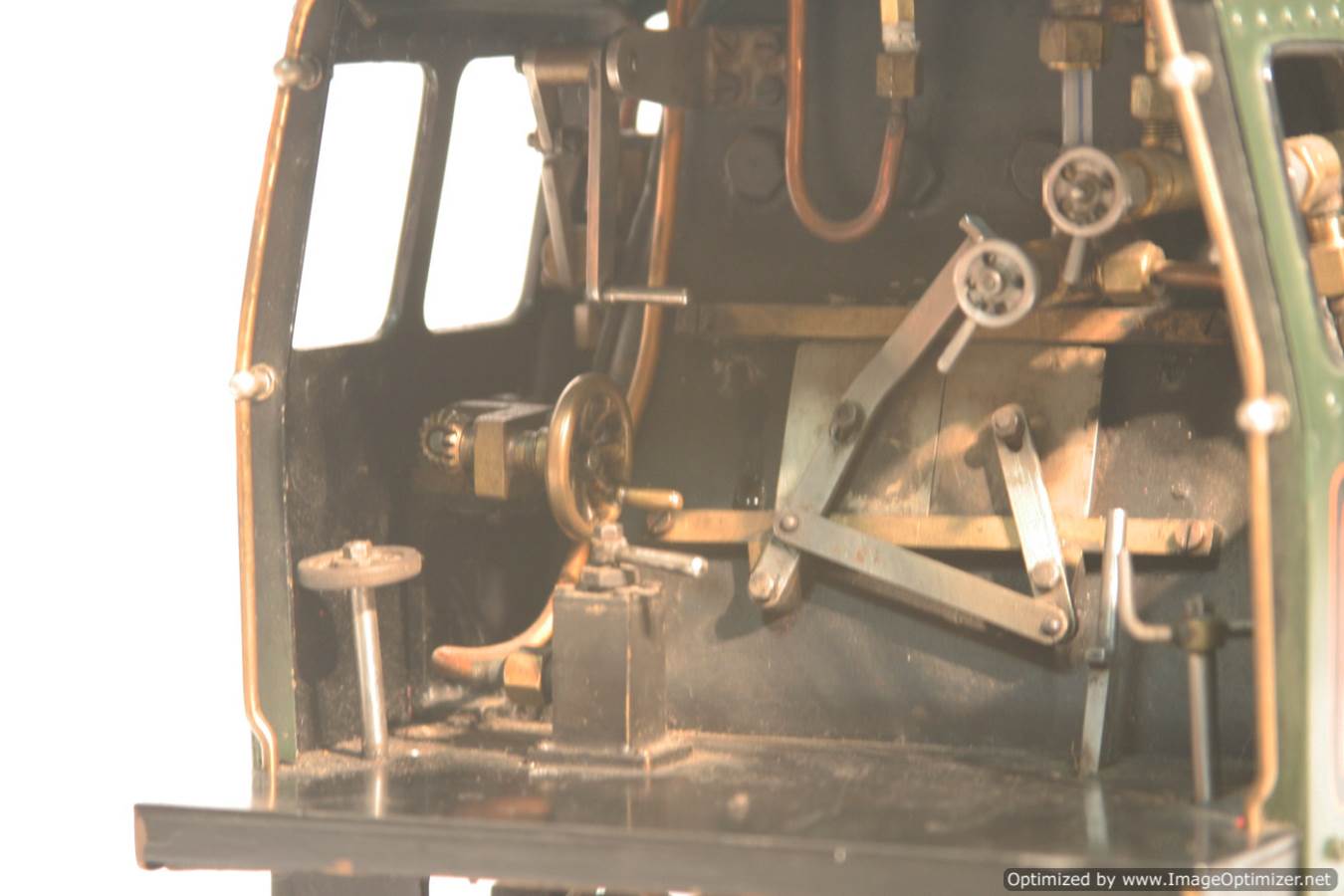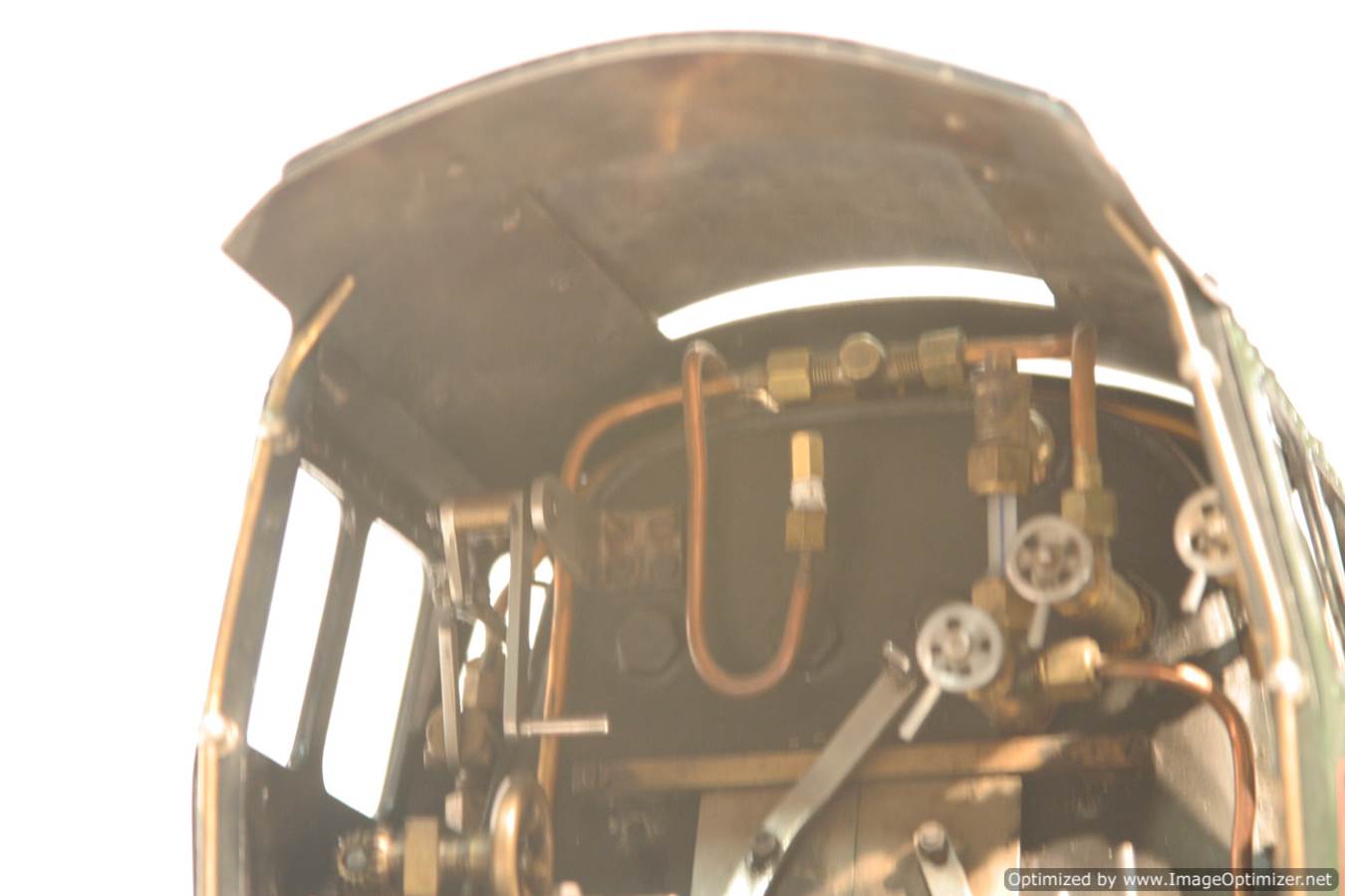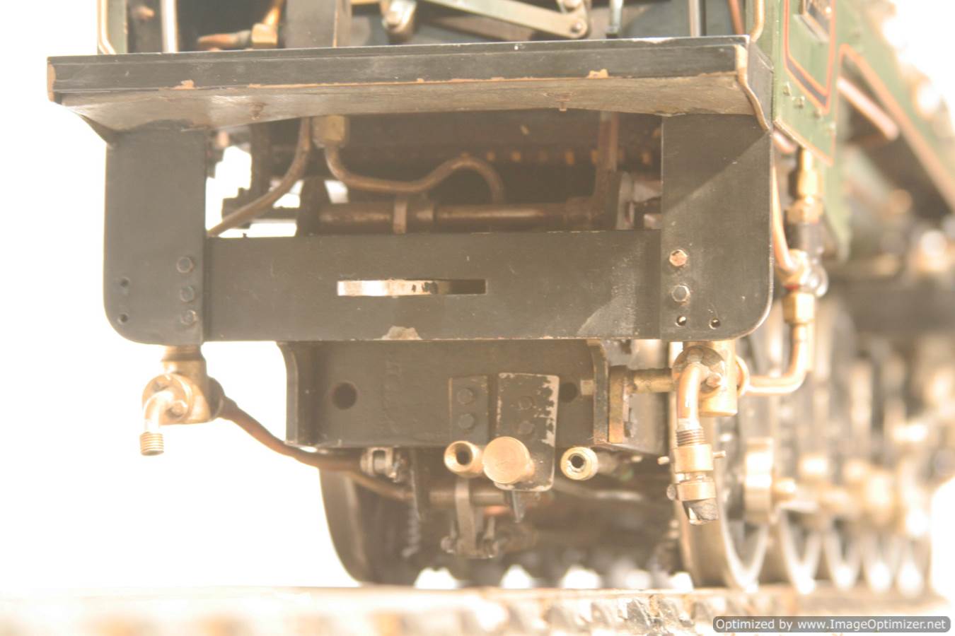 She is fitted with slide valves rather than piston valves, so we expect her to make a really good 'chuff'! There is an injector fitted, an axle pump with footplate mounted bypass valve as well as the ubiquitous emergency hand pump in the tender. Don't worry about the old and cracked rubber water hoses, we will replace them when we steam test her for the certificates, as we tend to do with most of the models that come through. Lubrication is mechanical, and mounted under the front running board in the usual manor, and there is also a steam brake footplate mounted operating the brakes on the loco.